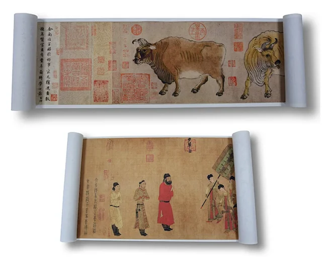 韩滉《五牛图》 赵孟頫跋 / 阎立本《步辇图》原大高清微喷复制(未装裱)