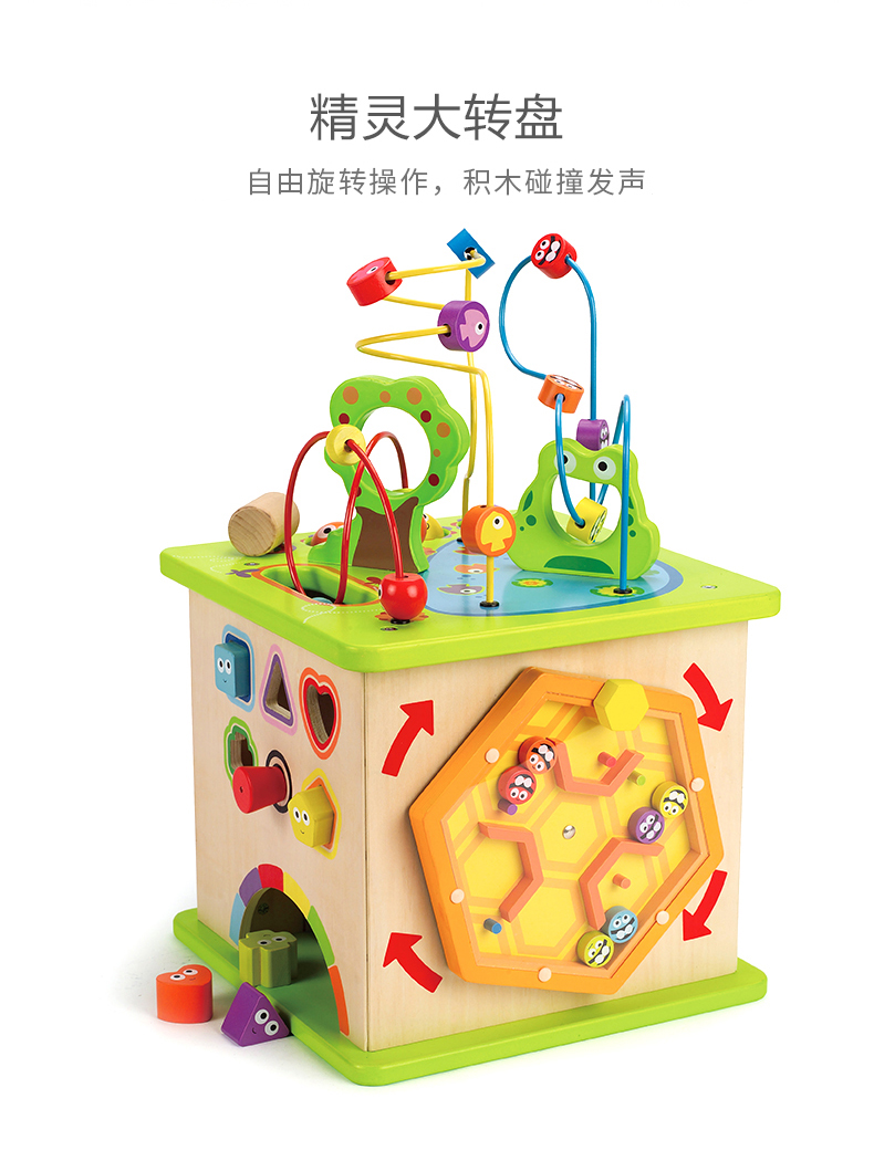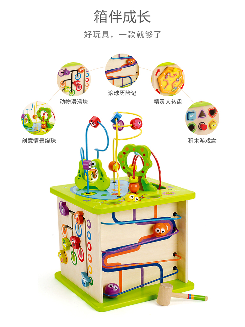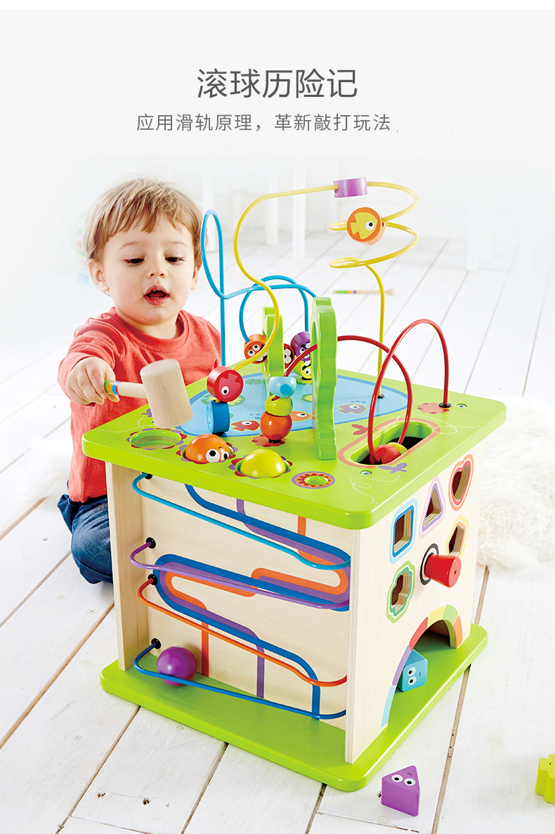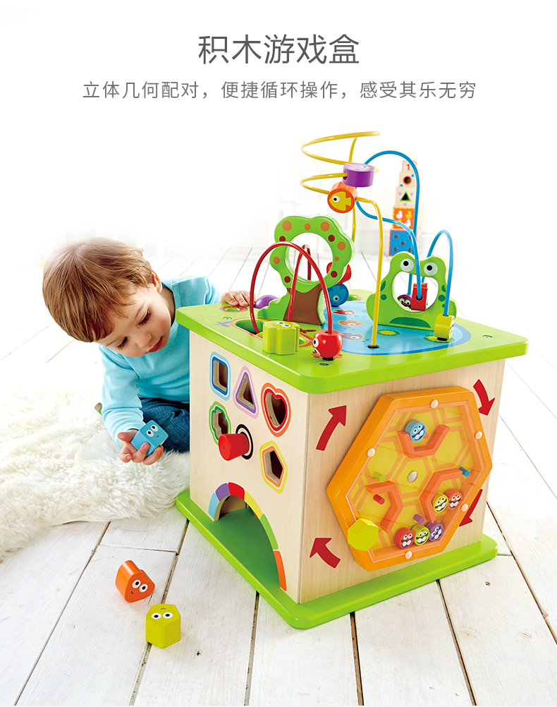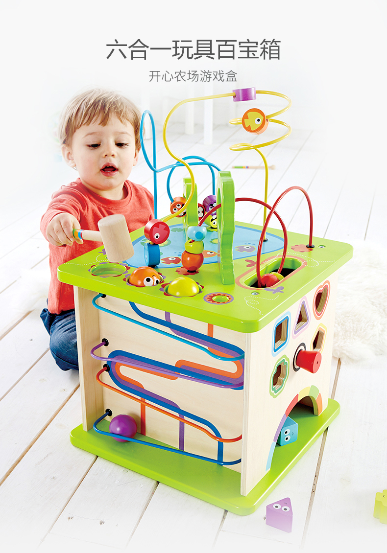 德国(Hape)儿童玩具益智玩具1-3-6岁百宝箱绕珠串珠拼搭拼插五合一开心农场游戏盒新年礼物1岁+ E1810