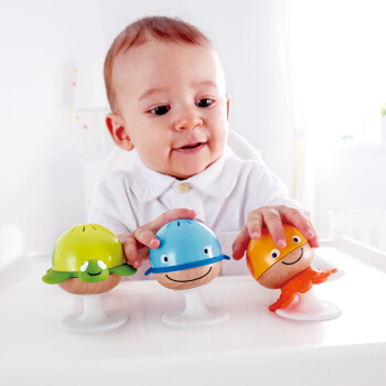 德国(Hape)儿童音乐玩具男孩玩具女孩婴幼儿益智玩具0-1-3岁宝宝摇铃带吸盘海洋动物沙铃小孩礼物0岁+ E0330