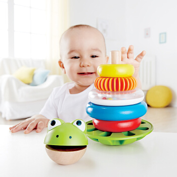 德国(Hape)益智玩具儿童玩具男孩女孩宝宝早教启蒙1-3-6岁叠叠圈层层叠高青蛙花式圆环堆塔 1岁+ E0457