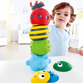 德国(Hape)婴幼儿宝宝益智玩具1-3岁按摩抚触洗澡玩具拼搭堆堆高虫虫软胶触感球堆塔新生儿礼物6个月+ E8411