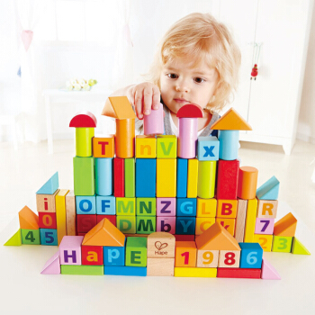 德国(Hape)儿童积木玩具男孩玩具女孩益智玩具1-3-6岁拼搭宝宝玩具进口榉木80粒数字字母盒装 1岁+ E8022