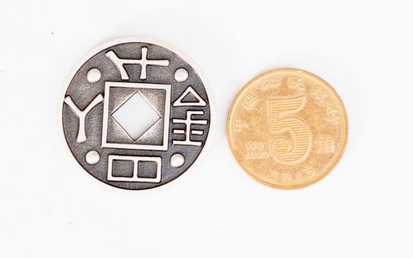 尺寸:钱币直径约26.6毫米,厚约2.6毫米,钱币孔径约5.6毫米,重约10克(手工作品有少许误差)。