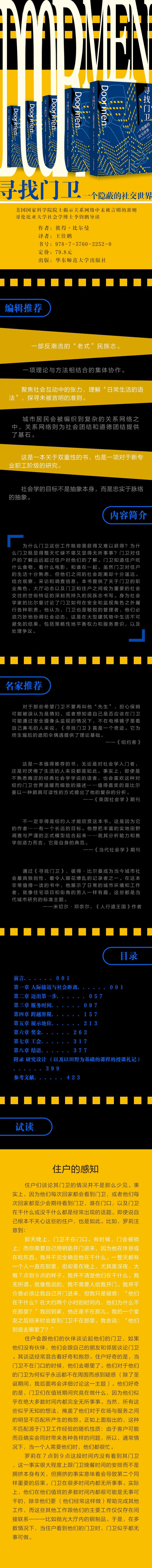 在小小的公寓楼中,每天上演着保安门卫和房客的复杂交际。而公寓楼保安眼中的世界,彬彬有礼不动声色。这本络分析领域专家彼得·比尔曼教授很受欢迎的田野著作,来自于作者在哥伦比亚大学教授的社会学导论课证据评估的集体作业,通过对生活中常见的保安这个普通人群体的描摹,综合了收集观察性资料、抽样、实地调查、深度访谈等多层设计的研究方法,对保安进行了观察的质性分析,指出社会行动的源泉来自于网络互动过程,是定性研究方法的典范。