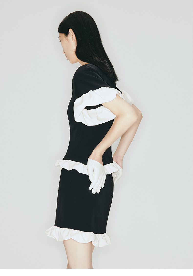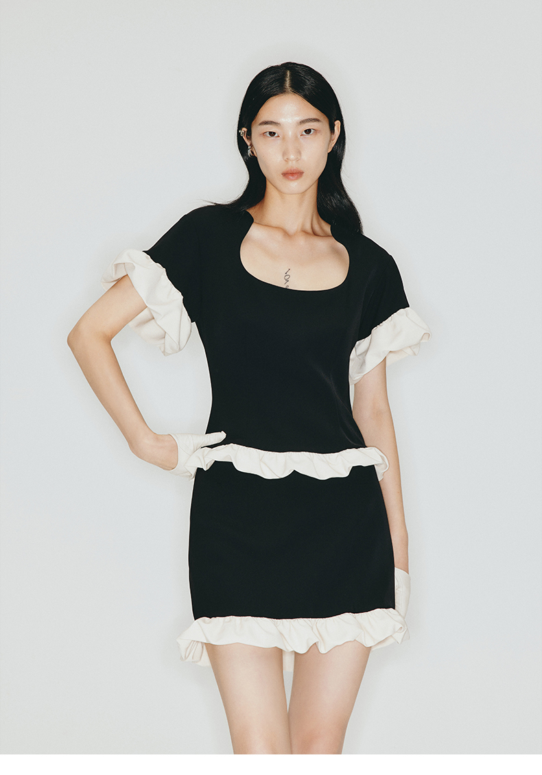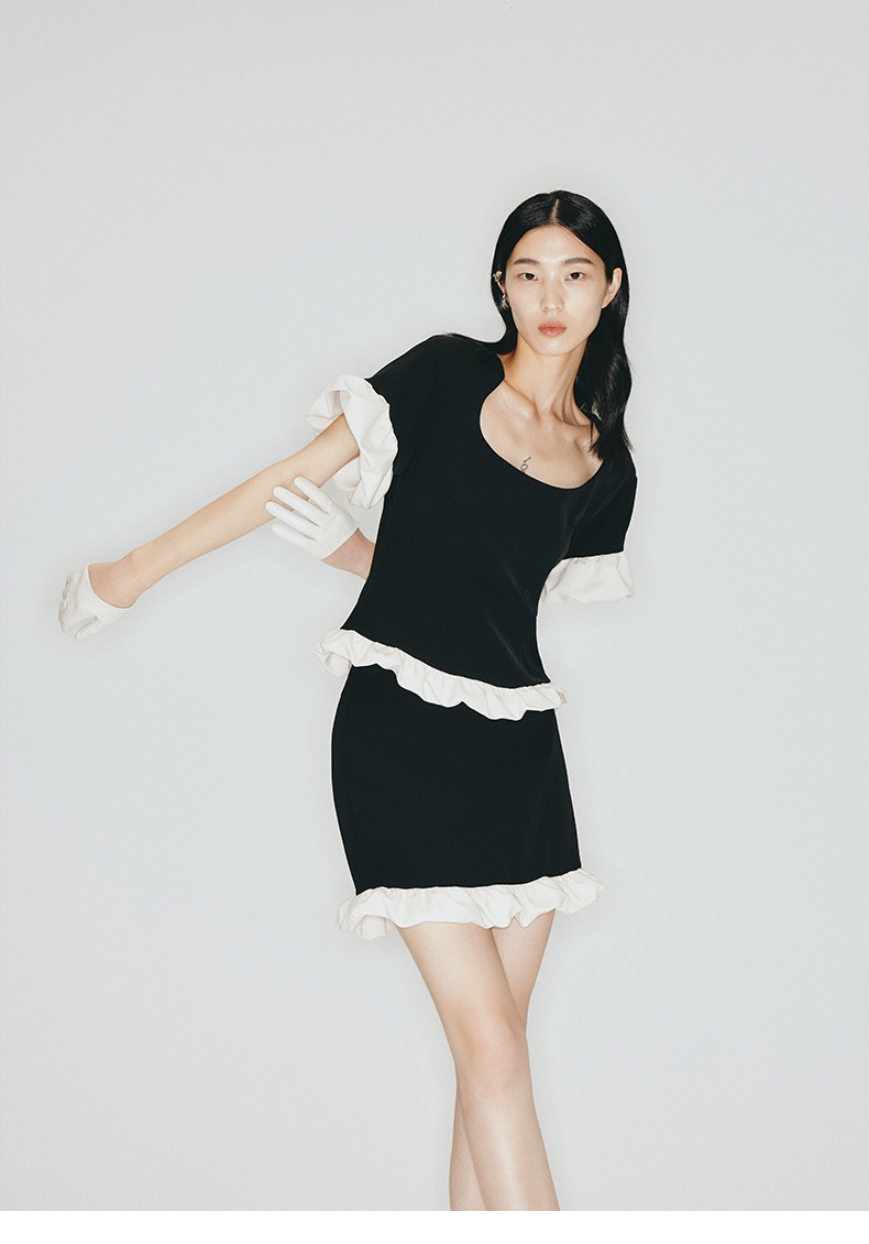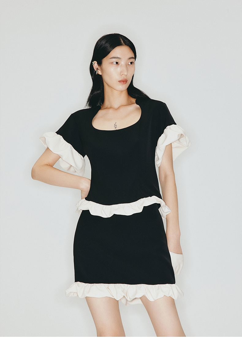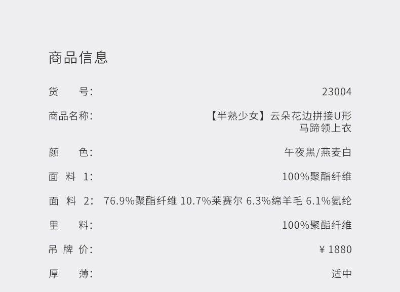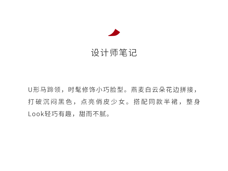 【半熟少女】云朵花边拼接U形马蹄领上衣/23004