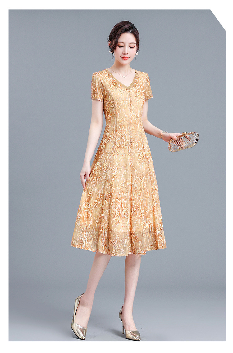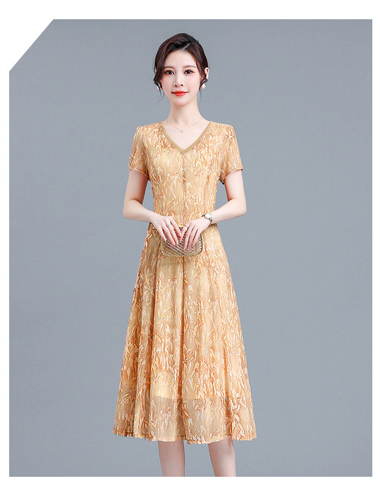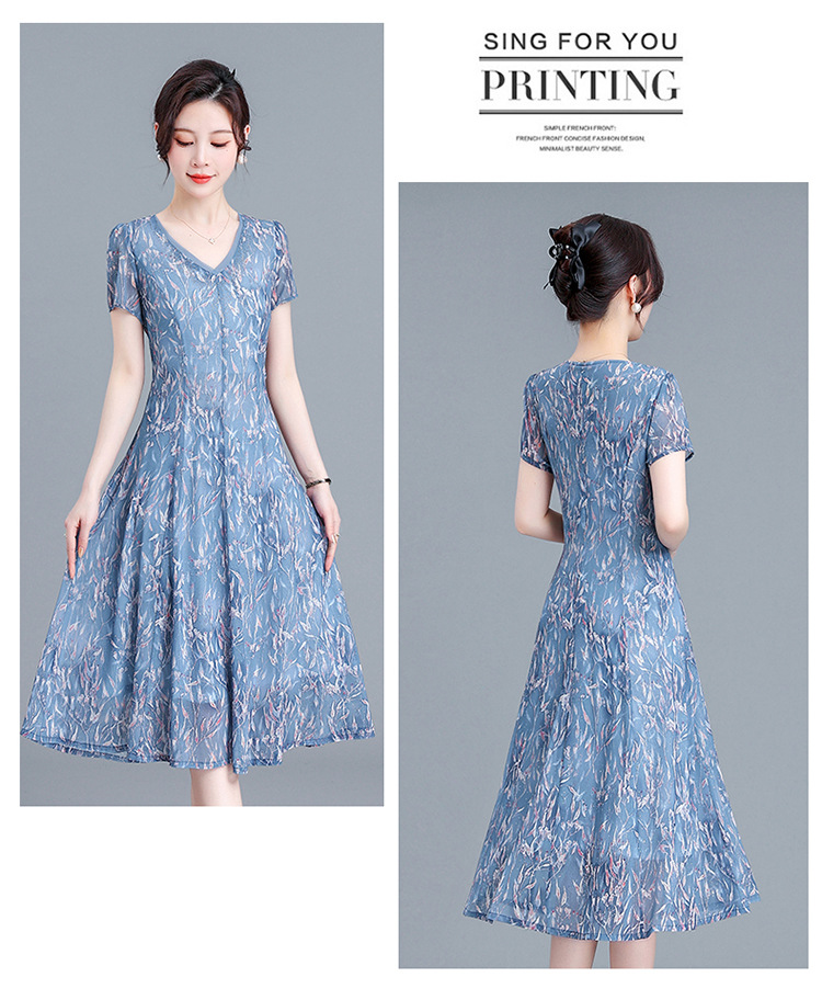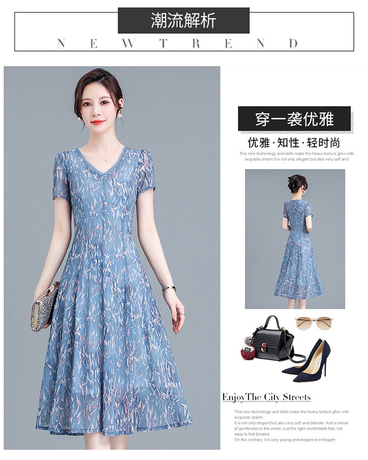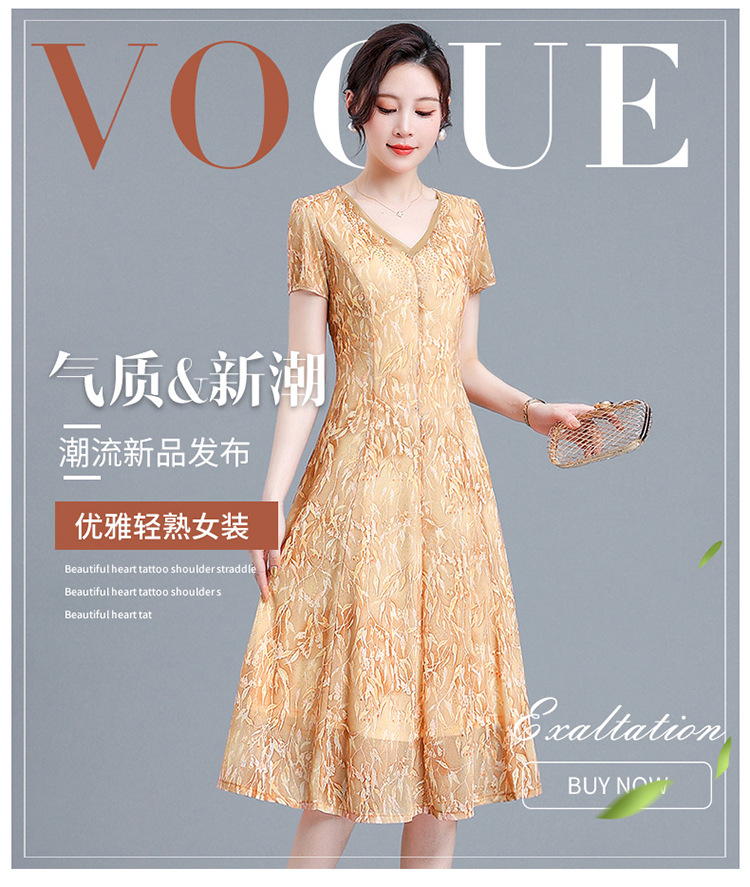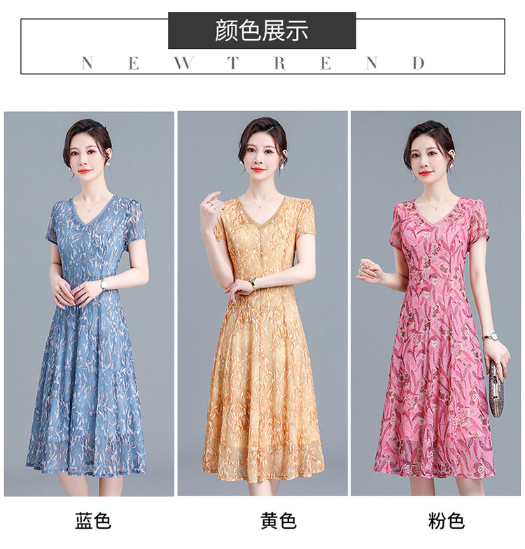 时尚气质妈妈装,短袖打底A字裙QYM-BL2513-Y