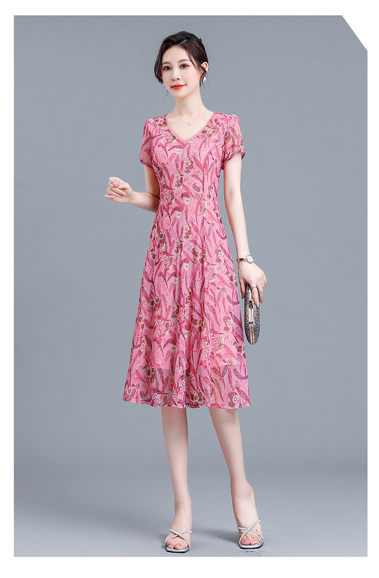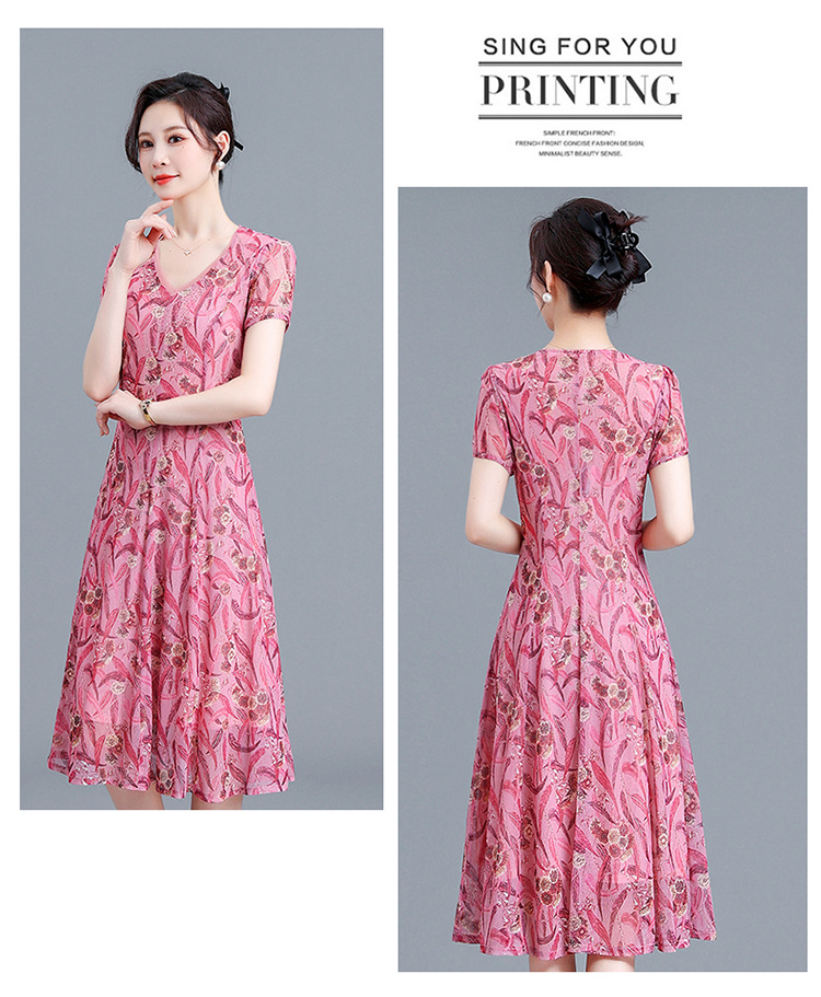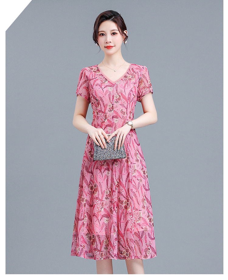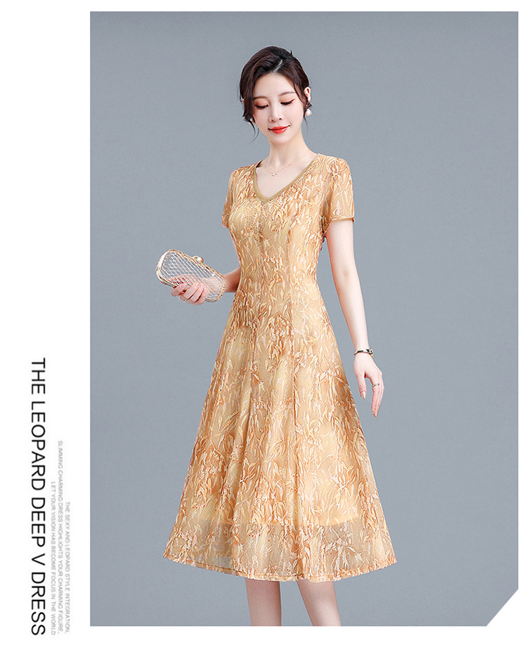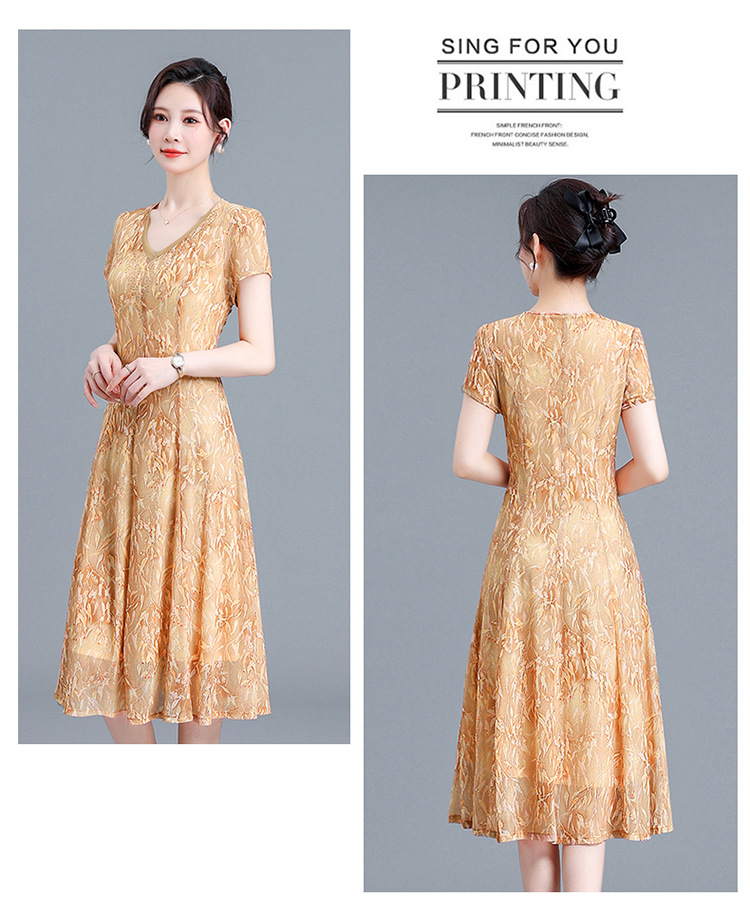 时尚气质妈妈装,短袖打底A字裙QYM-BL2513-Y