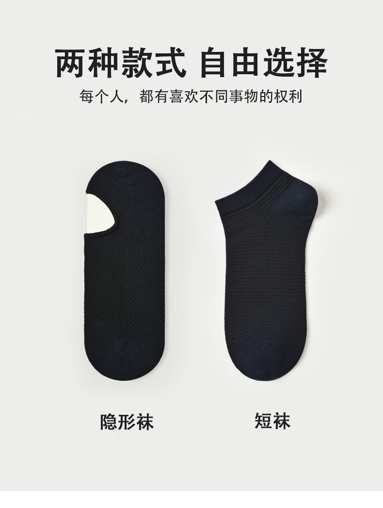 【5双装!】夏季网眼袜纯棉短袜男 防臭透气 抗jun船袜 春夏全棉浅口隐形袜子男士