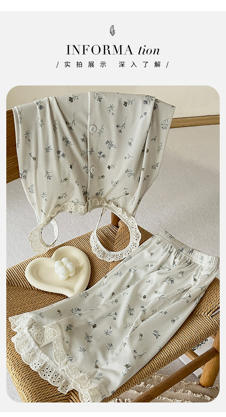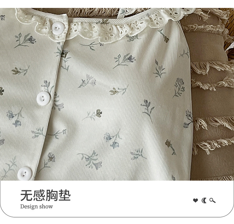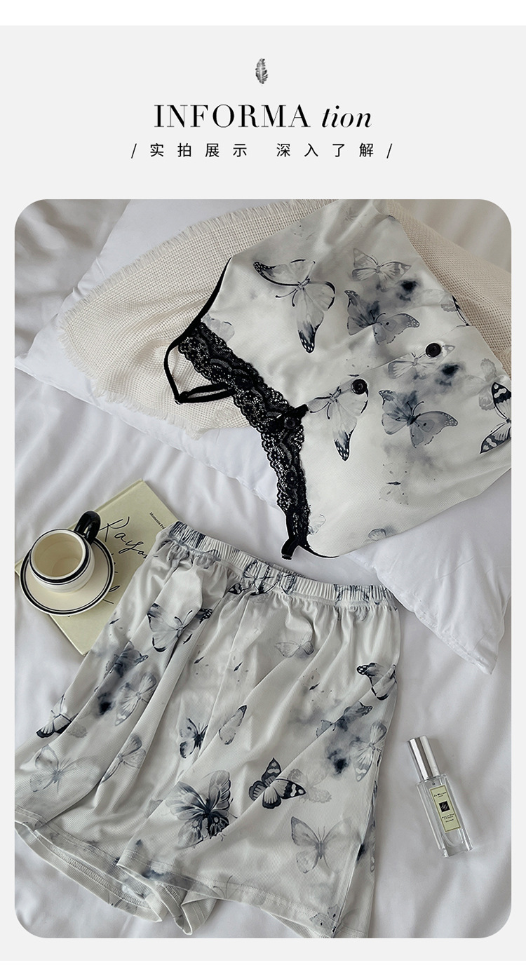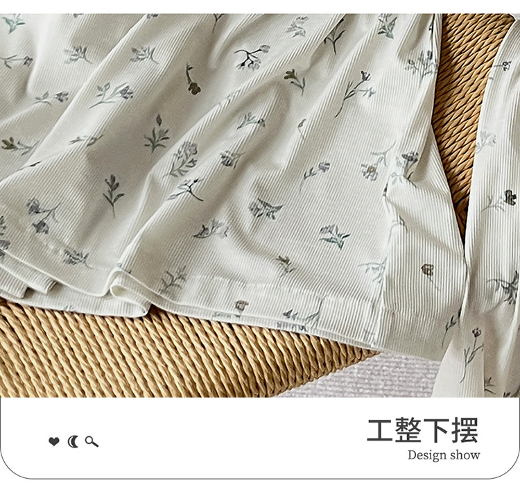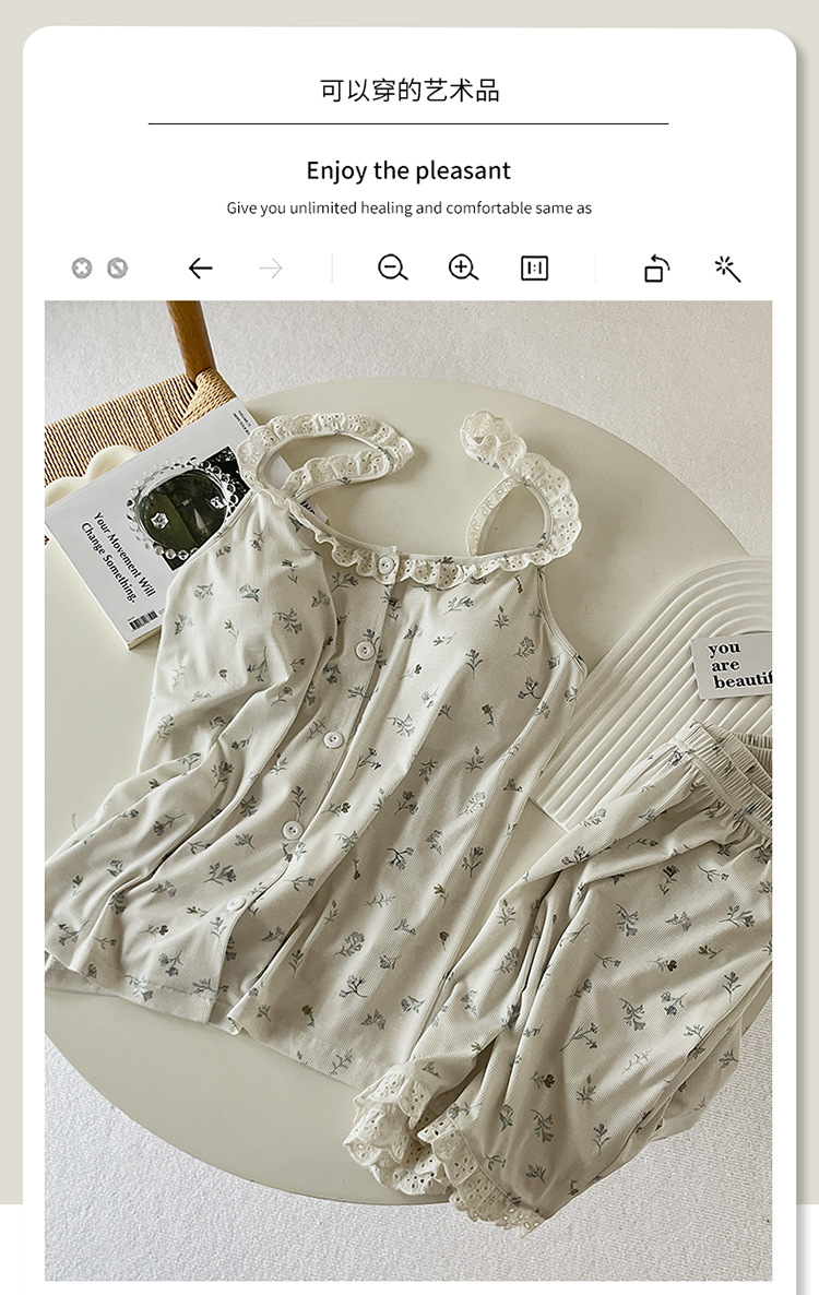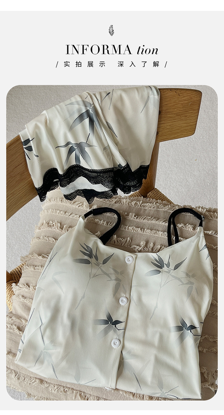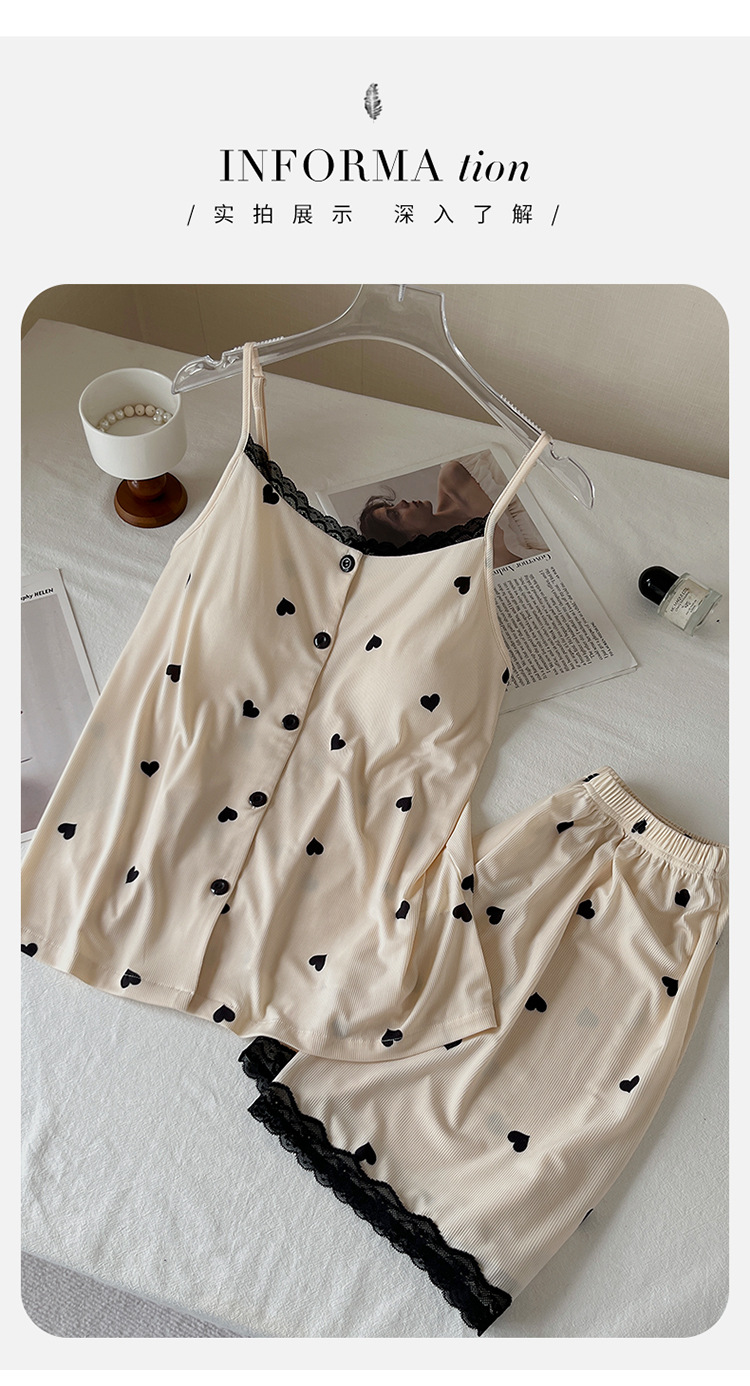 女士夏季性感带胸垫冰丝螺纹吊带睡衣套装 免穿内衣碎花背心短裤薄款家居服两件套