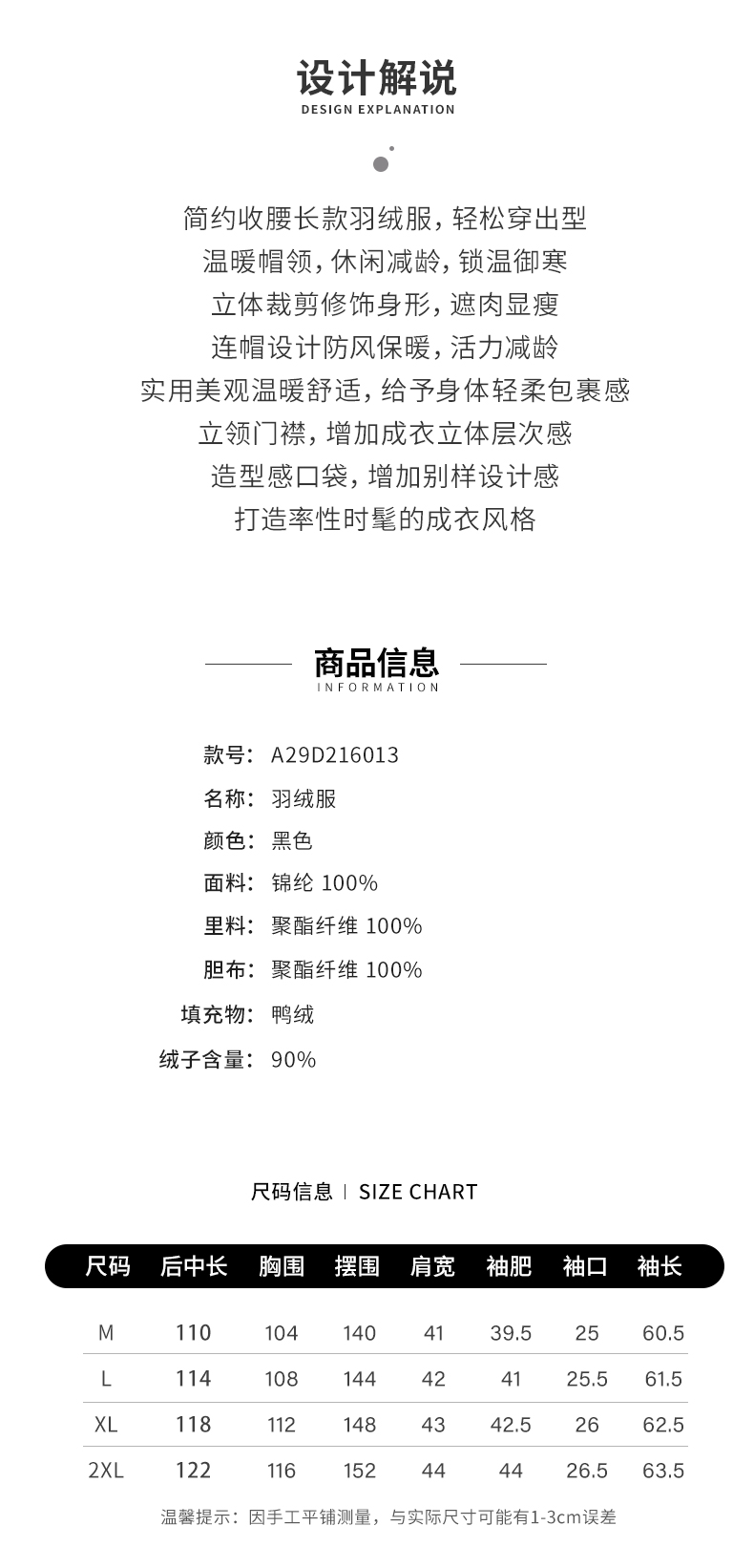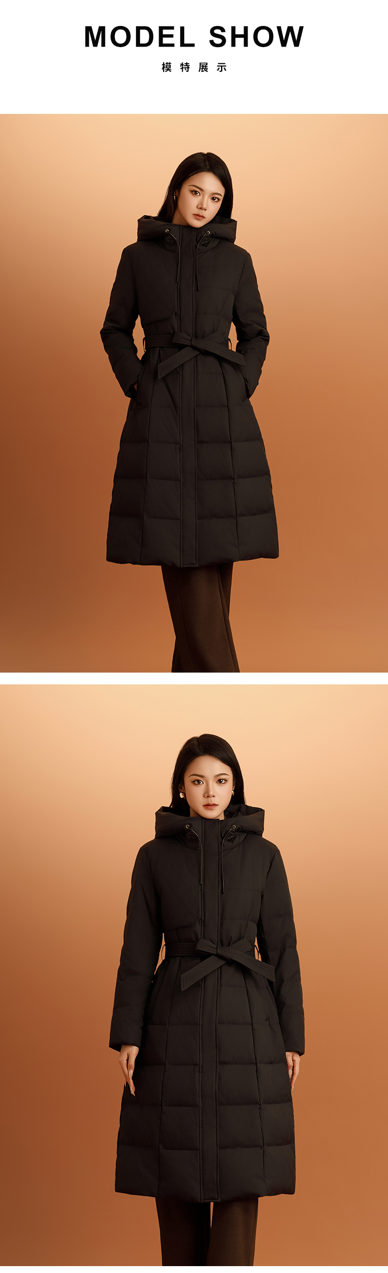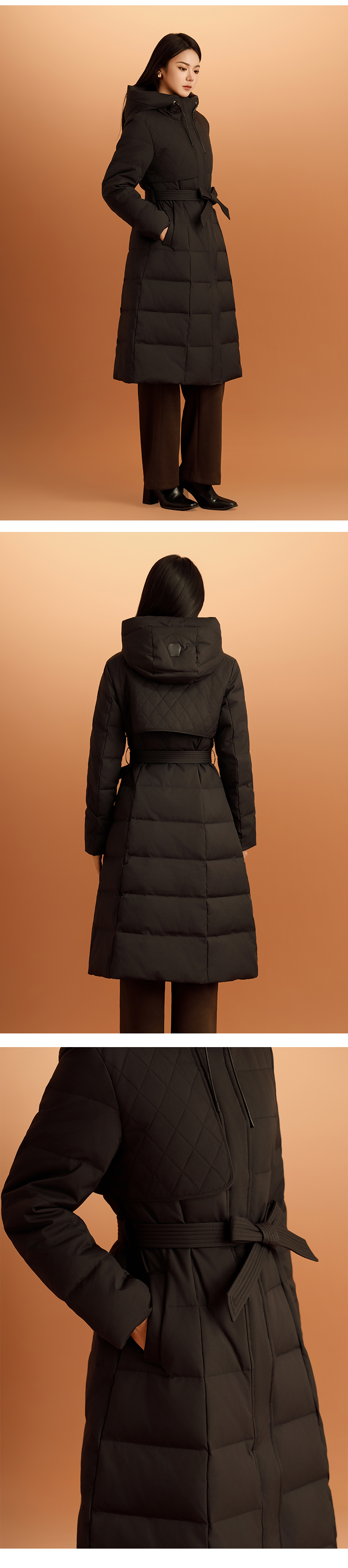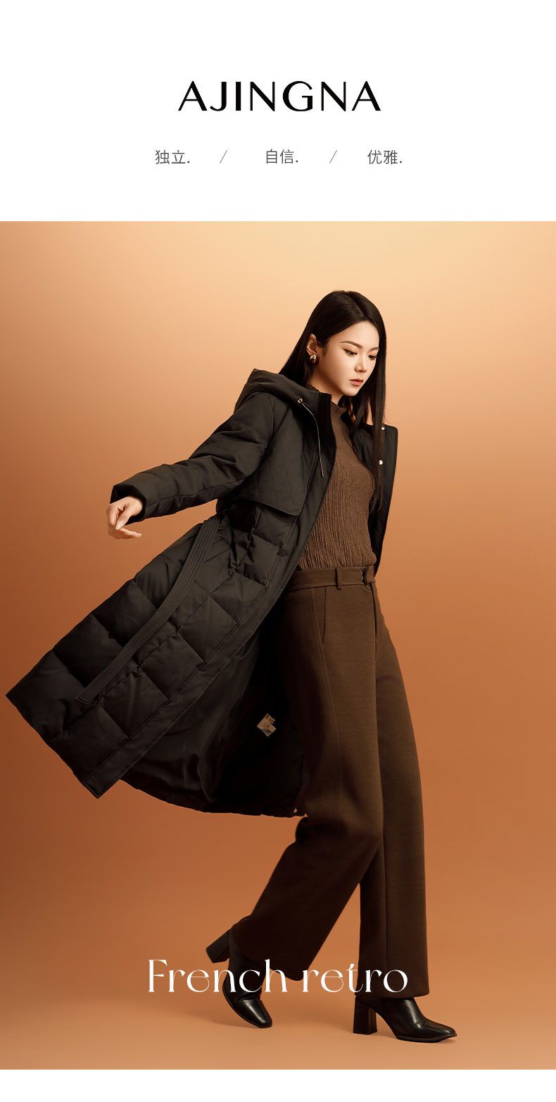 【商场同款】阿菁娜2024冬季新款简约长款收腰羽绒服A29D216013