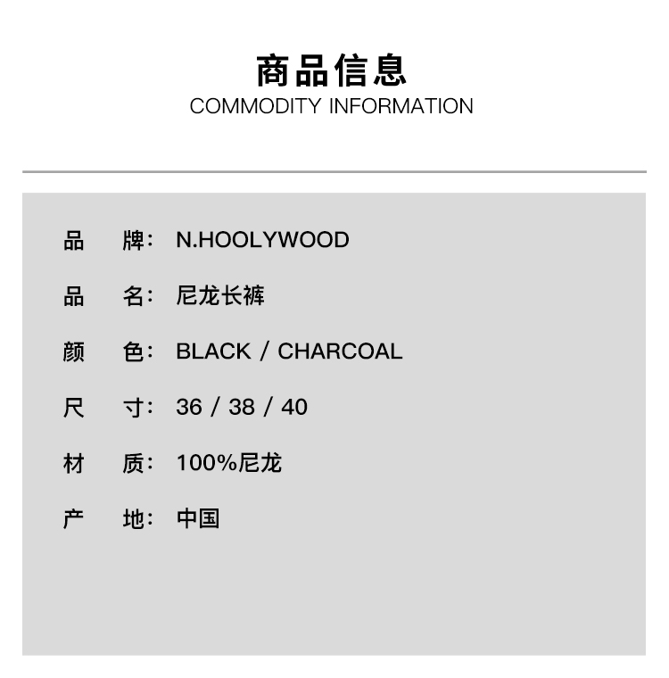 N.HOOLYWOOD EASY PANTS 军事系列高密度尼龙长裤