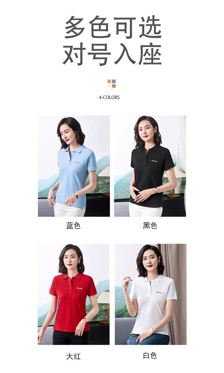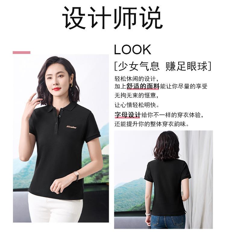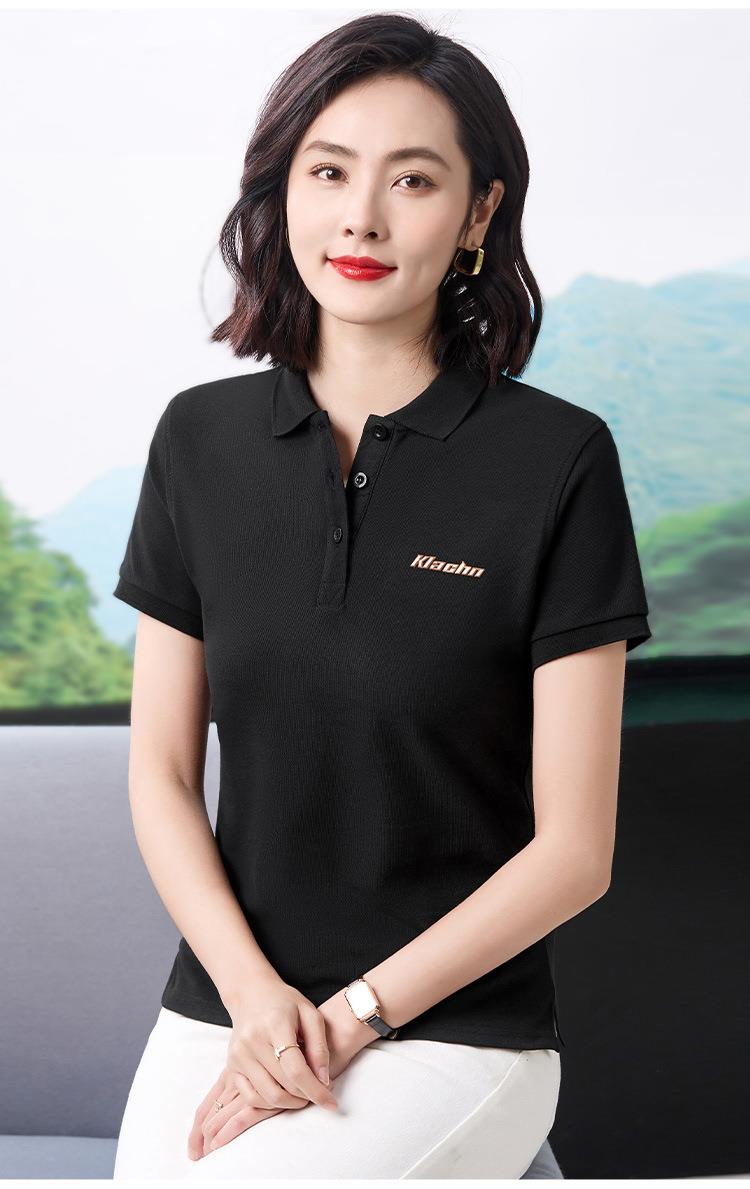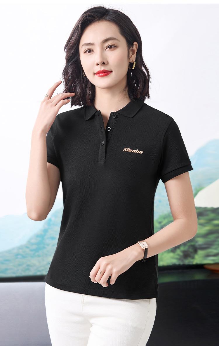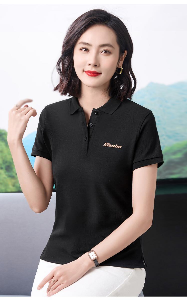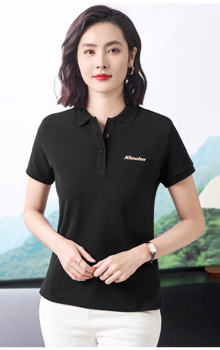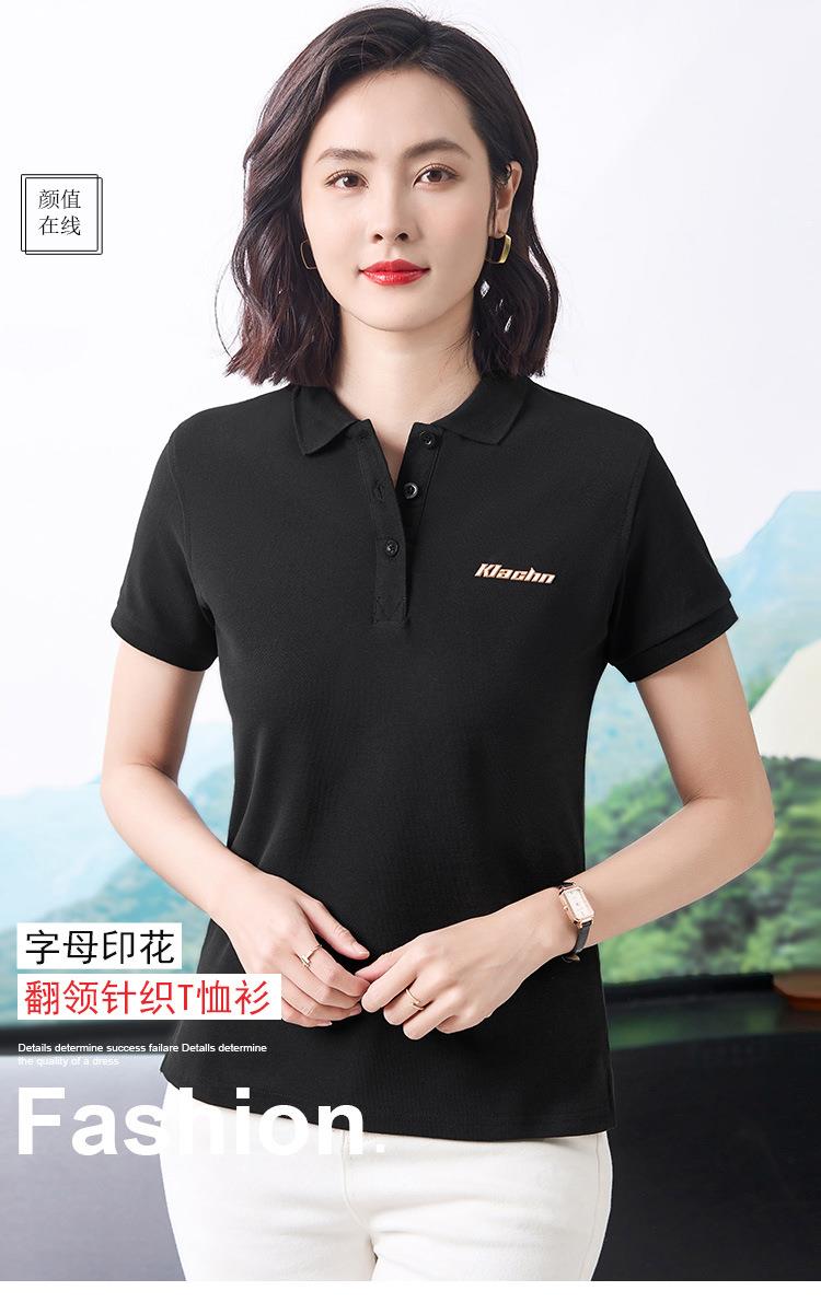 40支休闲时尚通勤风翻领Polo衫短袖T恤女2024夏季新款印花上衣