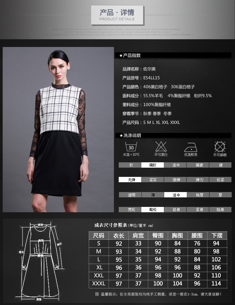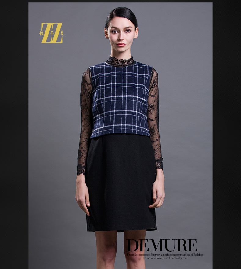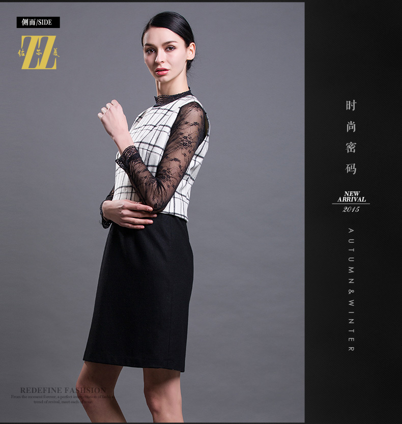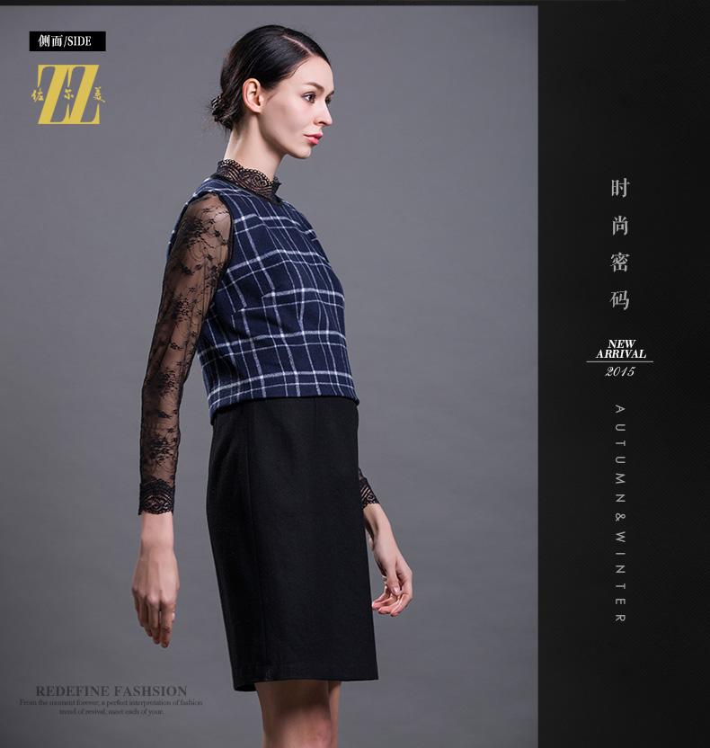 佐尔美春秋季新款大码女装修身显瘦羊毛无袖背心裙连衣裙E54LL15