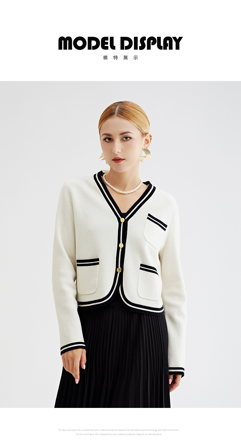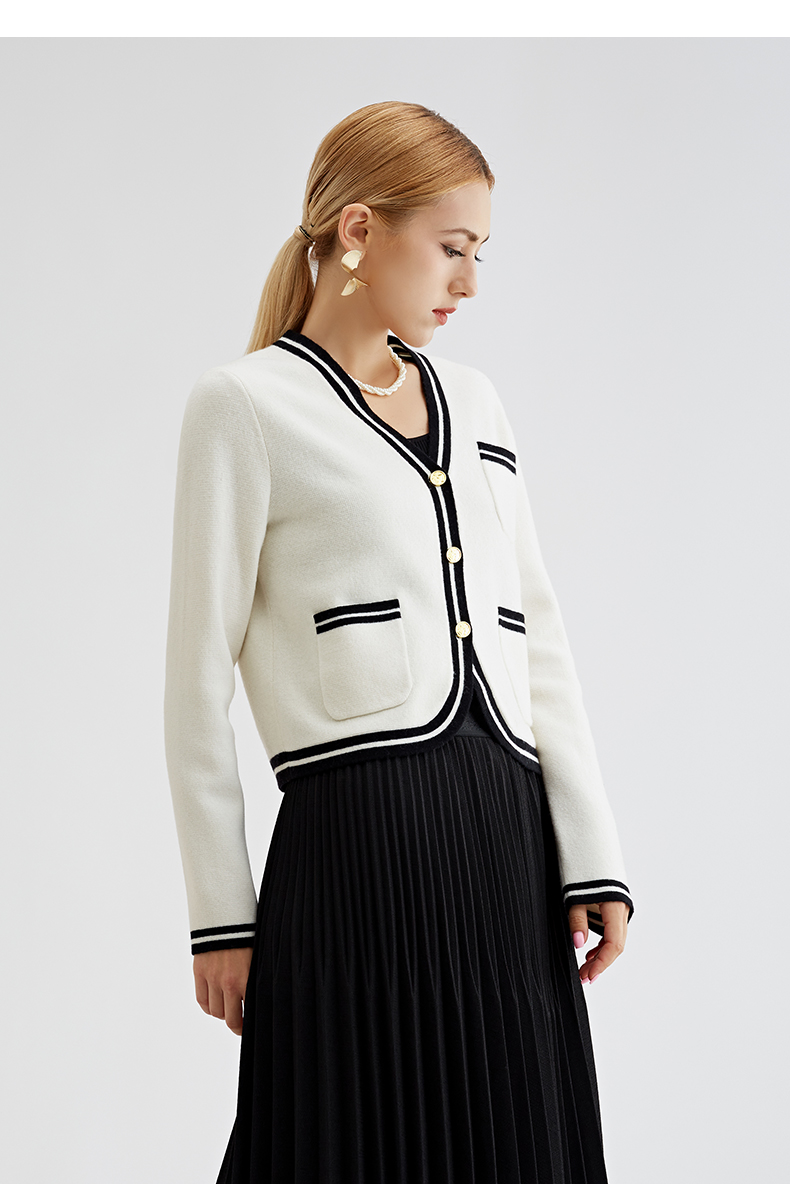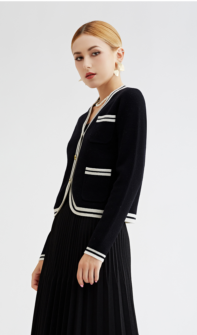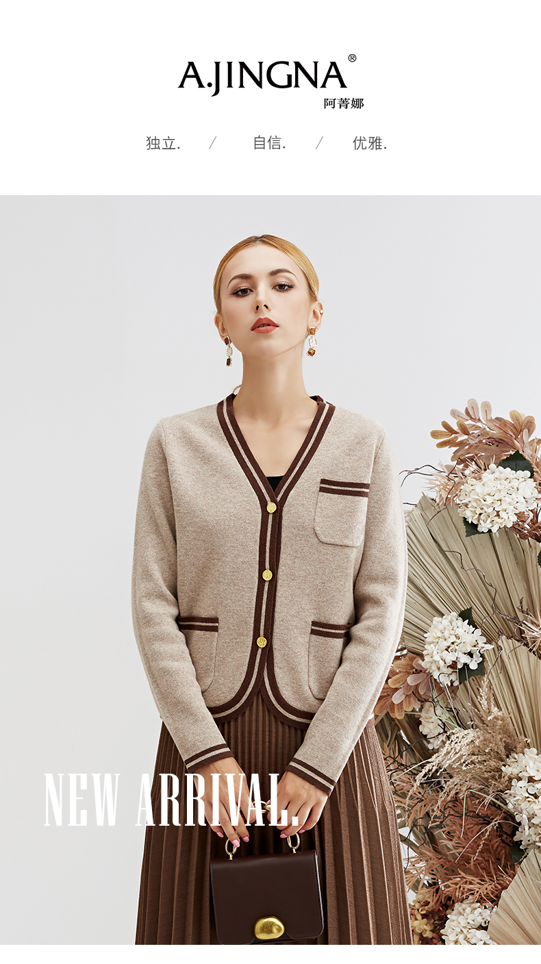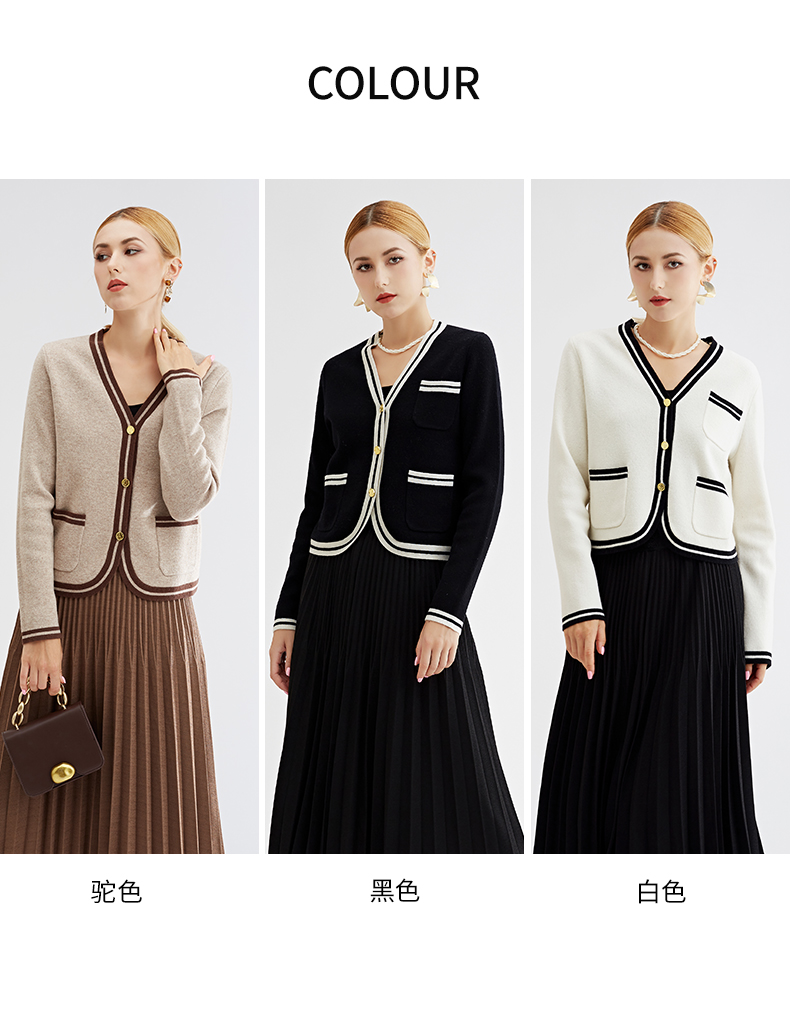 【特价款不退不换】阿菁娜秋冬新款经典百搭撞色针织廓形英伦风纯羊毛开衫A27D318007