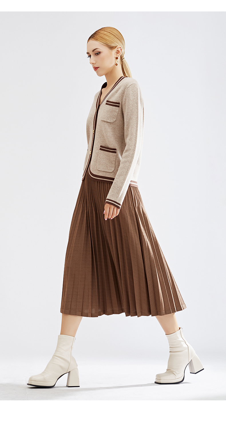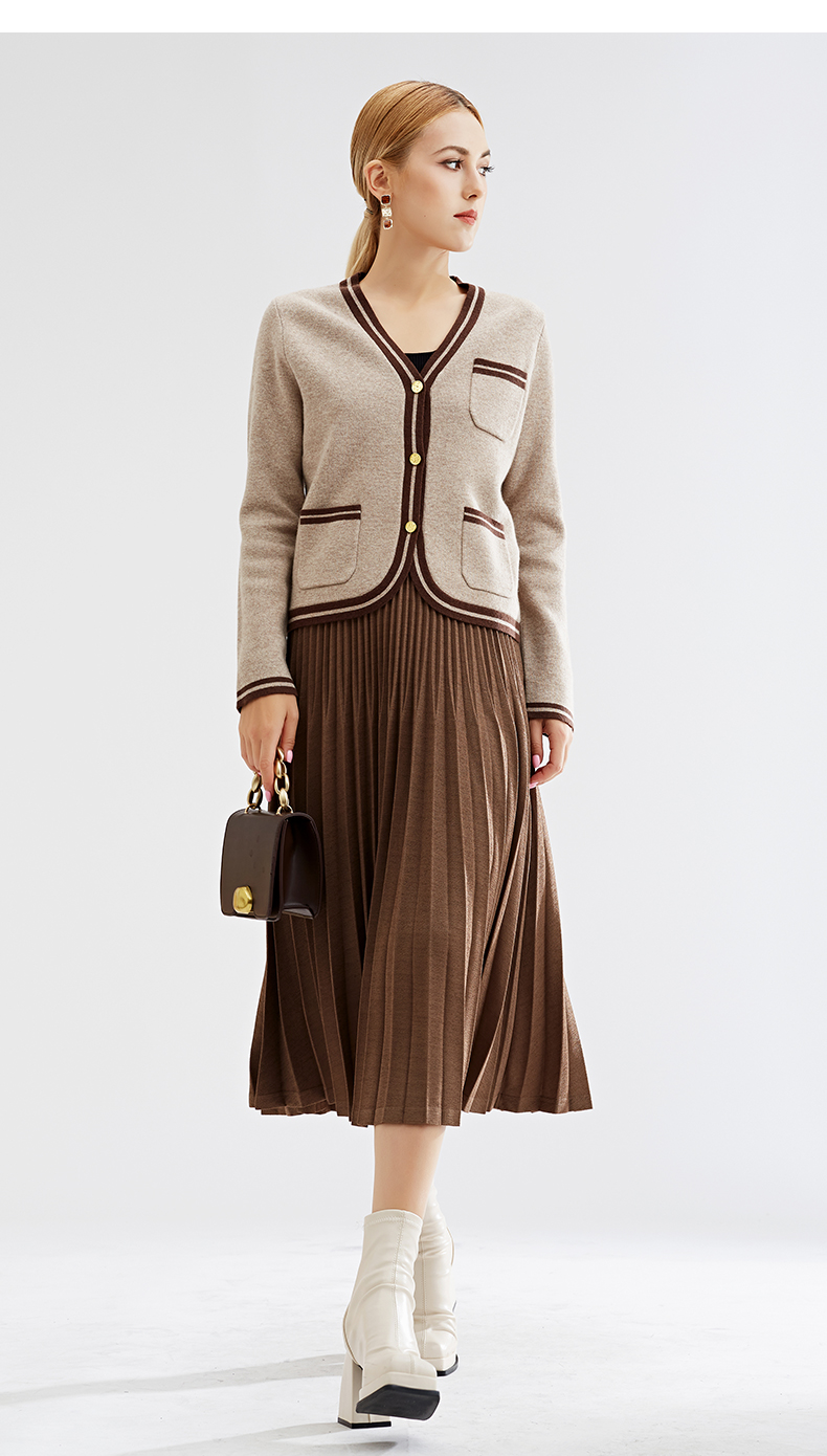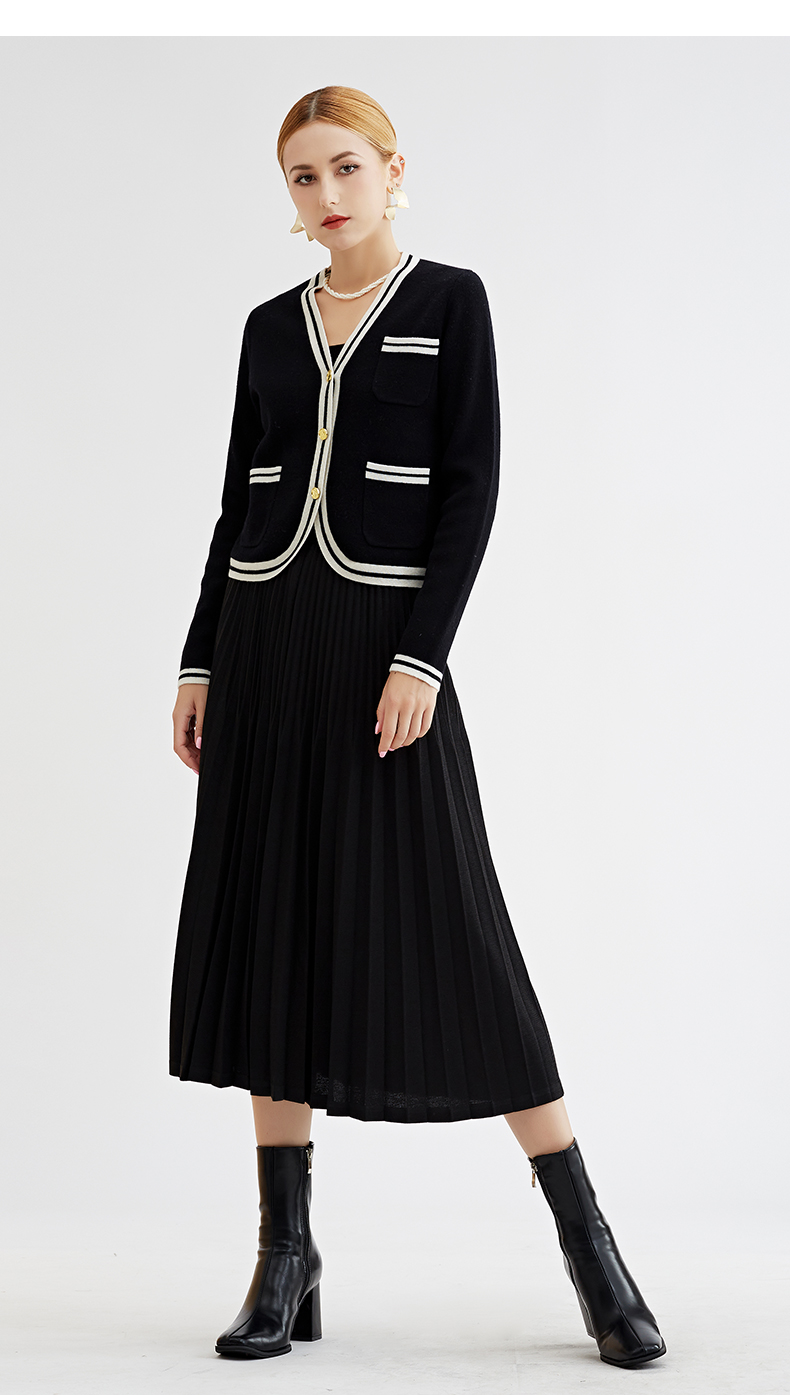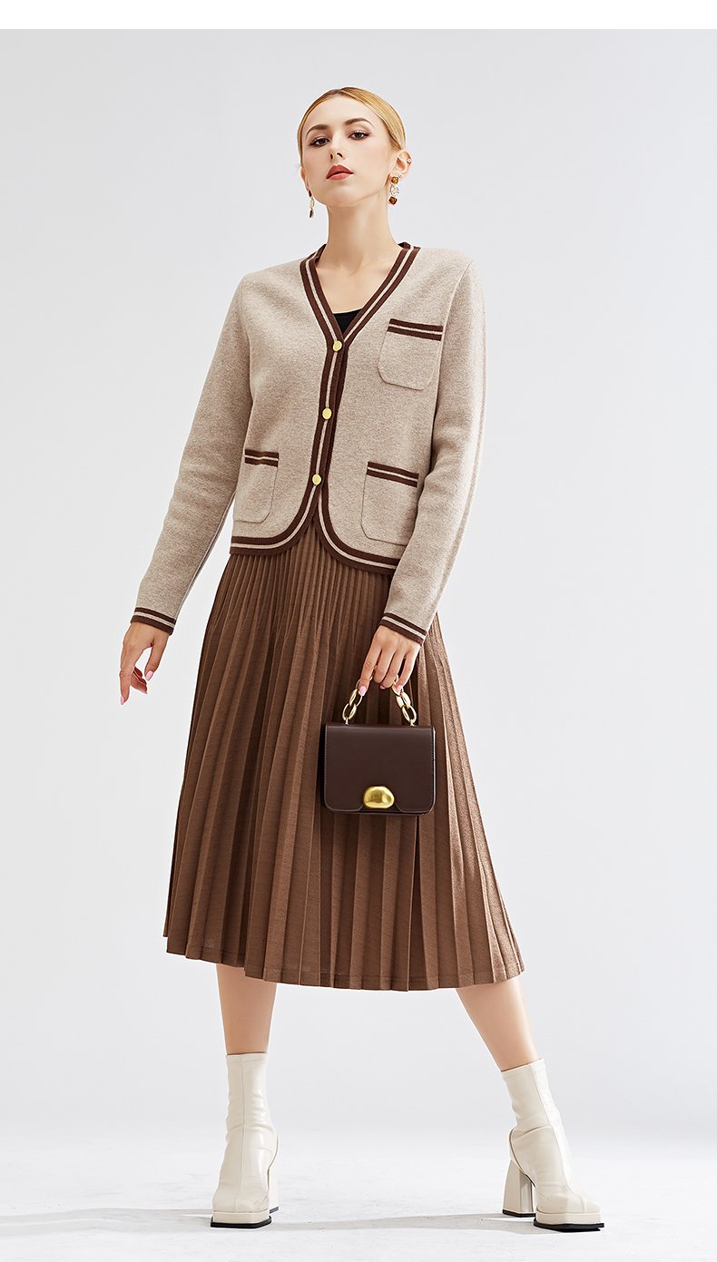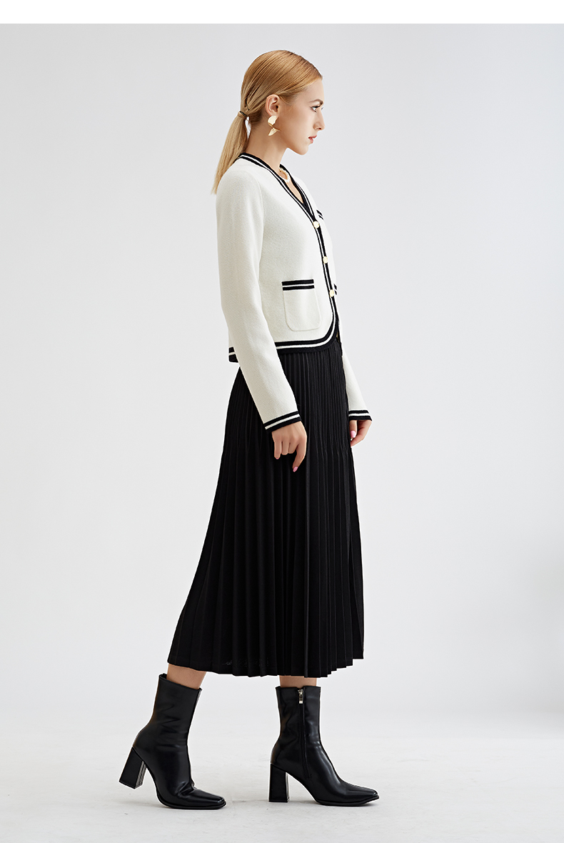 【特价款不退不换】阿菁娜秋冬新款经典百搭撞色针织廓形英伦风纯羊毛开衫A27D318007
