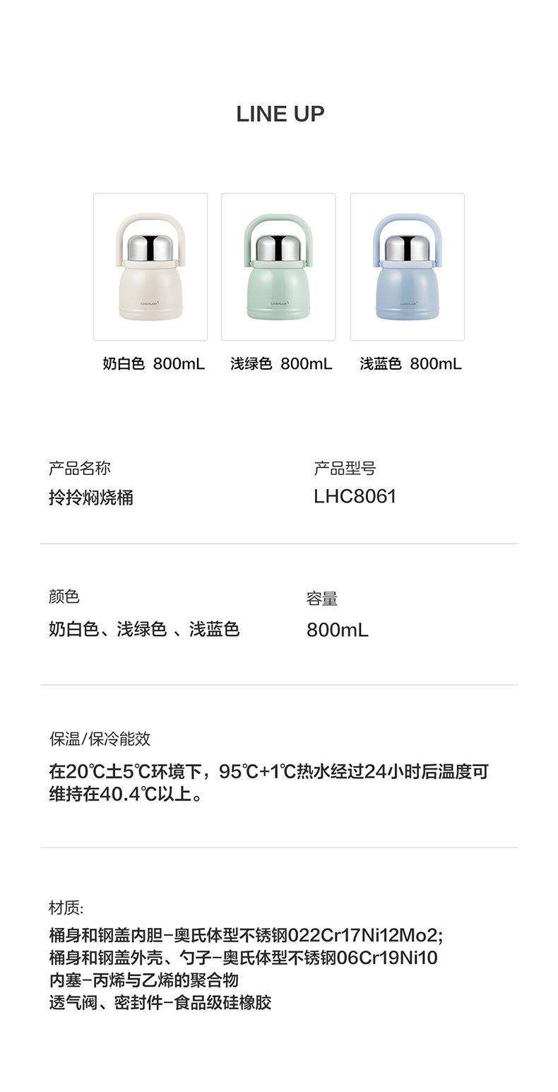 乐扣乐扣(LOCK&LOCK)316不锈钢材质拎拎闷烧桶-800ML