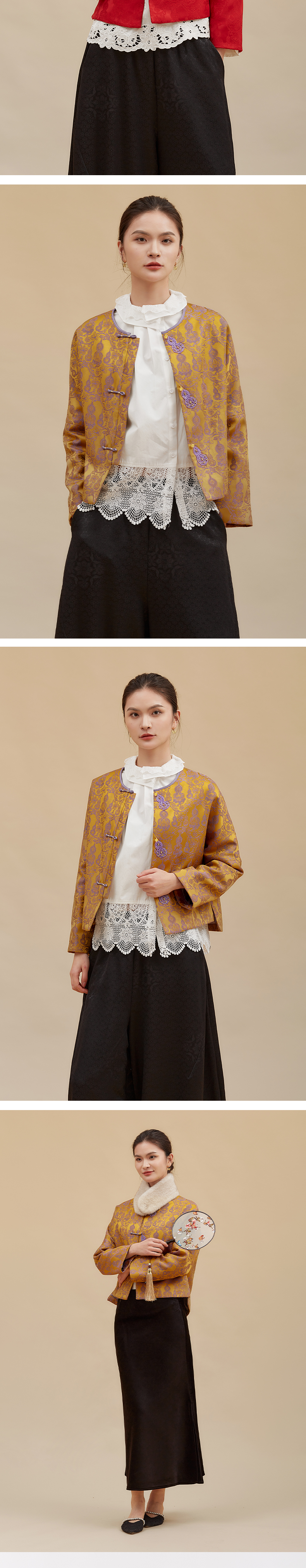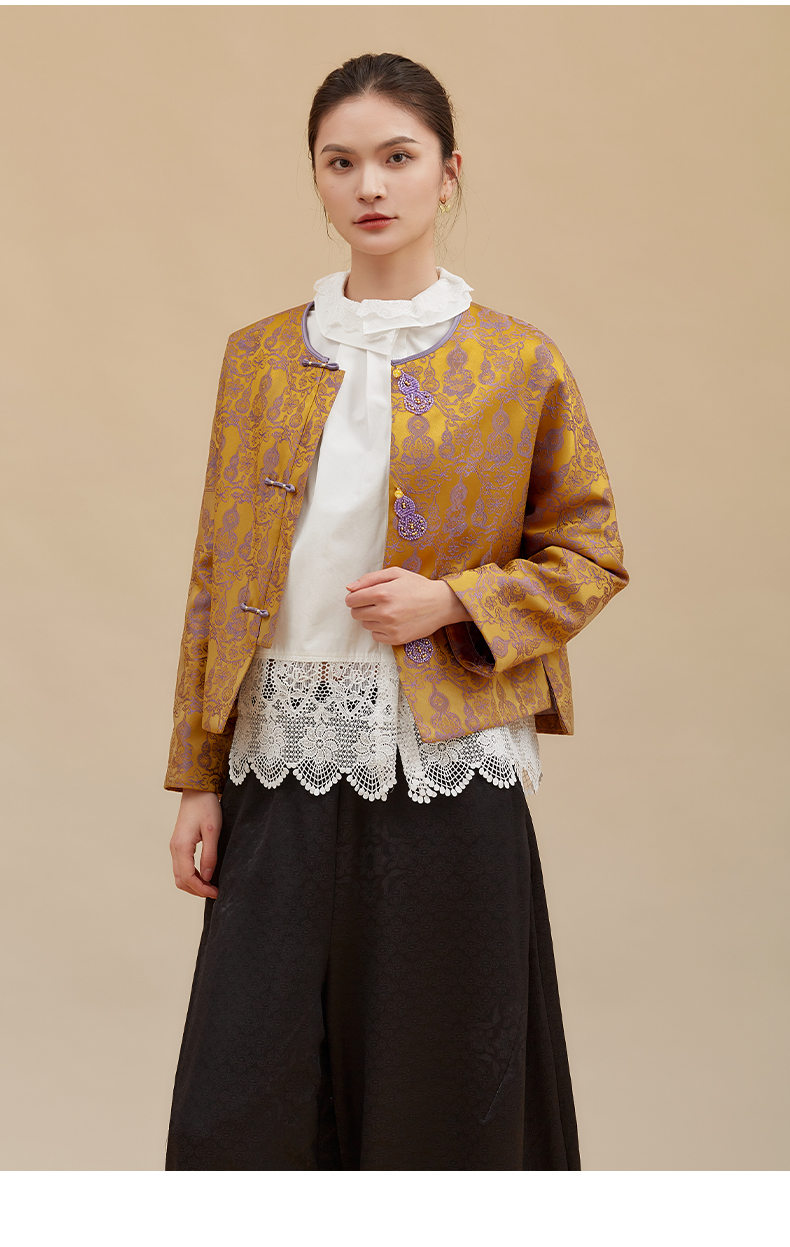 【淘衣节专享】阿菁娜冬季新款新中式提花外套手工盘扣葫芦装饰宫廷缠枝花F30D215015