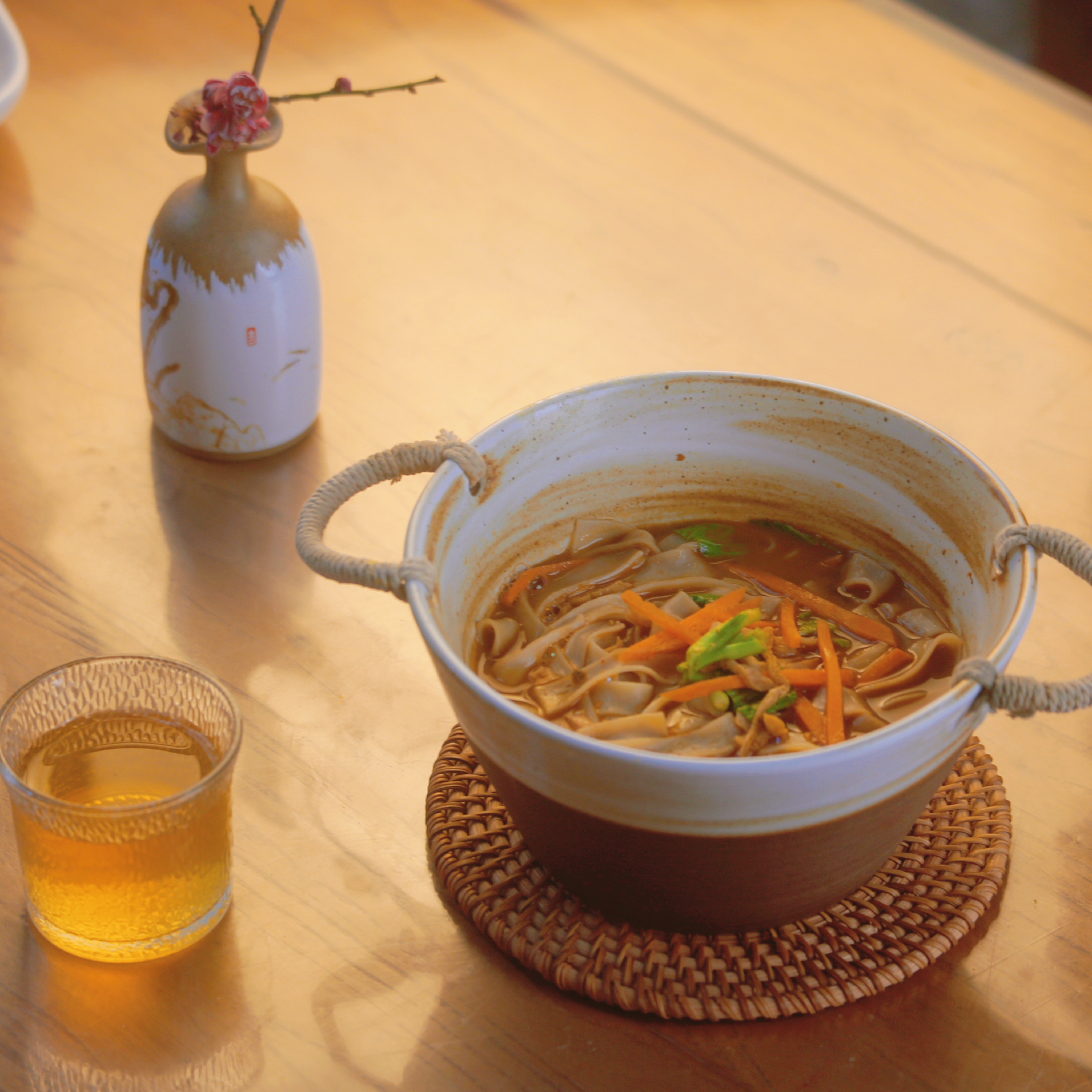 这碗劲皮面,用一壶热水就能搞定。