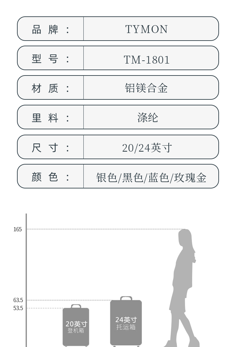 【632优选】TYMON(泰梦)金属灯塔铝镁合金拉杆箱TM-1801-SH1069