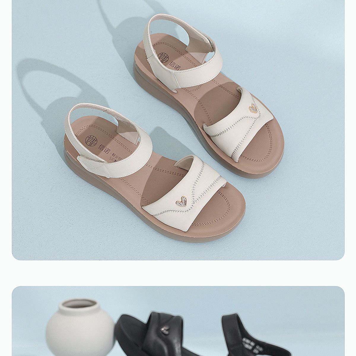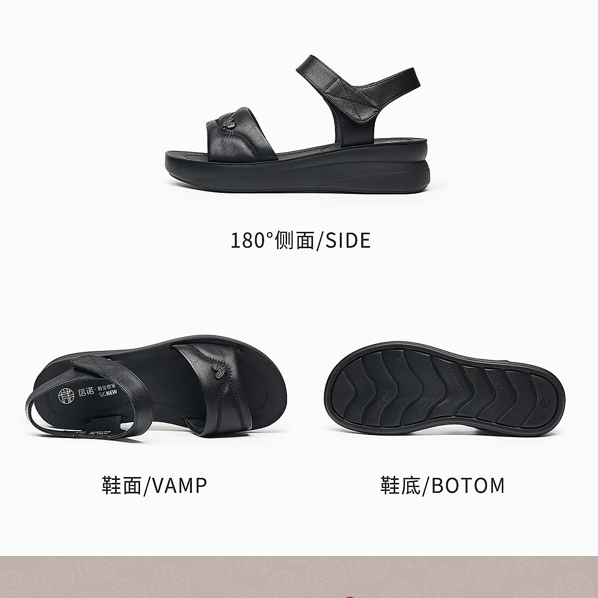 信诺妈妈鞋厚底舒适一字带外穿沙滩凉鞋中老年女鞋子2026夏季新款6L950-60