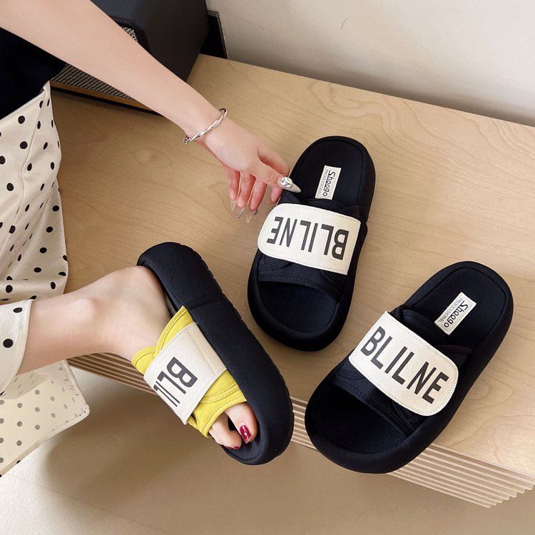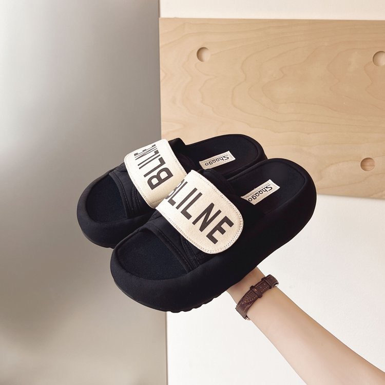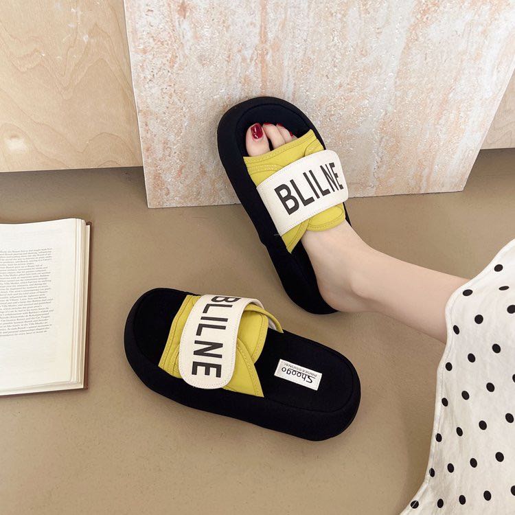 【YW】无忧购魔术贴一字拖鞋外穿通勤百搭厚底松糕沙滩鞋B063(截单后3-5天发货)
