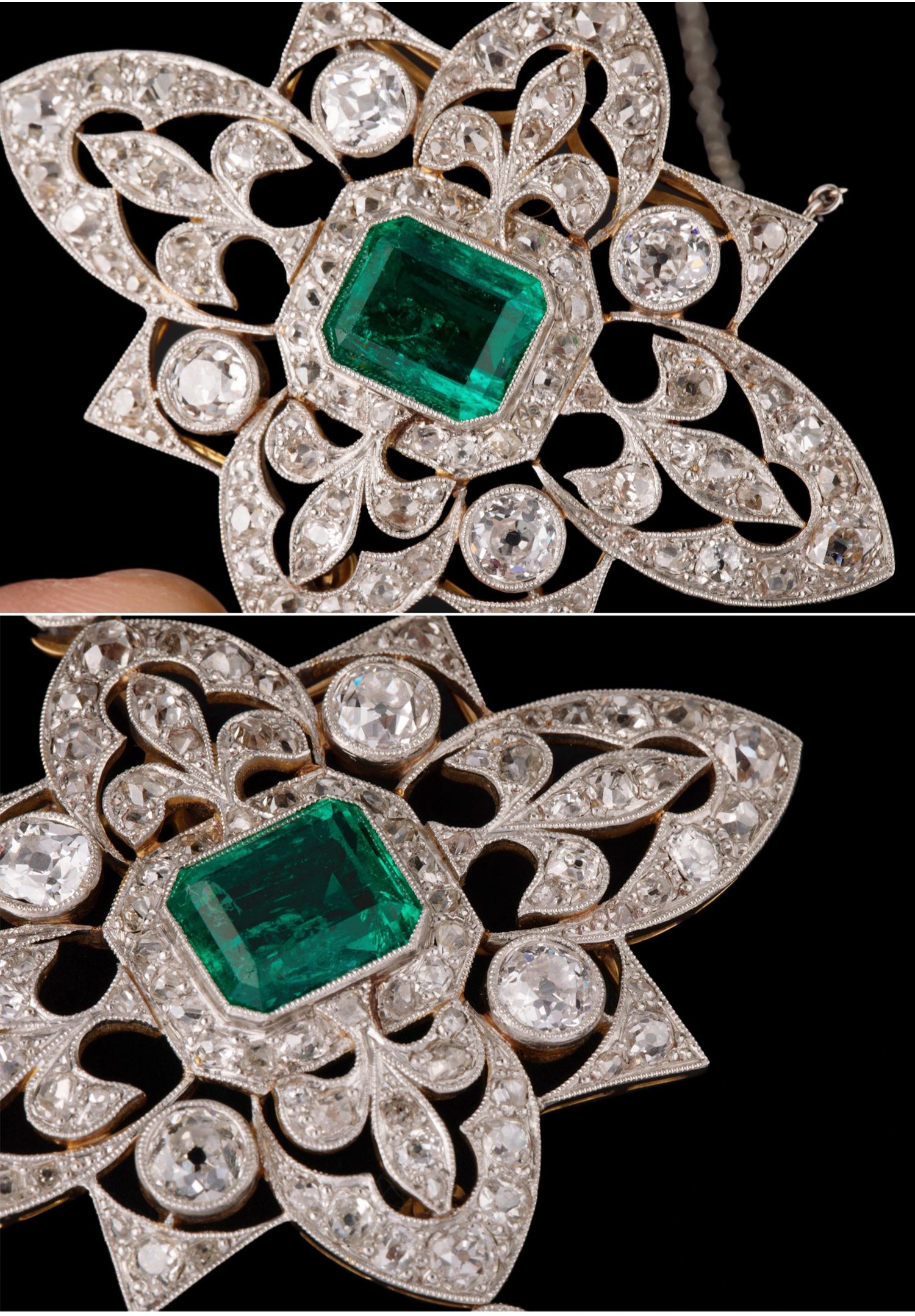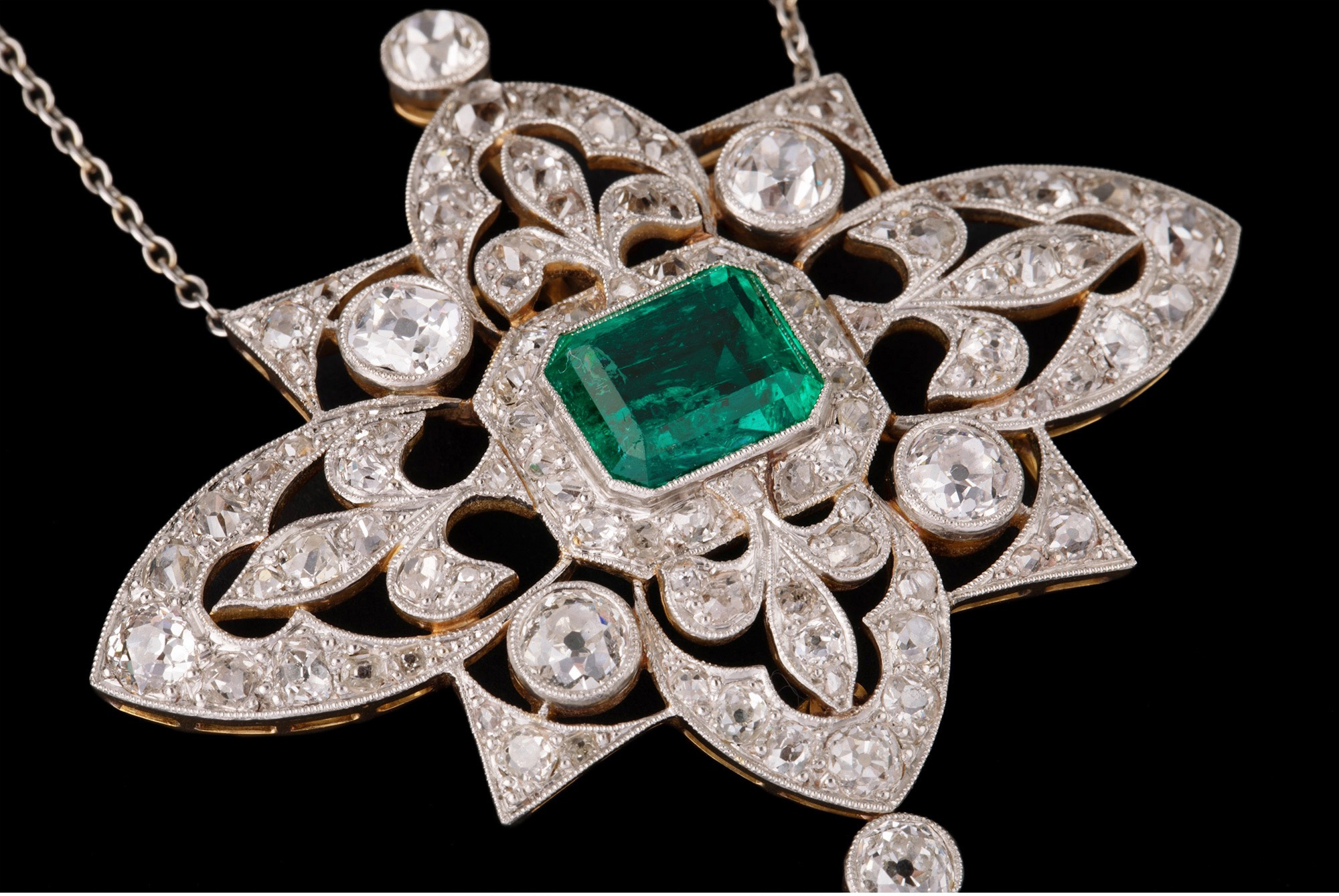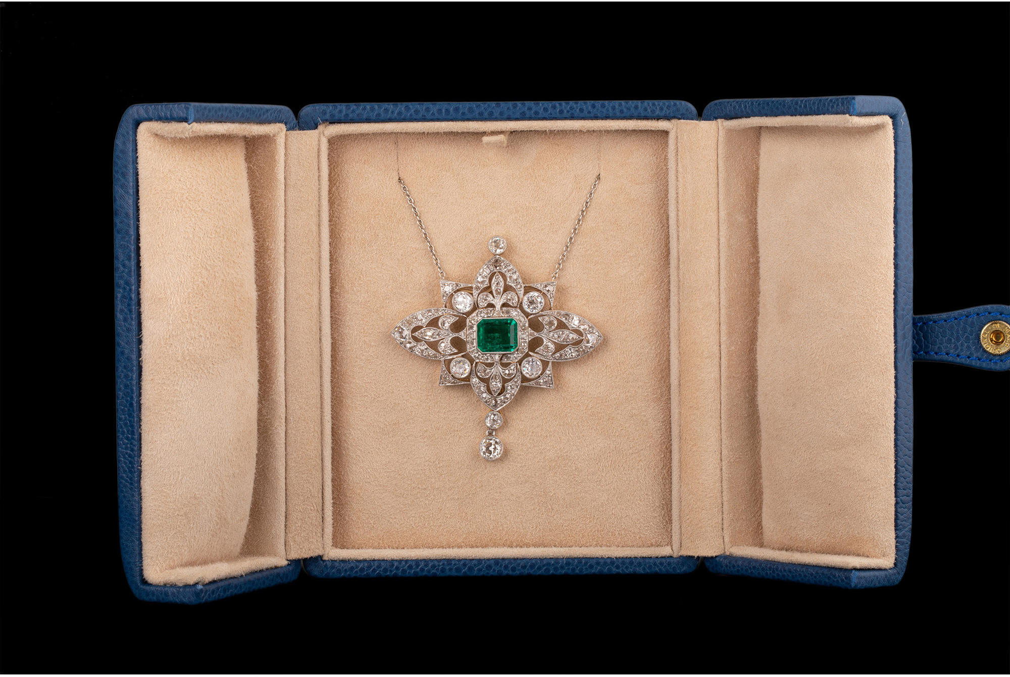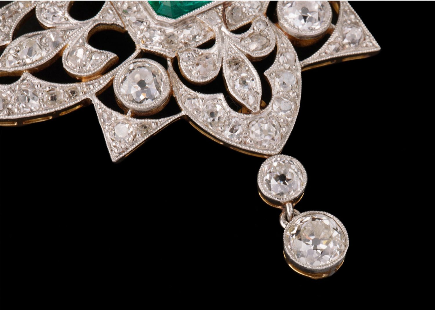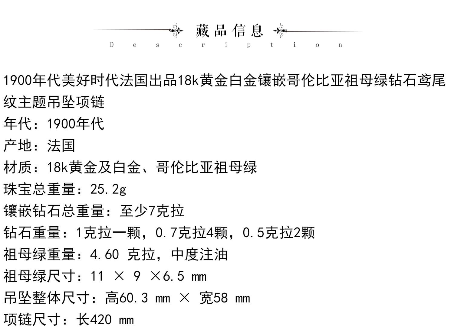 独角鹿西洋古董法国18K金镶哥伦比亚祖母绿钻石鸢尾纹吊坠项链
