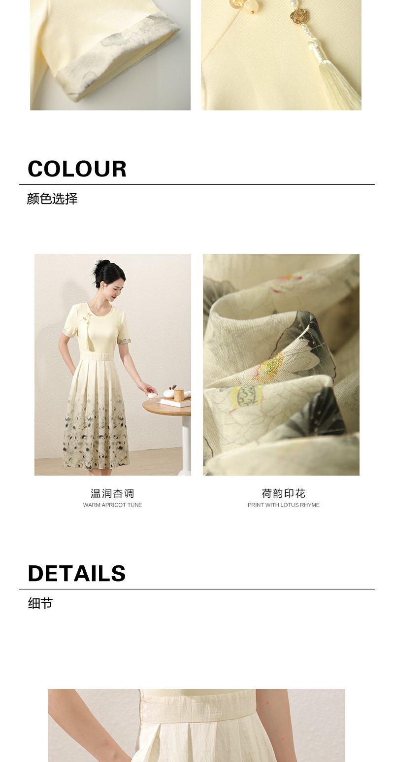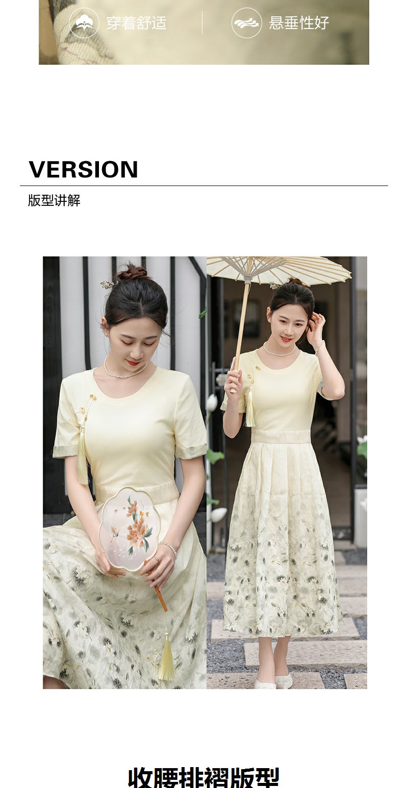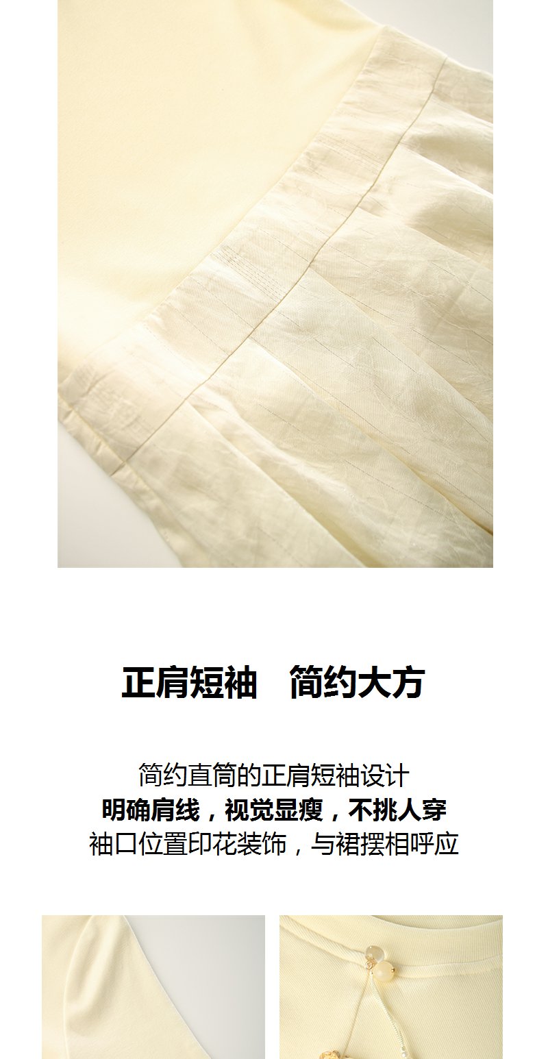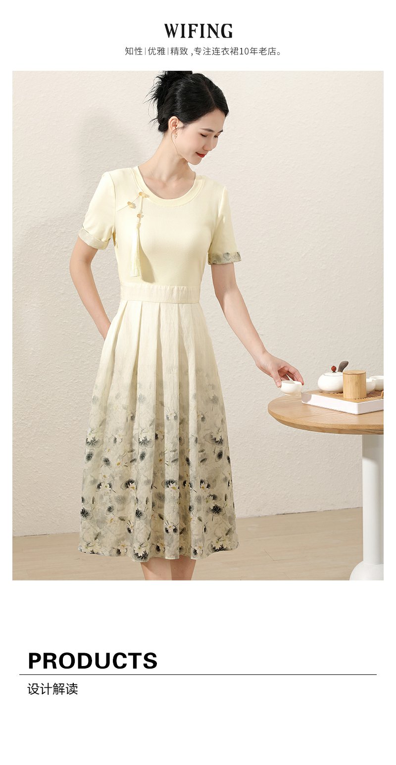 未风杏色国风连衣裙女2025新款夏季气质收腰针织拼接长款短袖裙子