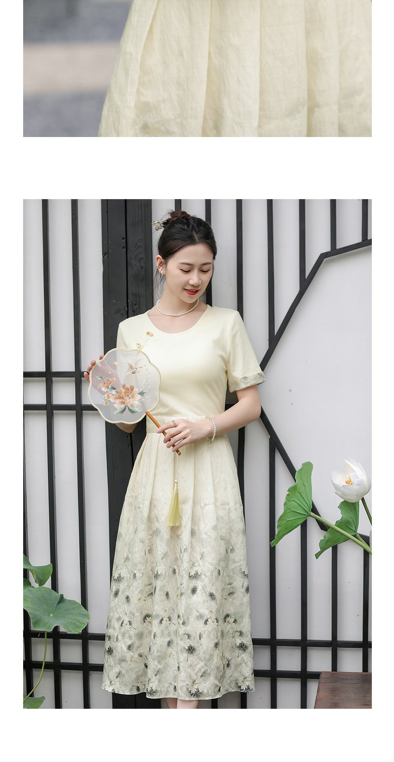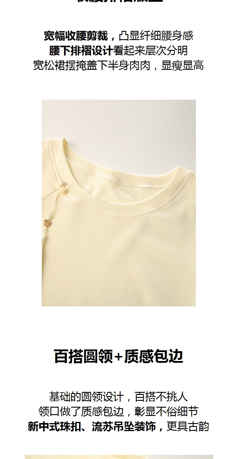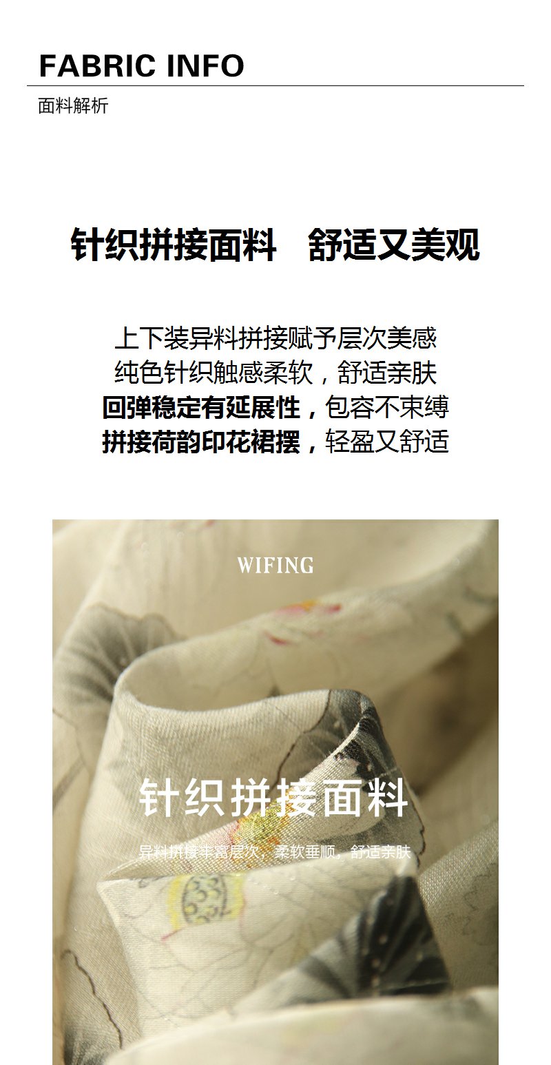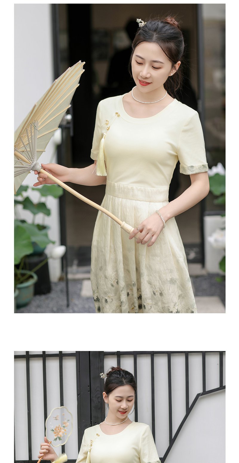 未风杏色国风连衣裙女2025新款夏季气质收腰针织拼接长款短袖裙子