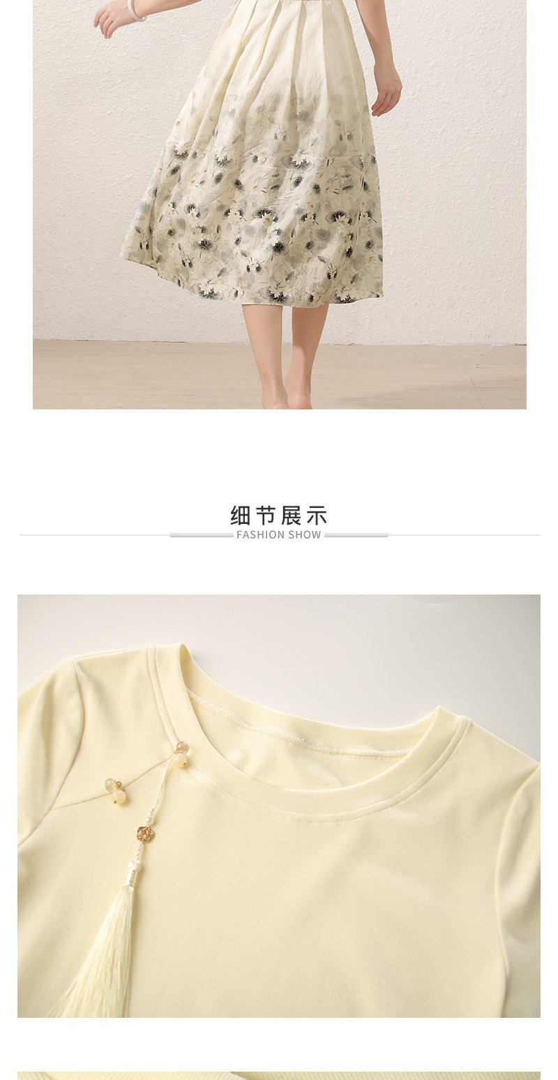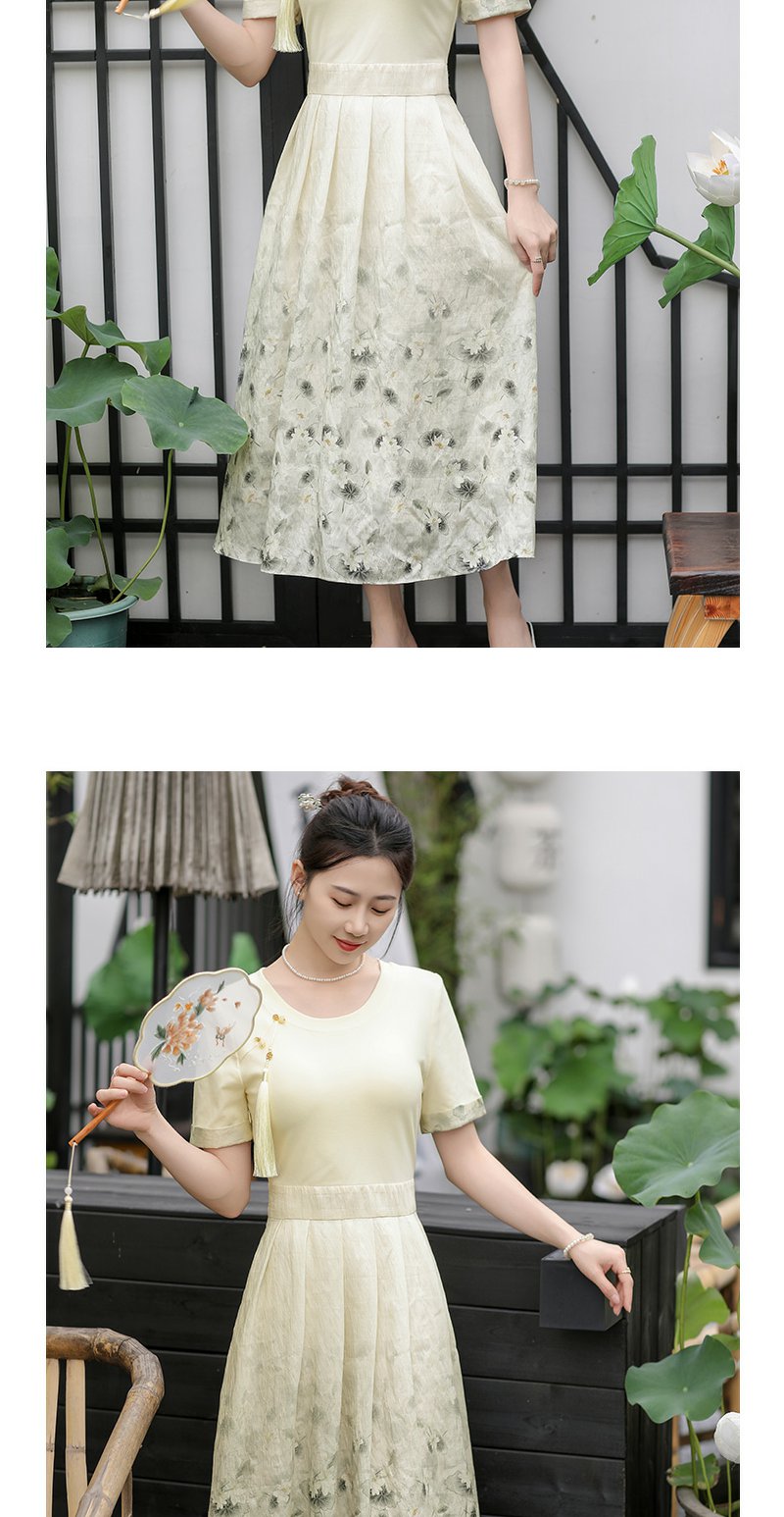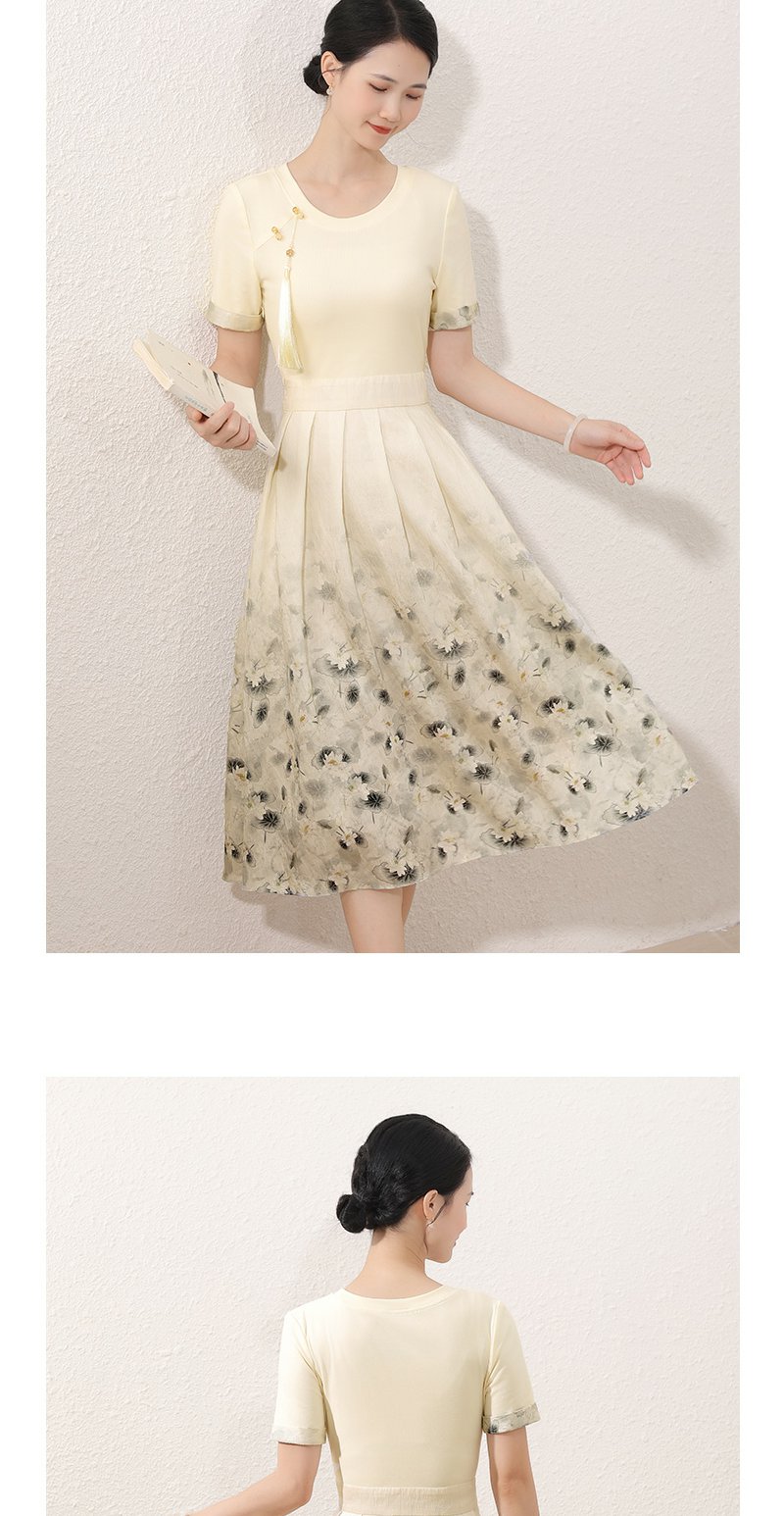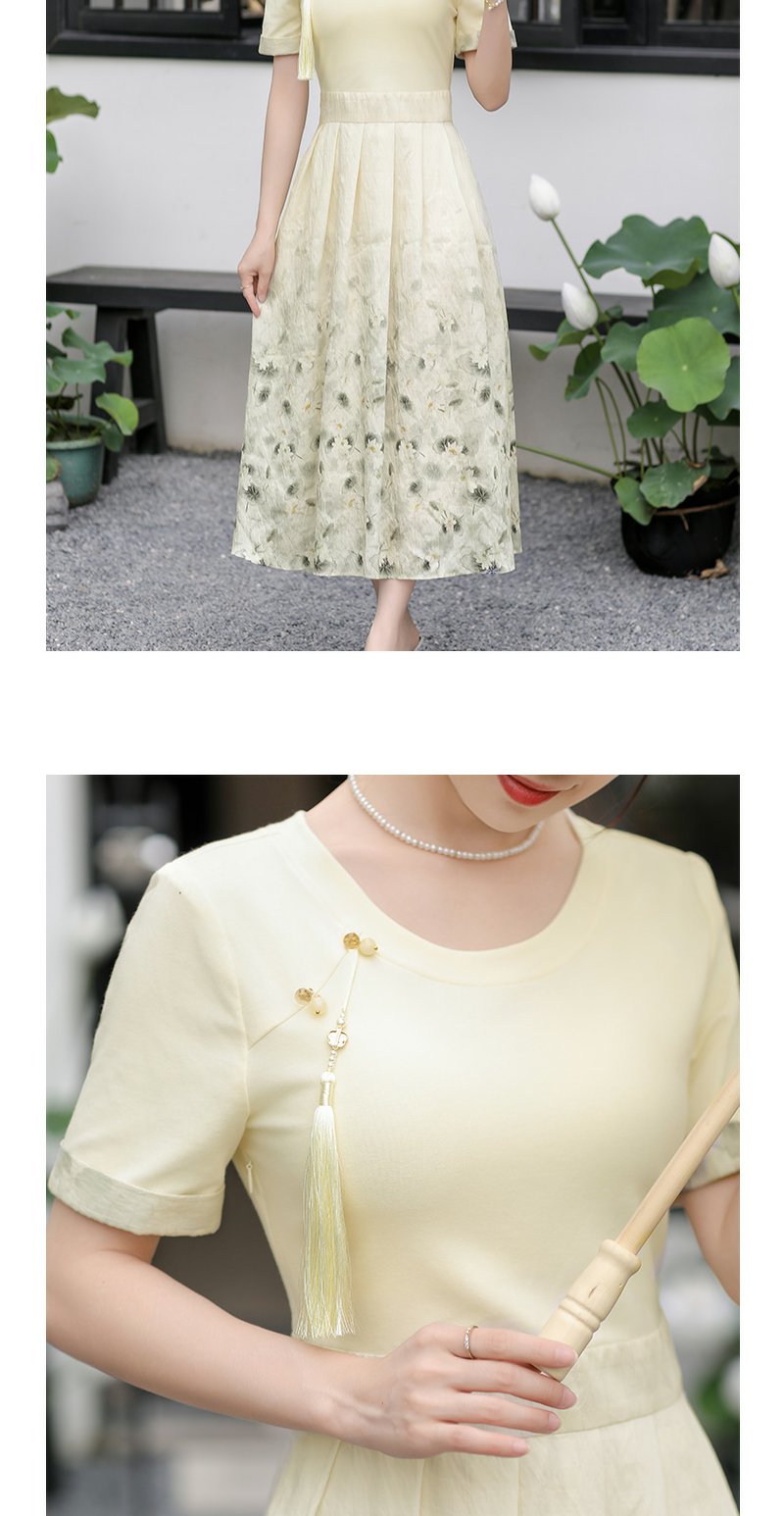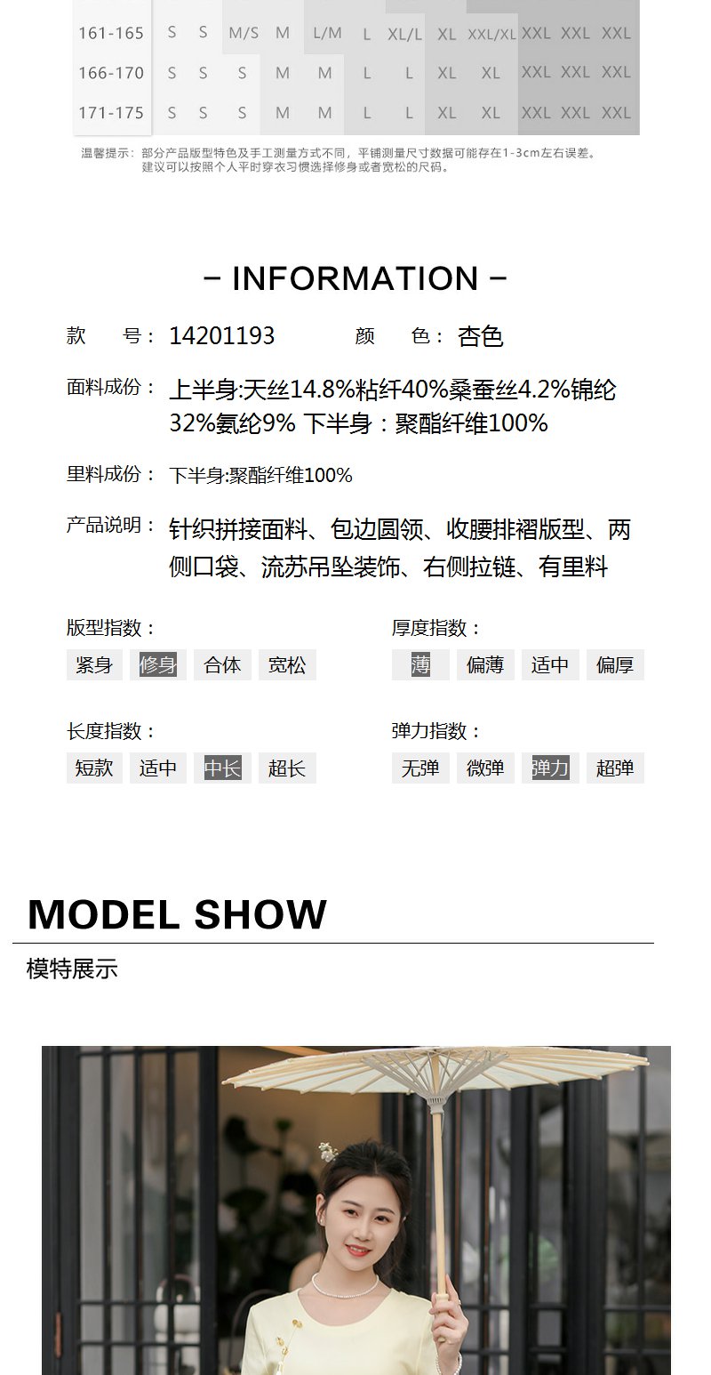 未风杏色国风连衣裙女2025新款夏季气质收腰针织拼接长款短袖裙子
