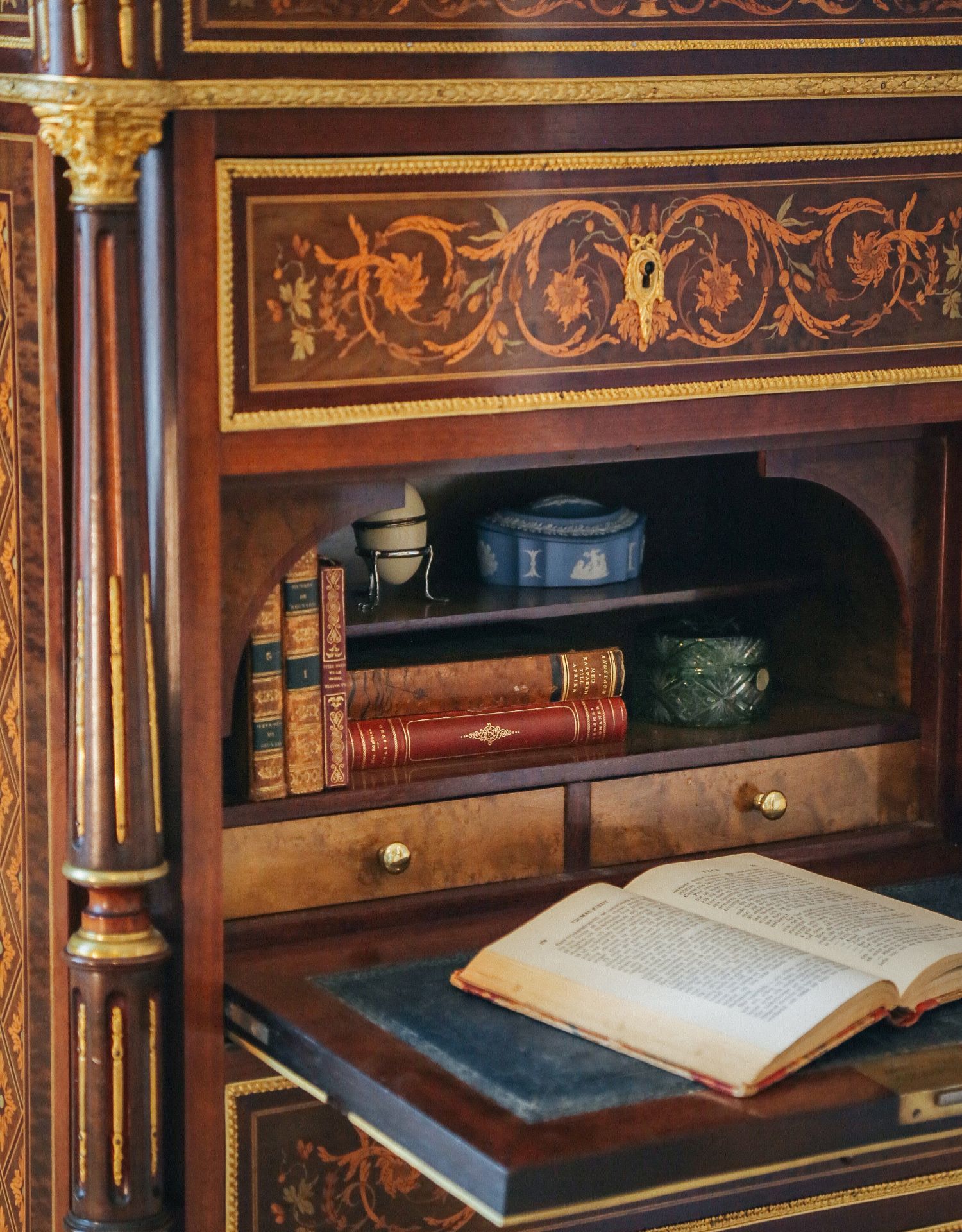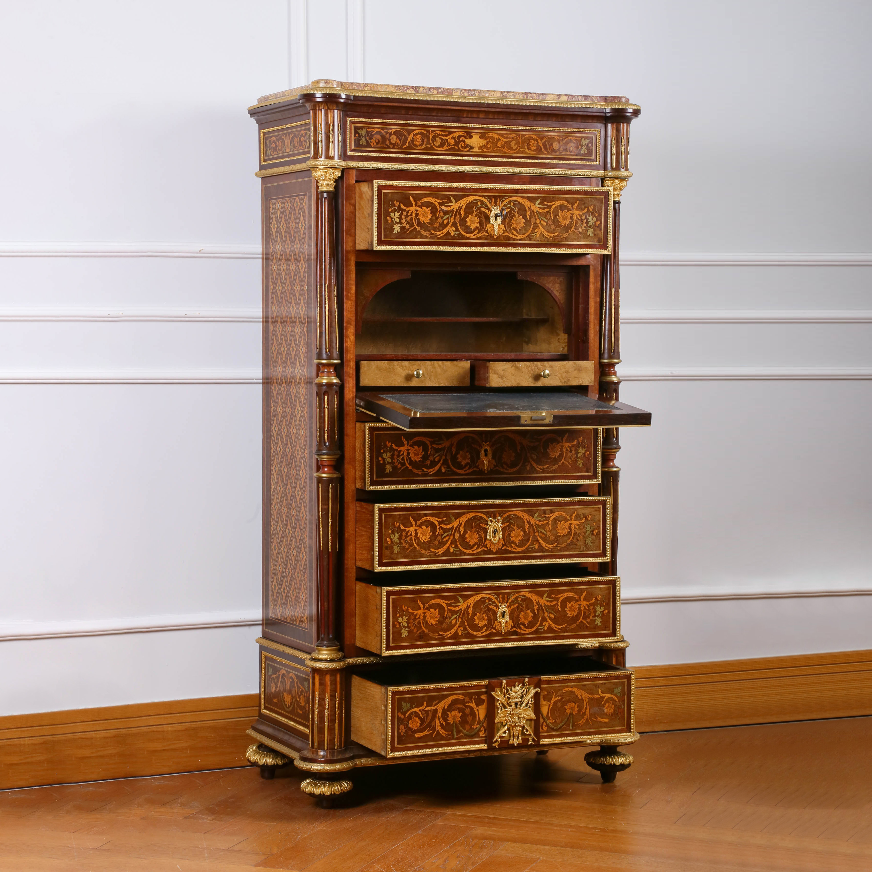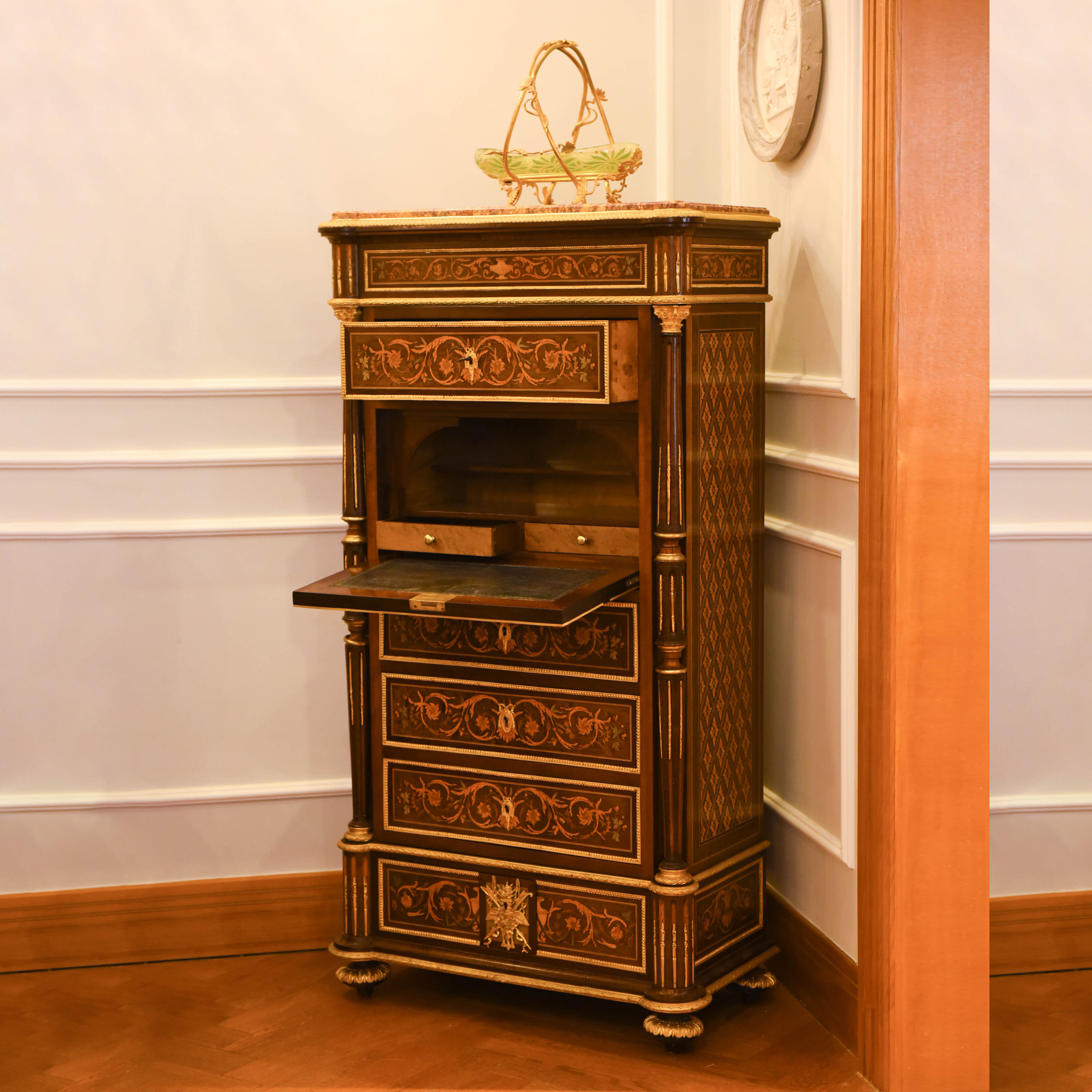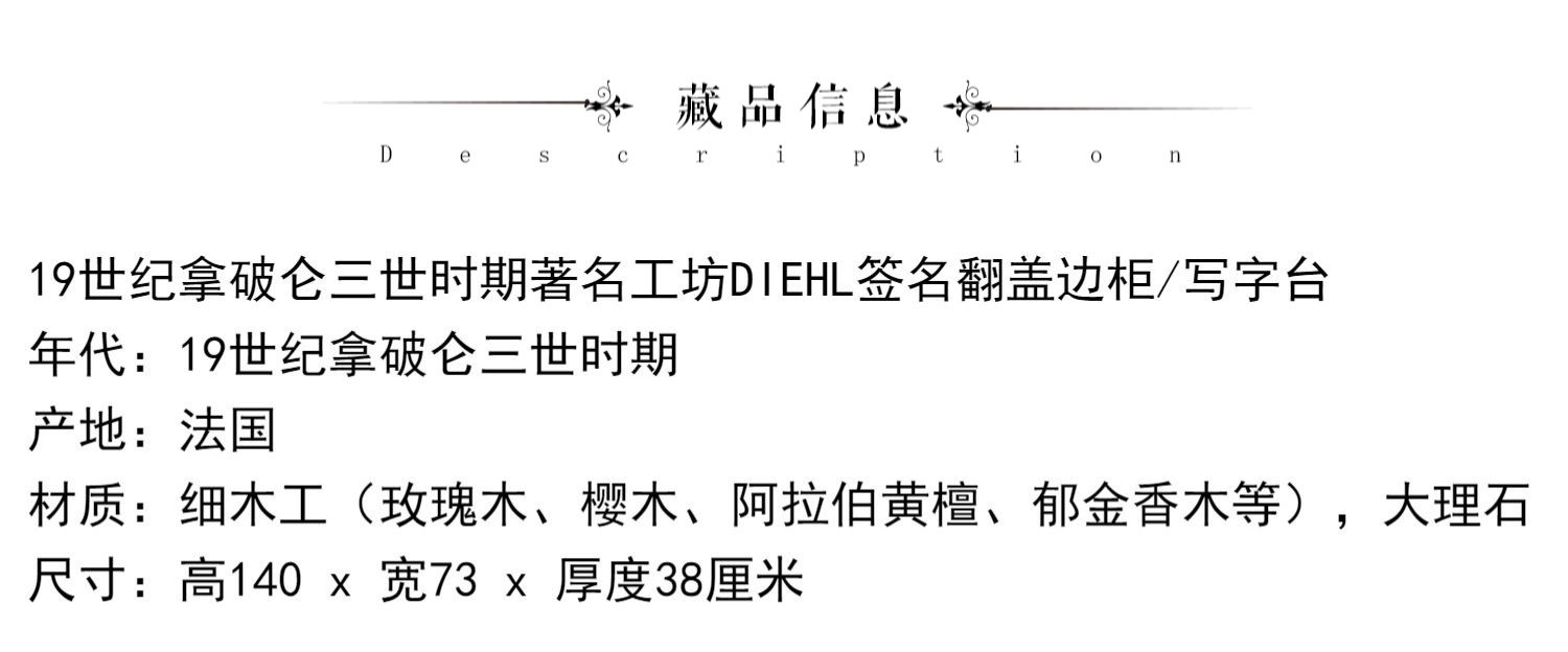 国内现货独角鹿西洋古董家具拿破仑三世DIEHL工坊翻盖边柜写字台