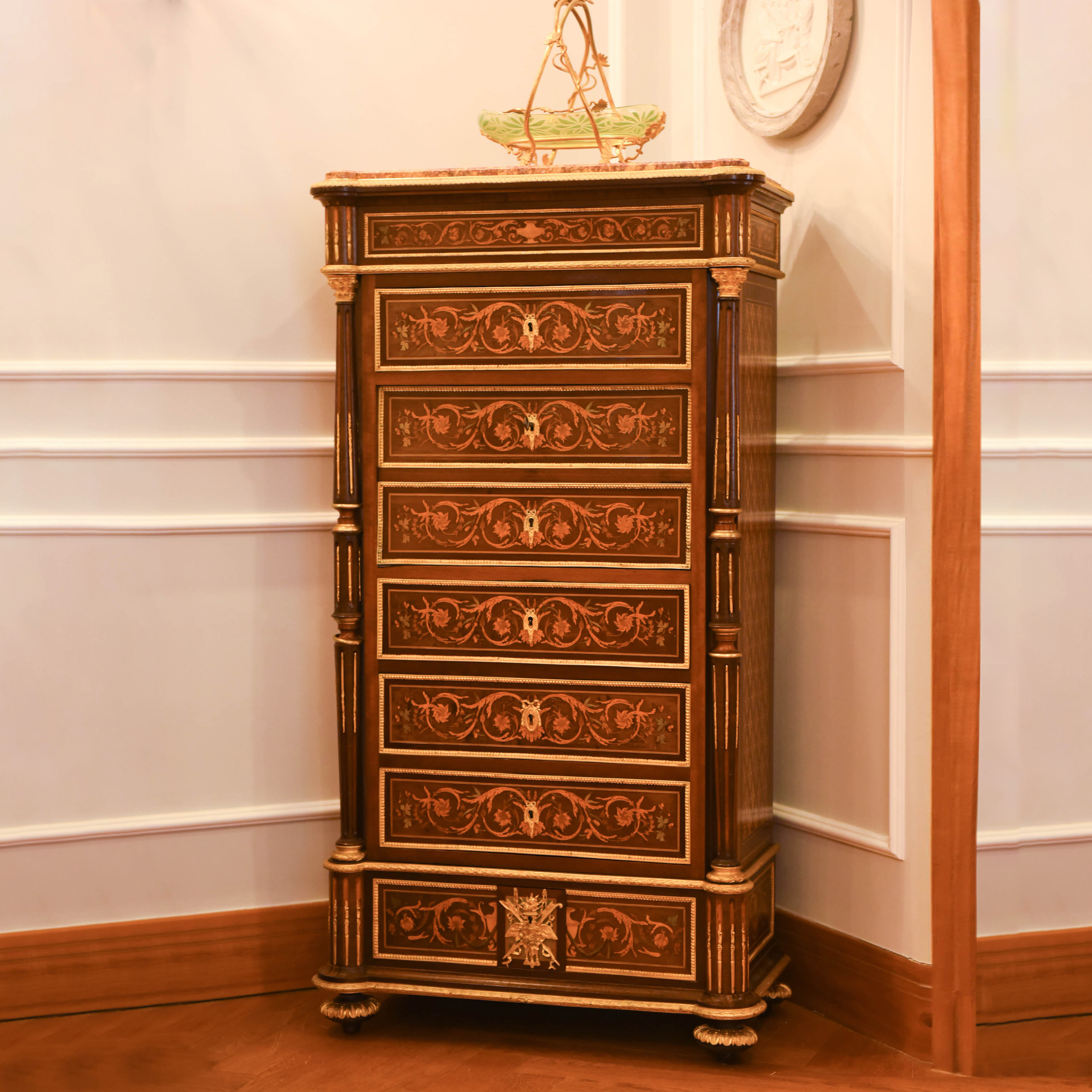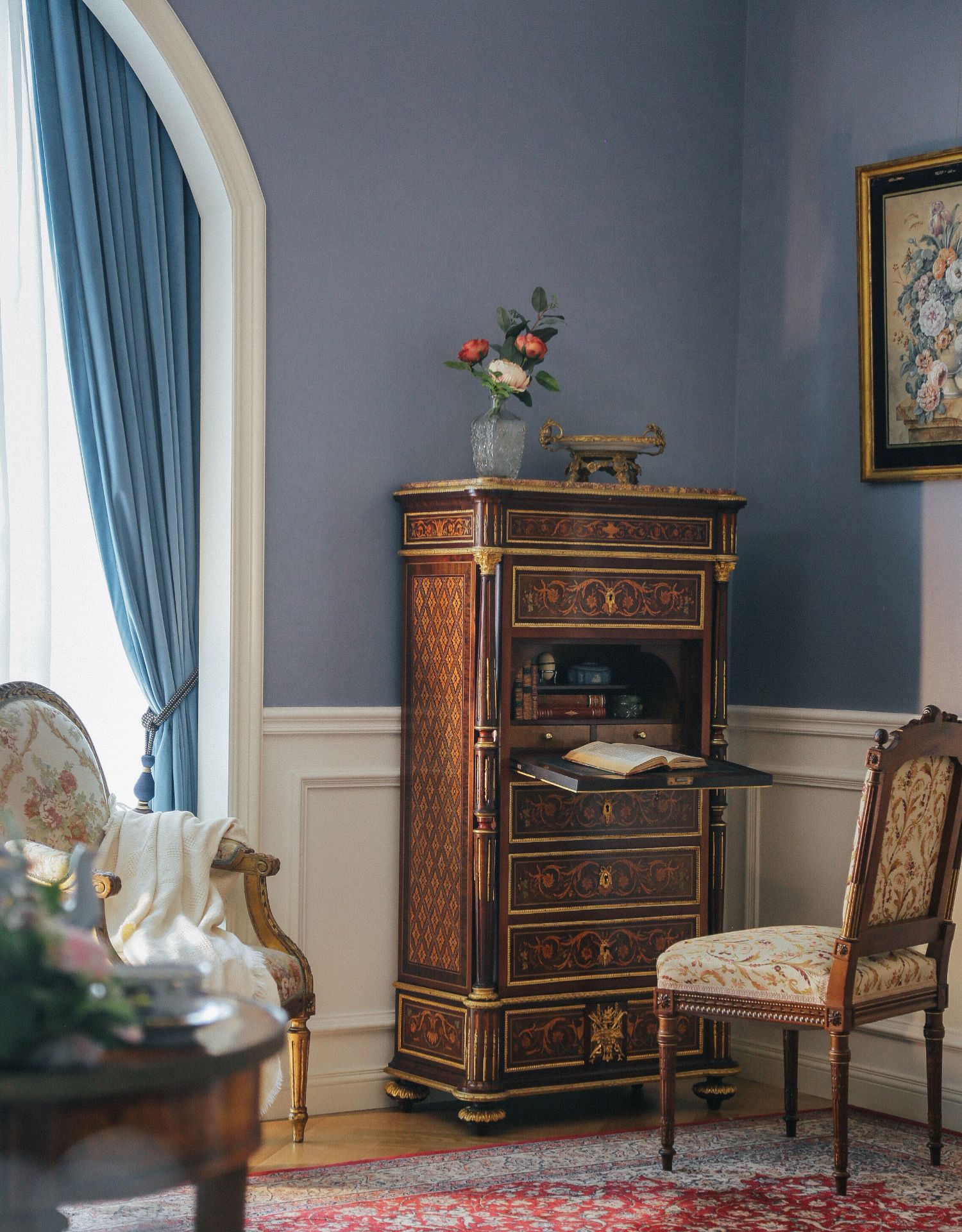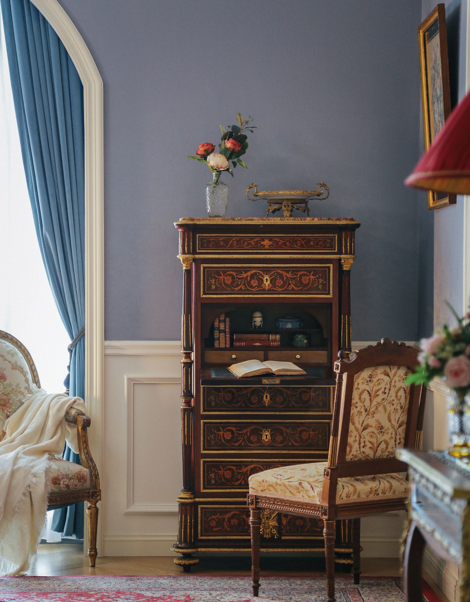 国内现货独角鹿西洋古董家具拿破仑三世DIEHL工坊翻盖边柜写字台