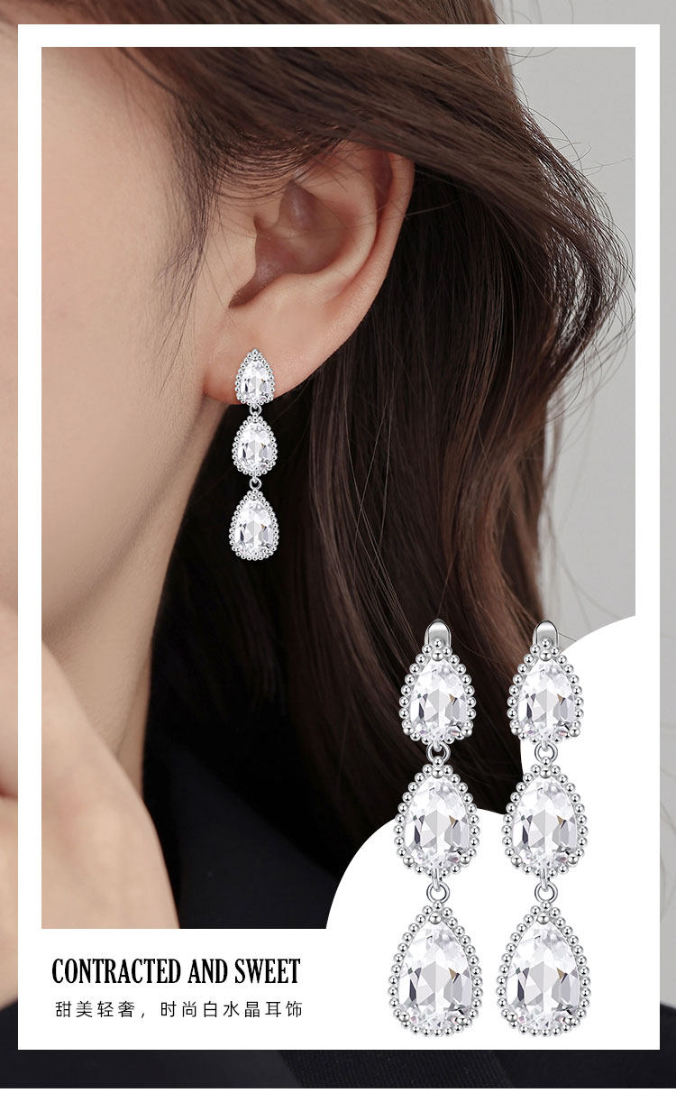 【天然白水晶彩色宝石耳坠】周六(3.21)中午12点开始 耳钉女S925银饰品送女士节日礼物JE25068-水晶CC