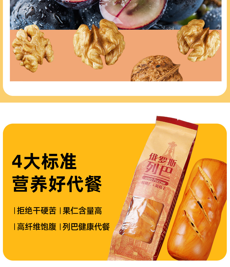 【中欧班列精选】wwj俄罗斯风味葡萄干核桃果仁大列巴 300g/袋 俄式风味正品保证