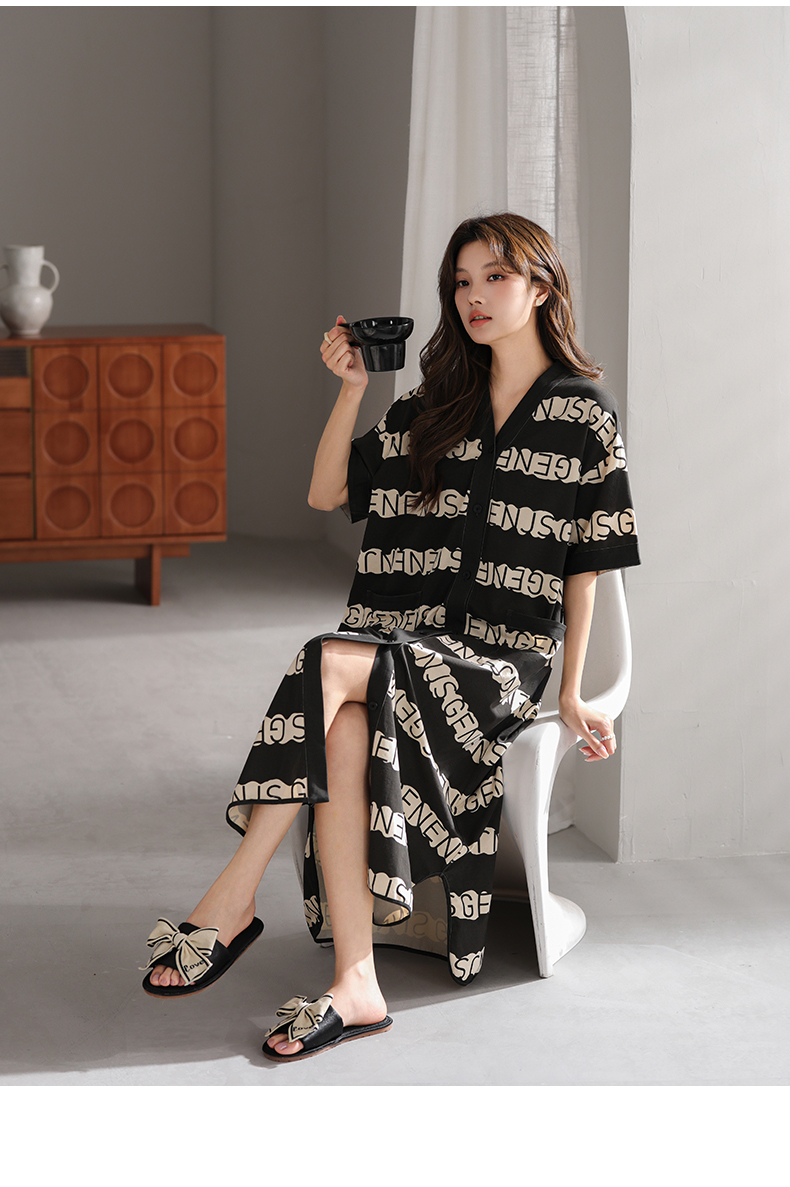 可人儿小众设计师奥力绵女士睡衣夏季短袖少女睡裙可外穿家居服