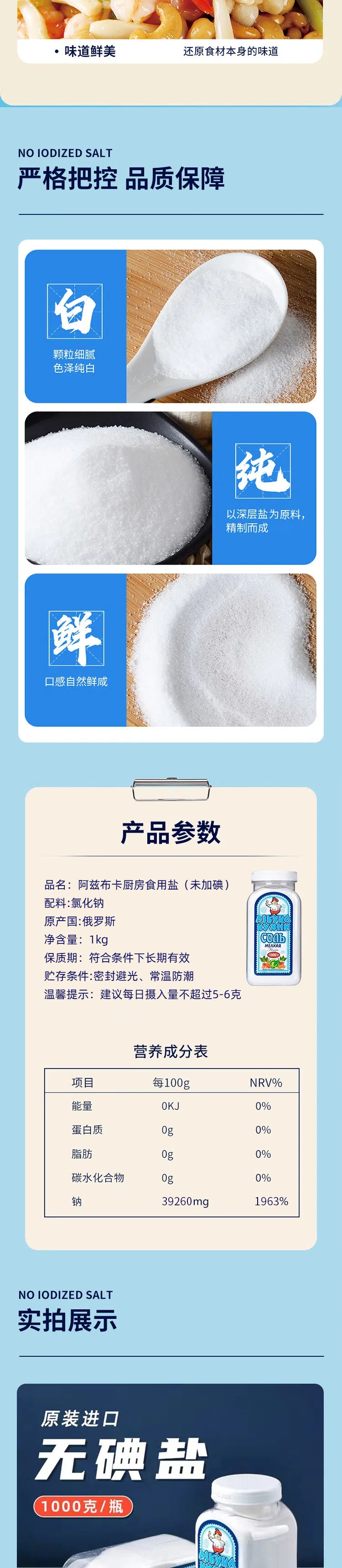 俄罗斯进口阿兹布卡厨房食用盐1kg未加碘
