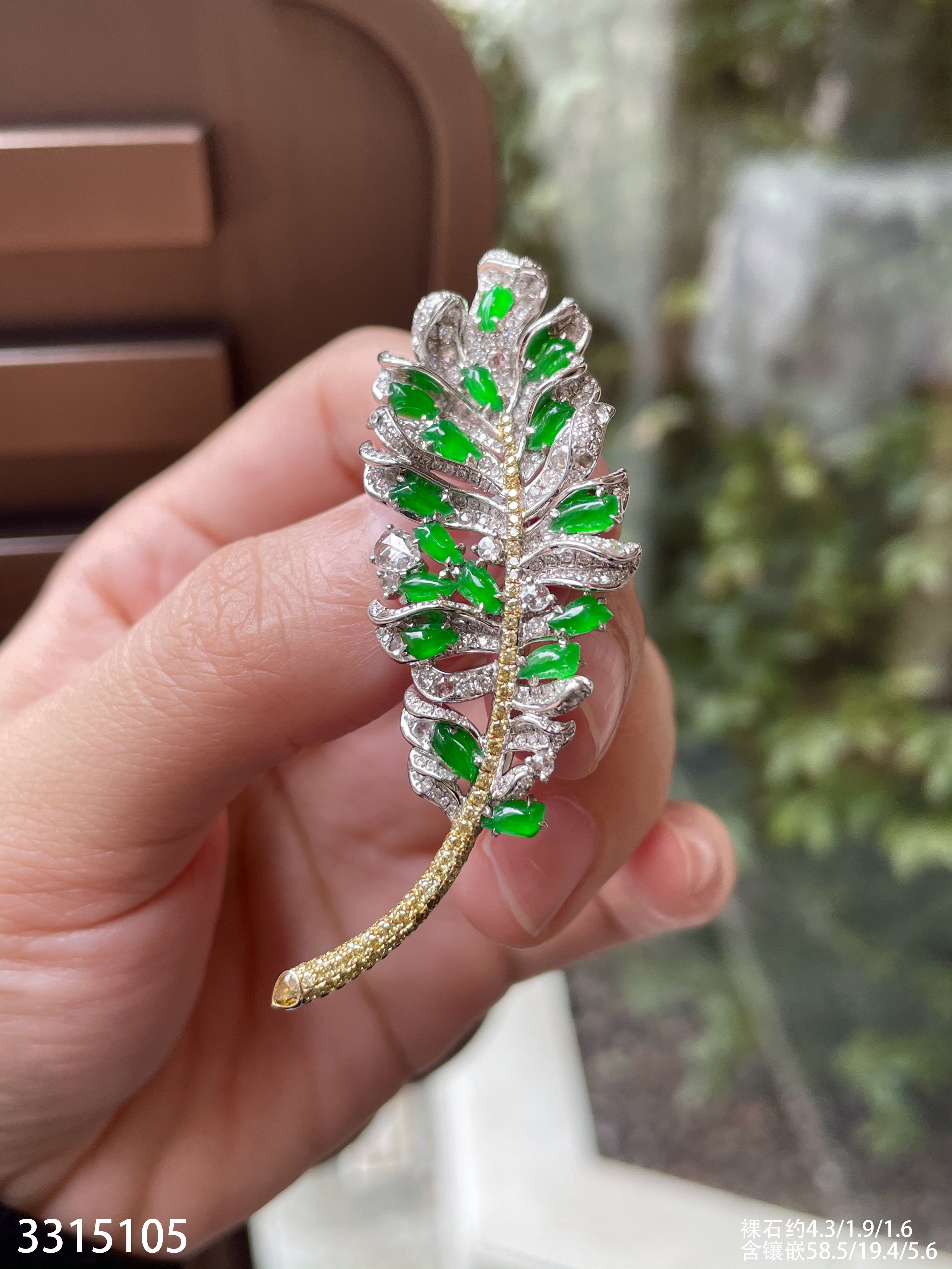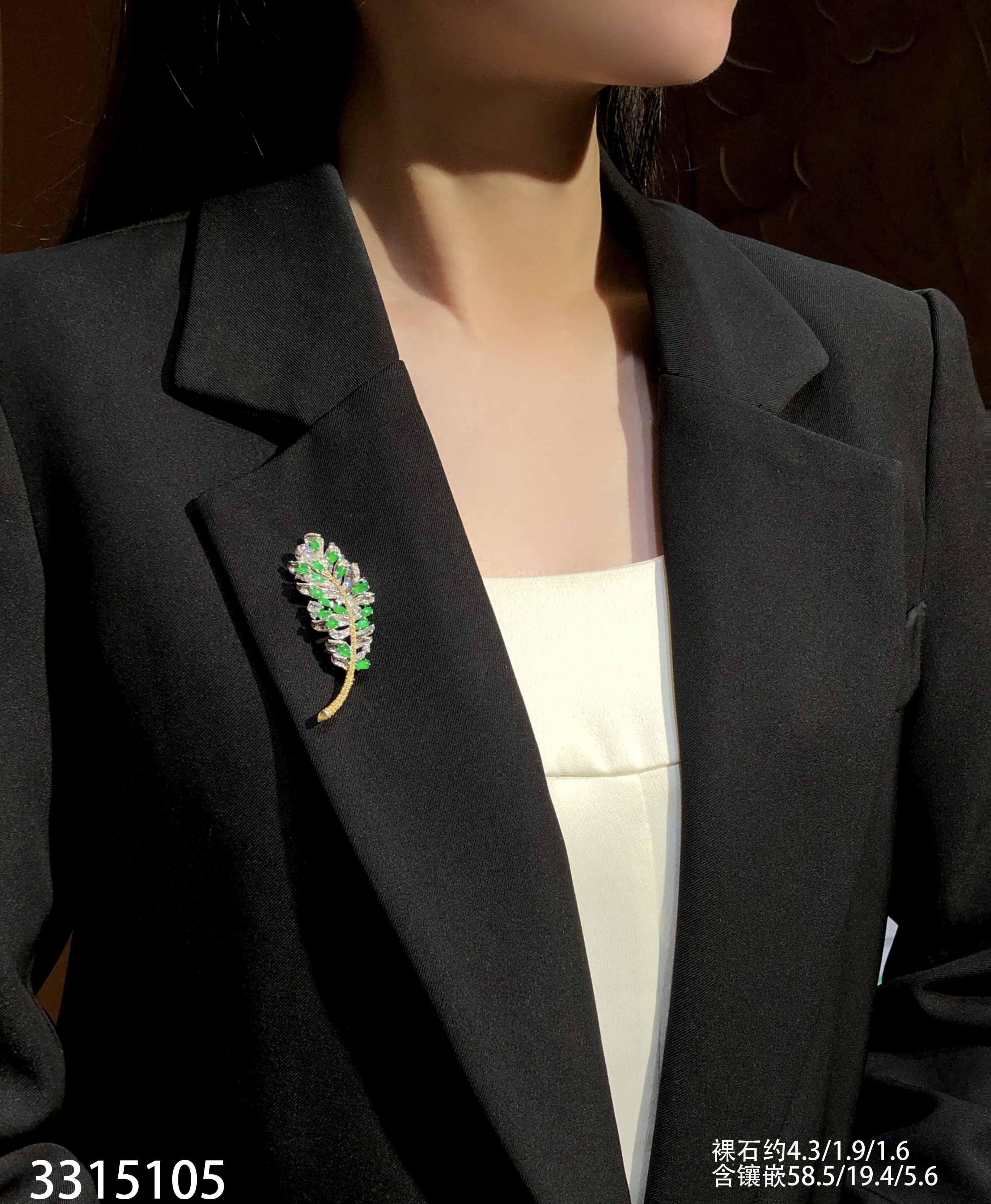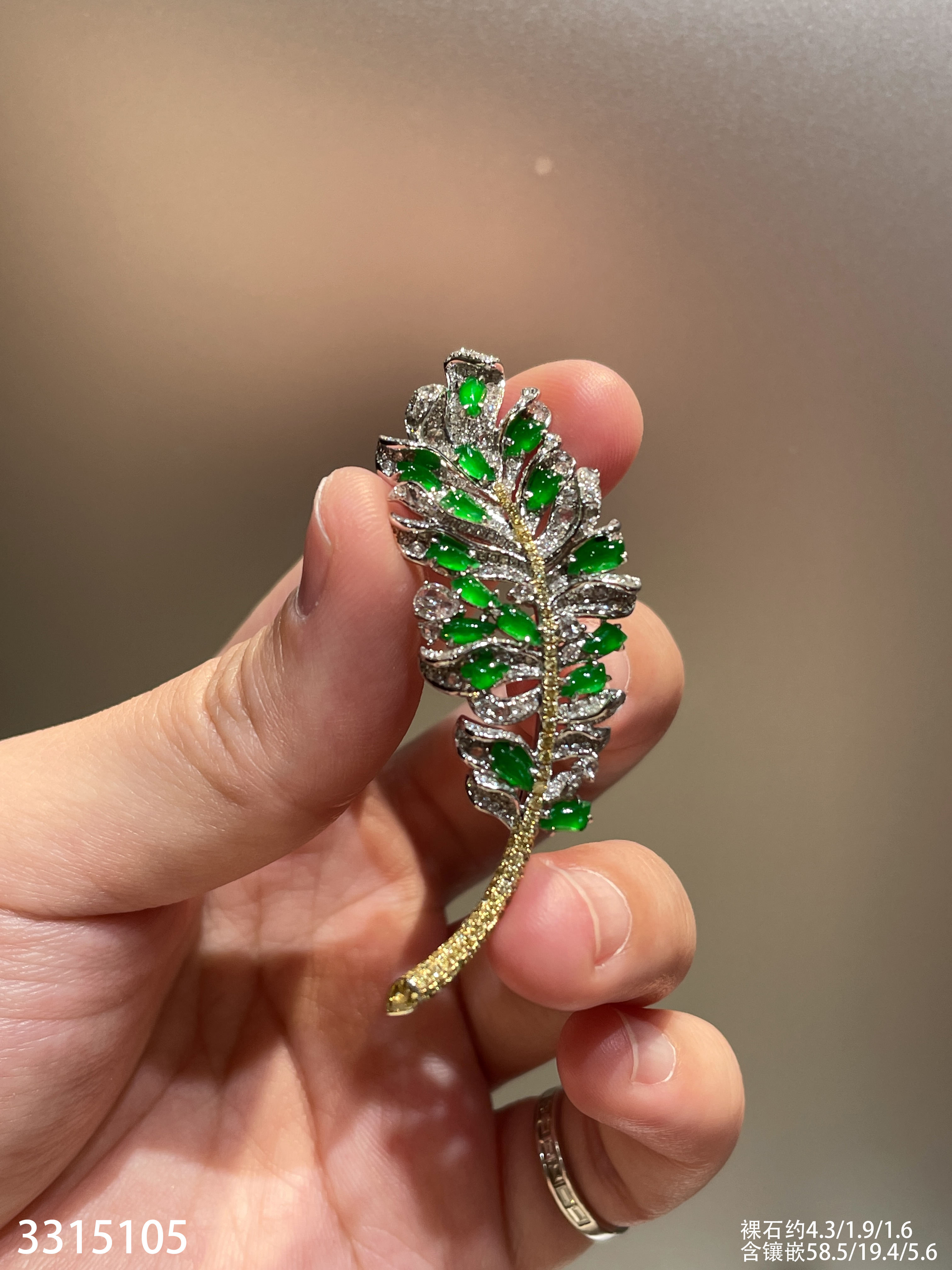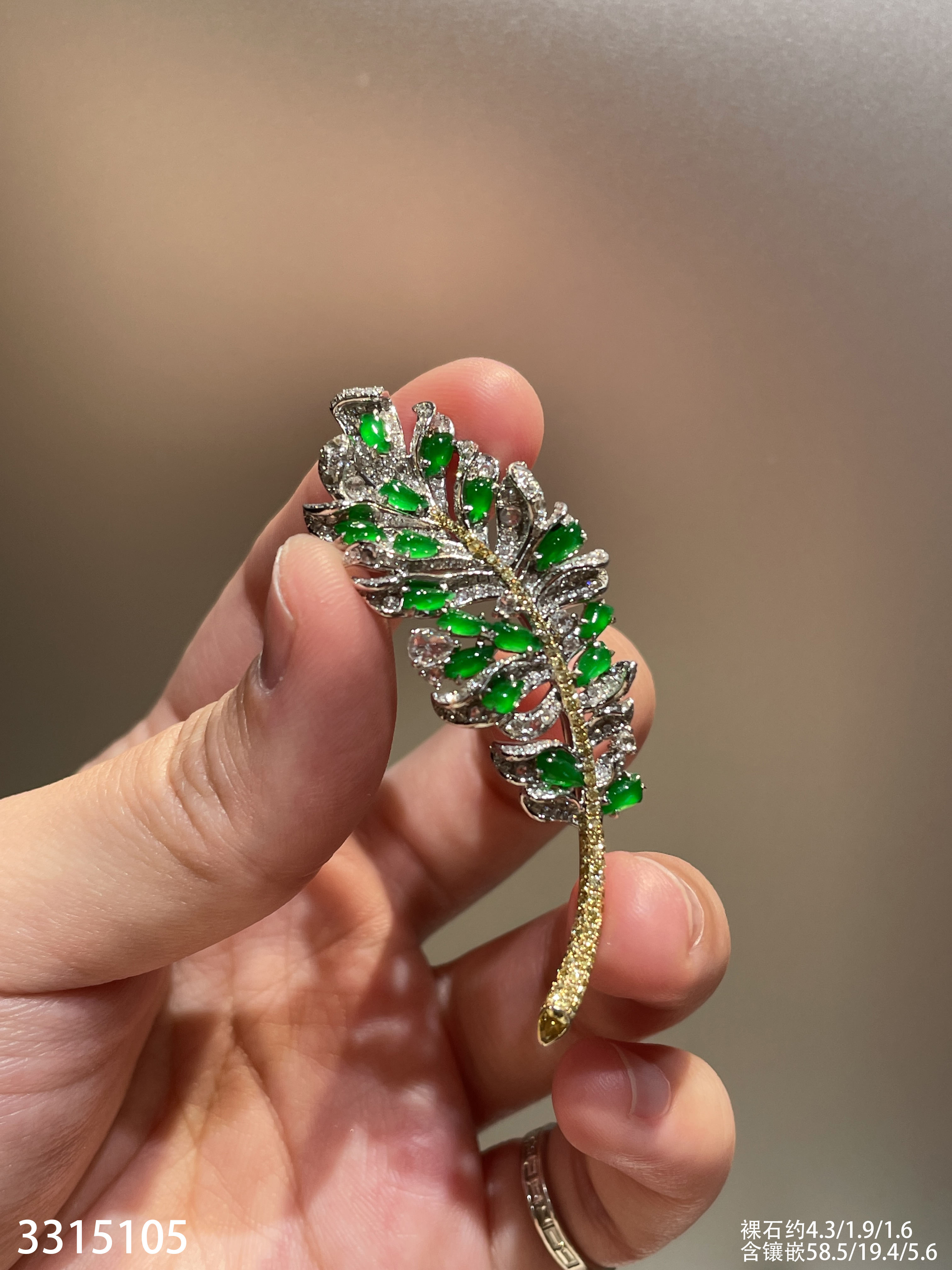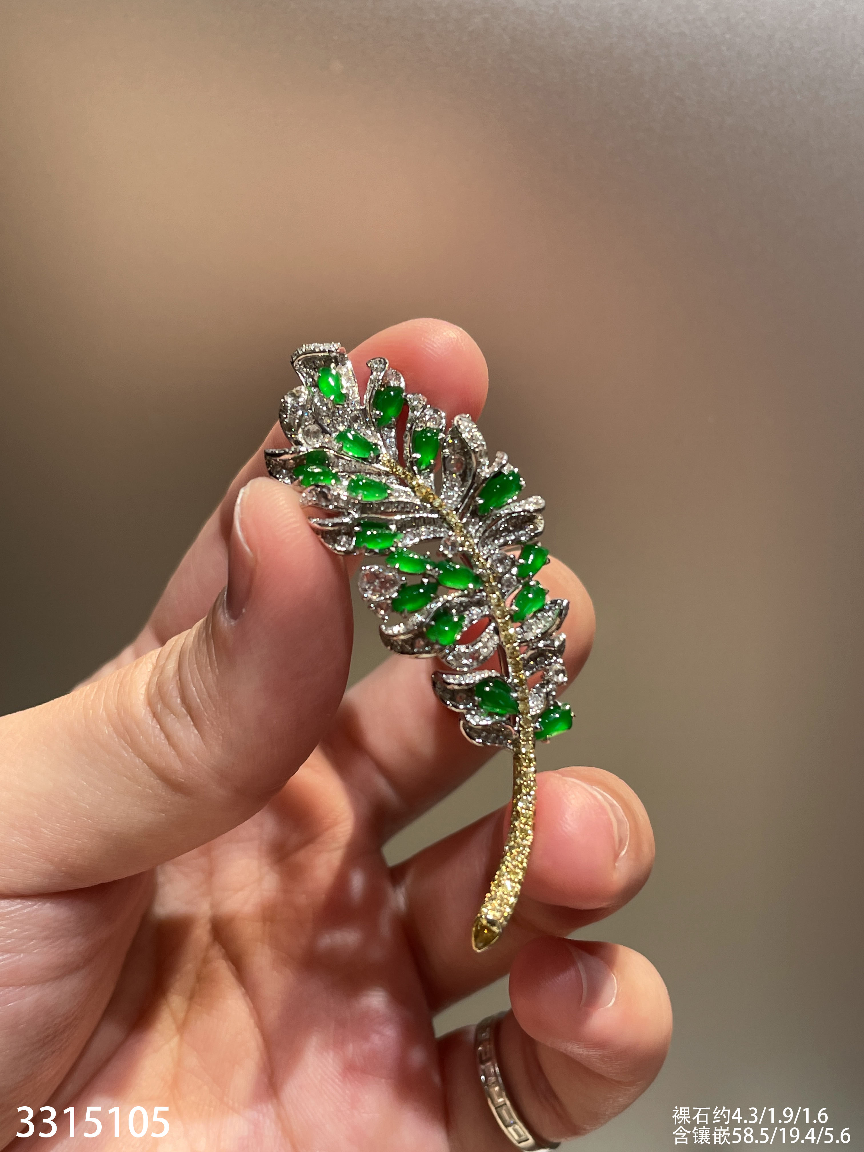 3315105,老坑玻璃帝王绿叶子胸针。具体价格微信咨询