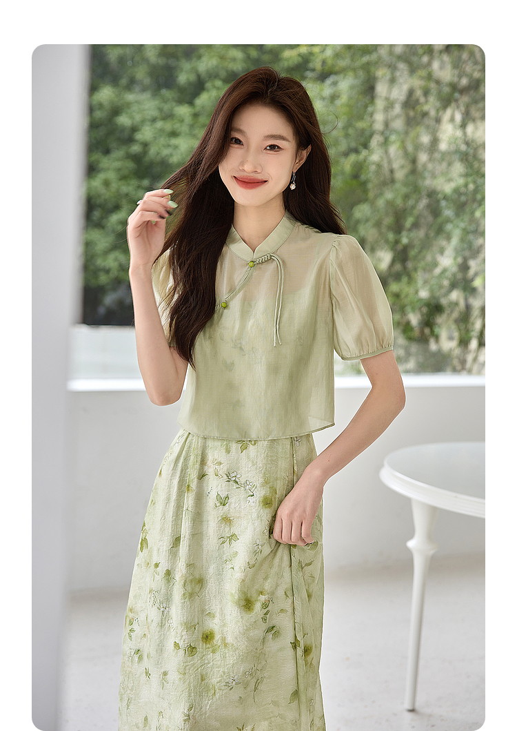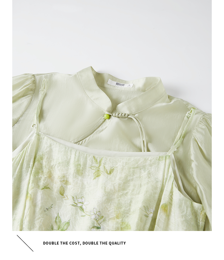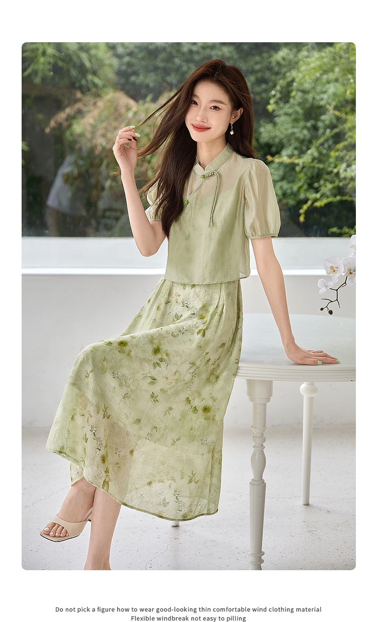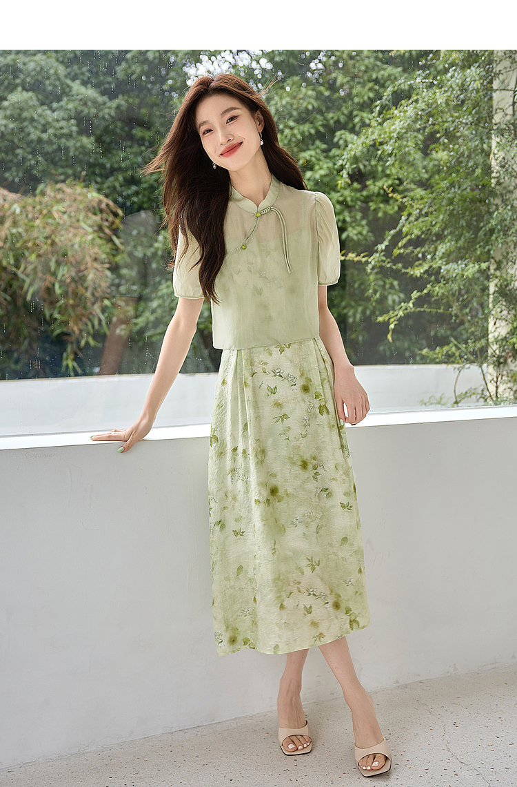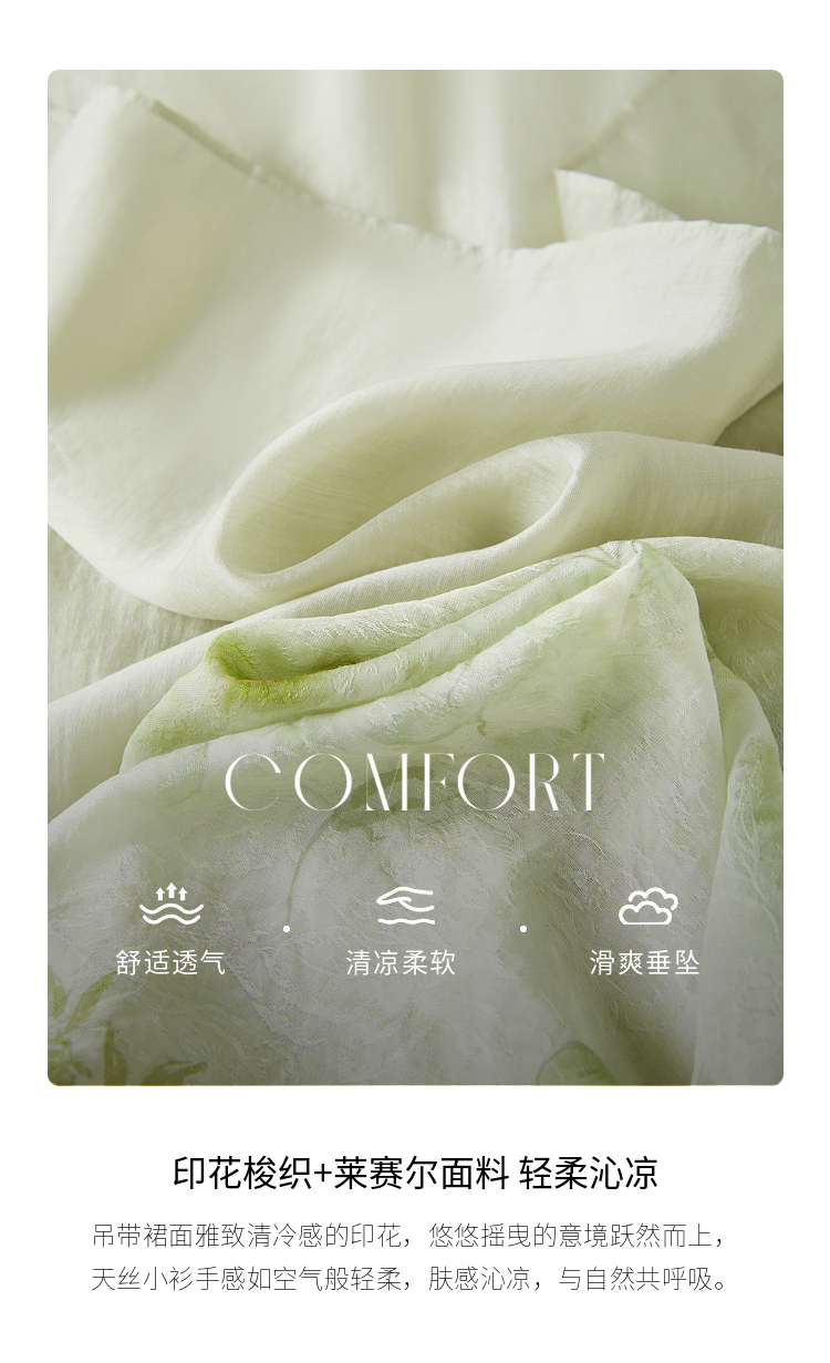 【专属特价】熙世界禅意新中式套装夏新款斜襟天丝上衣吊带连衣裙国风两件套