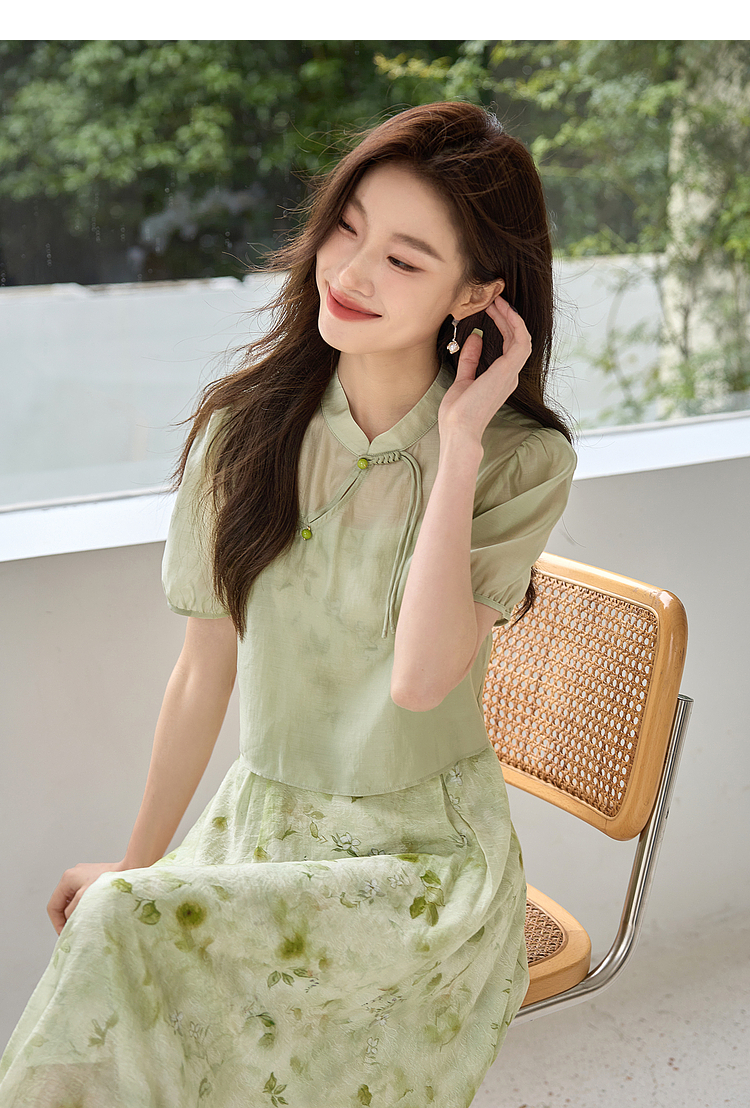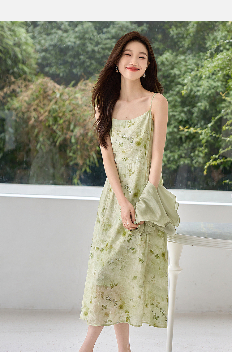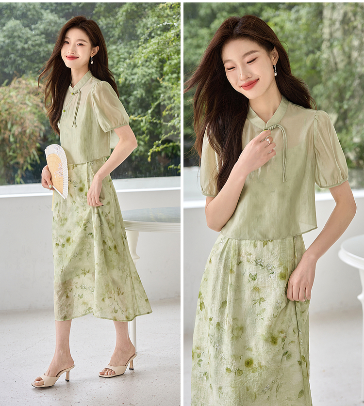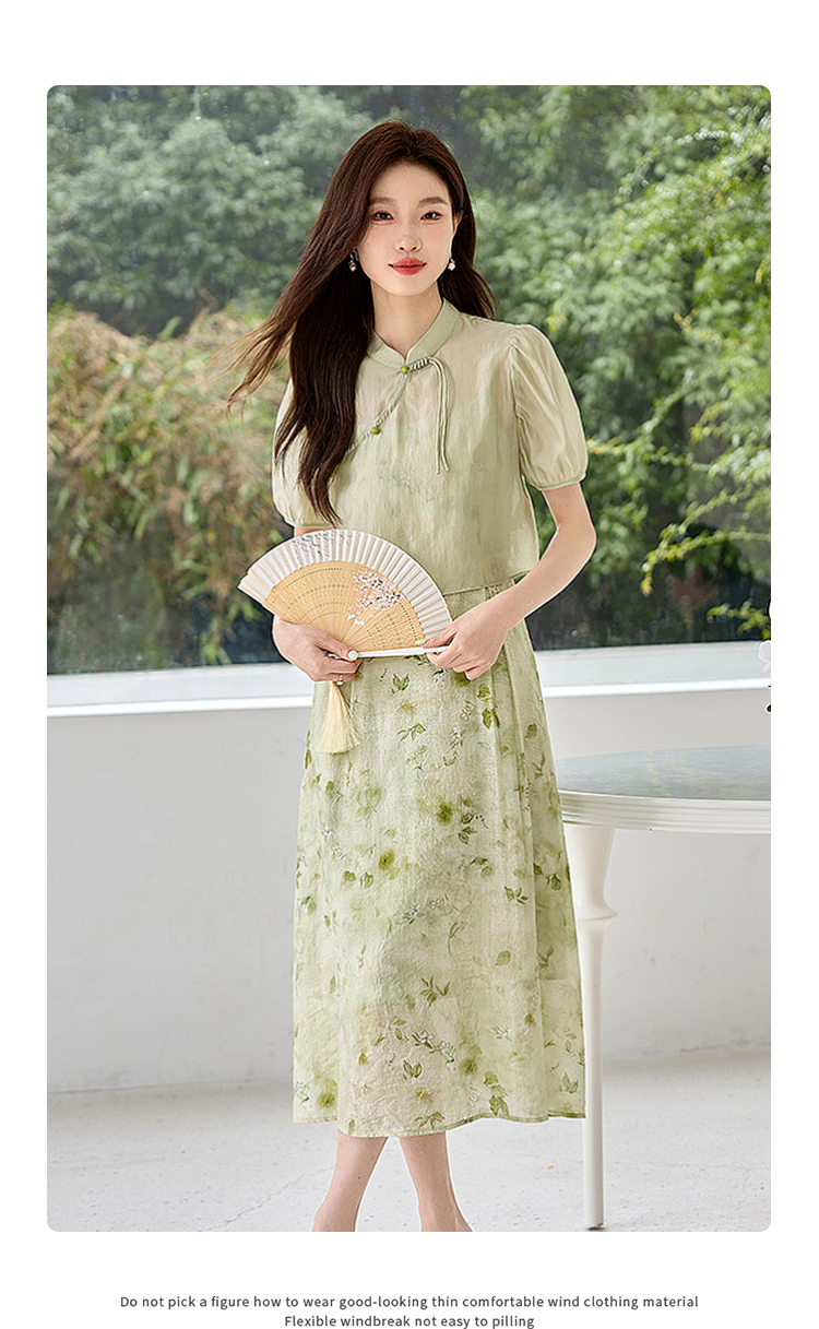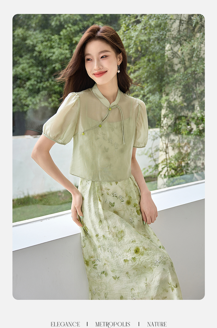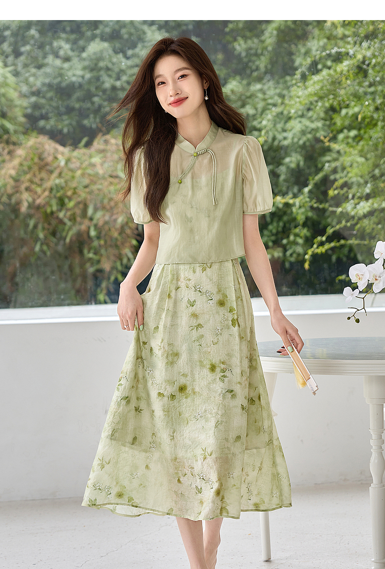 【专属特价】熙世界禅意新中式套装夏新款斜襟天丝上衣吊带连衣裙国风两件套