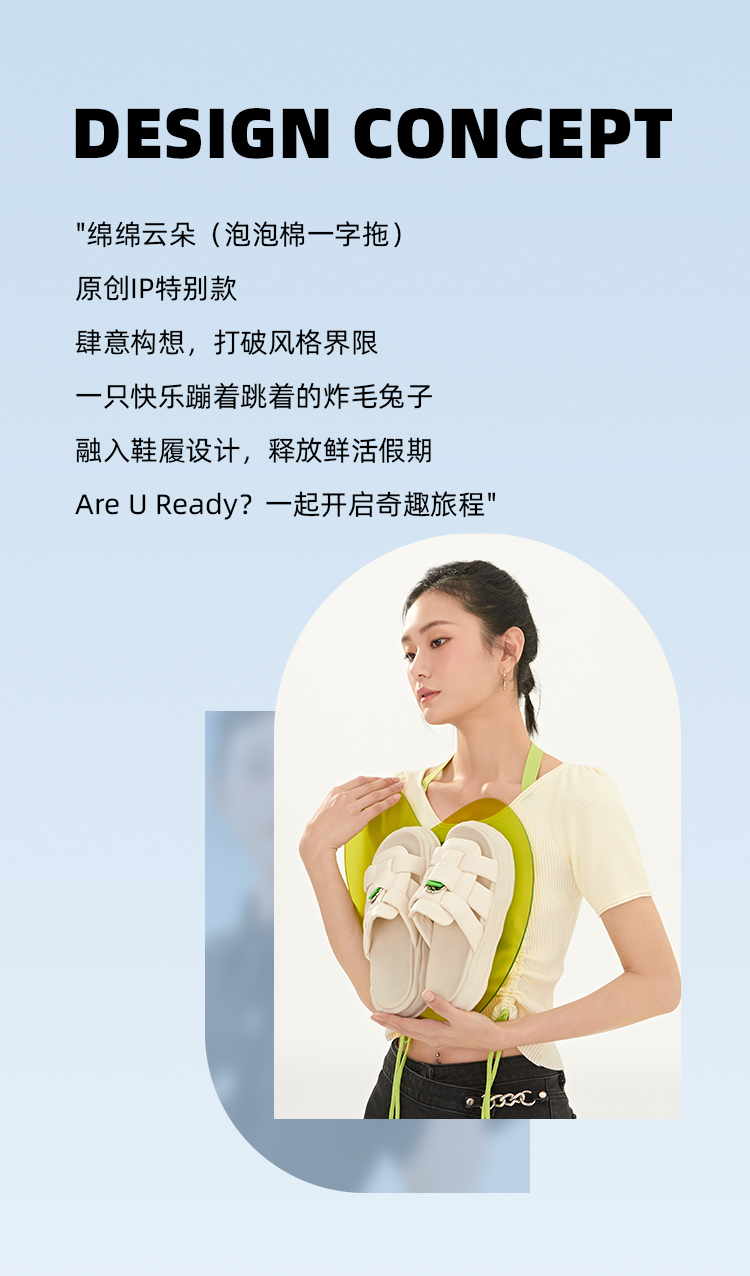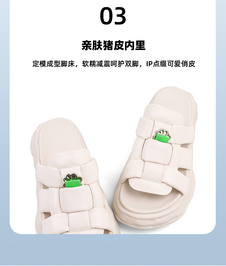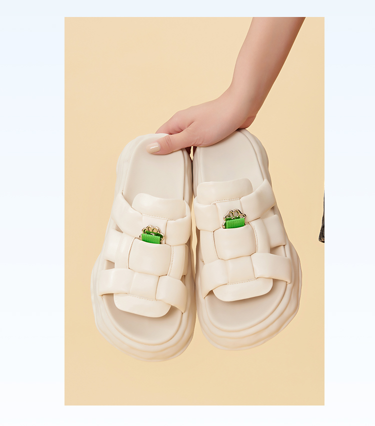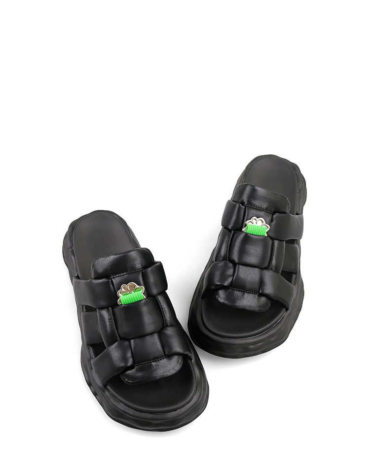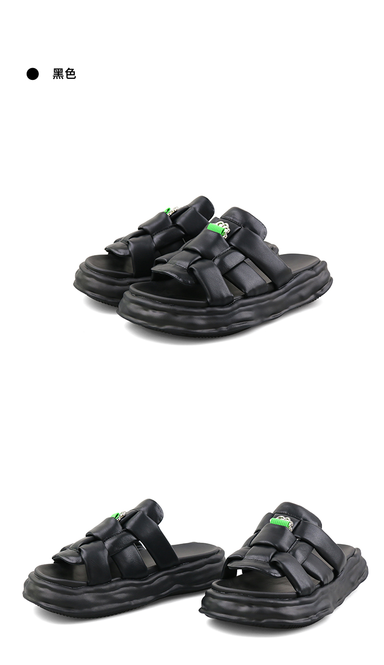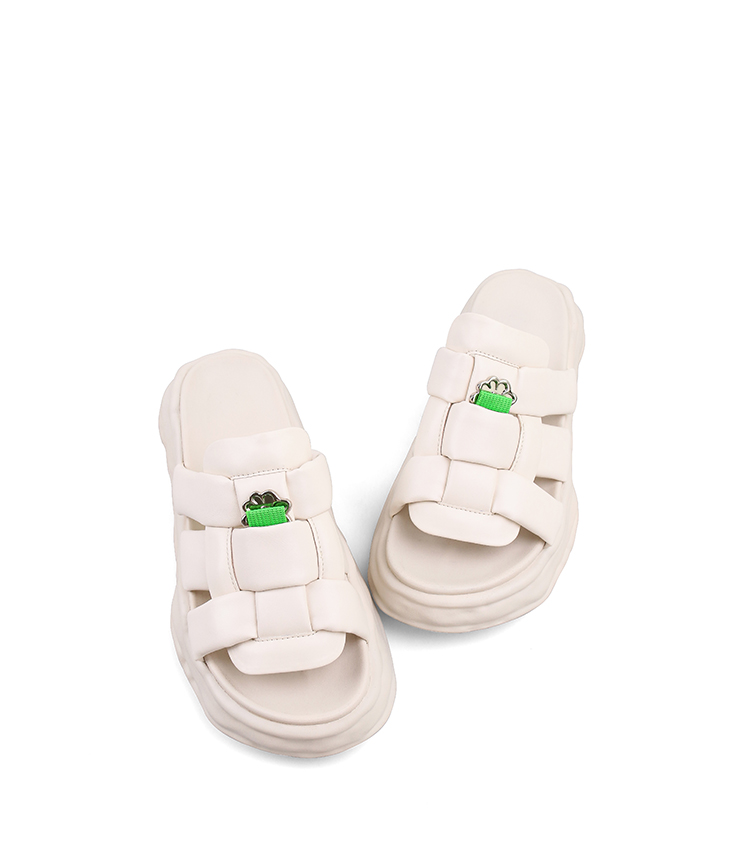 Safiya/索菲娅 2023夏季新品IP炸毛兔溶解底编织露趾休闲一字拖鞋SF32110019