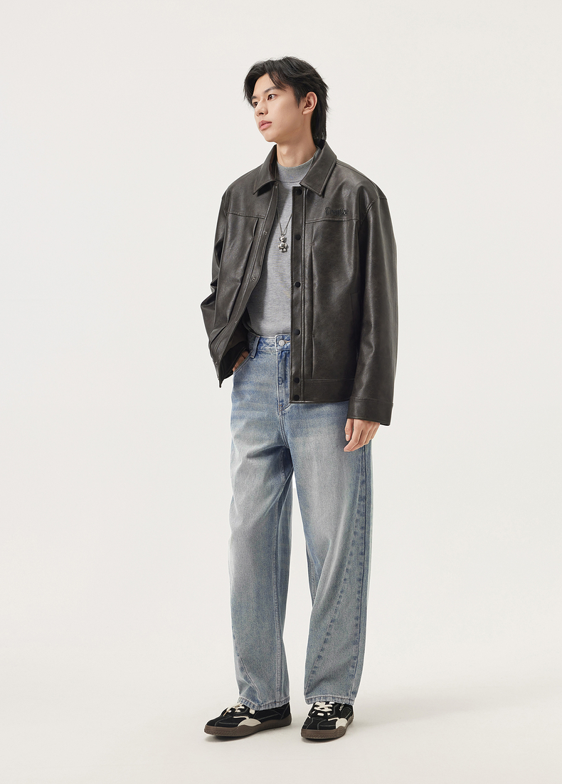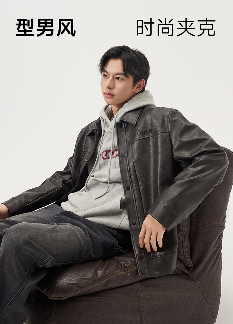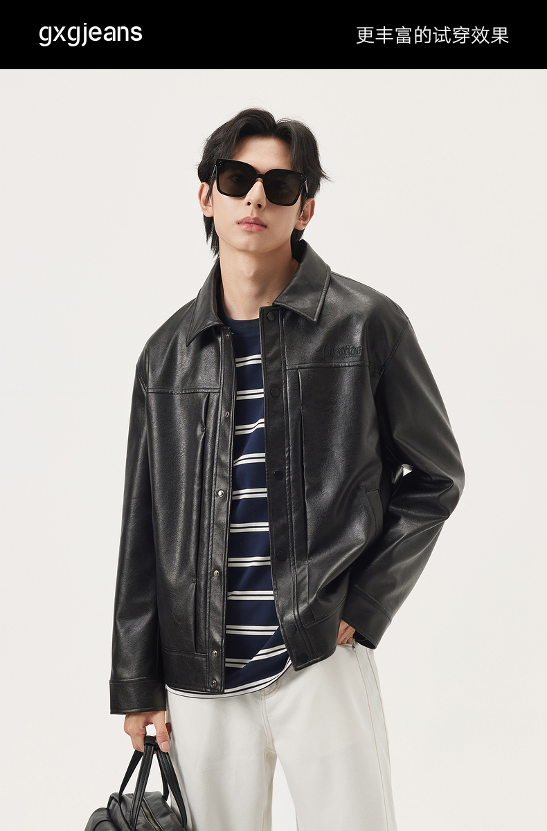 gxg.jeans男装 双色复古pu皮美式简约夹克外套男生 25秋热卖