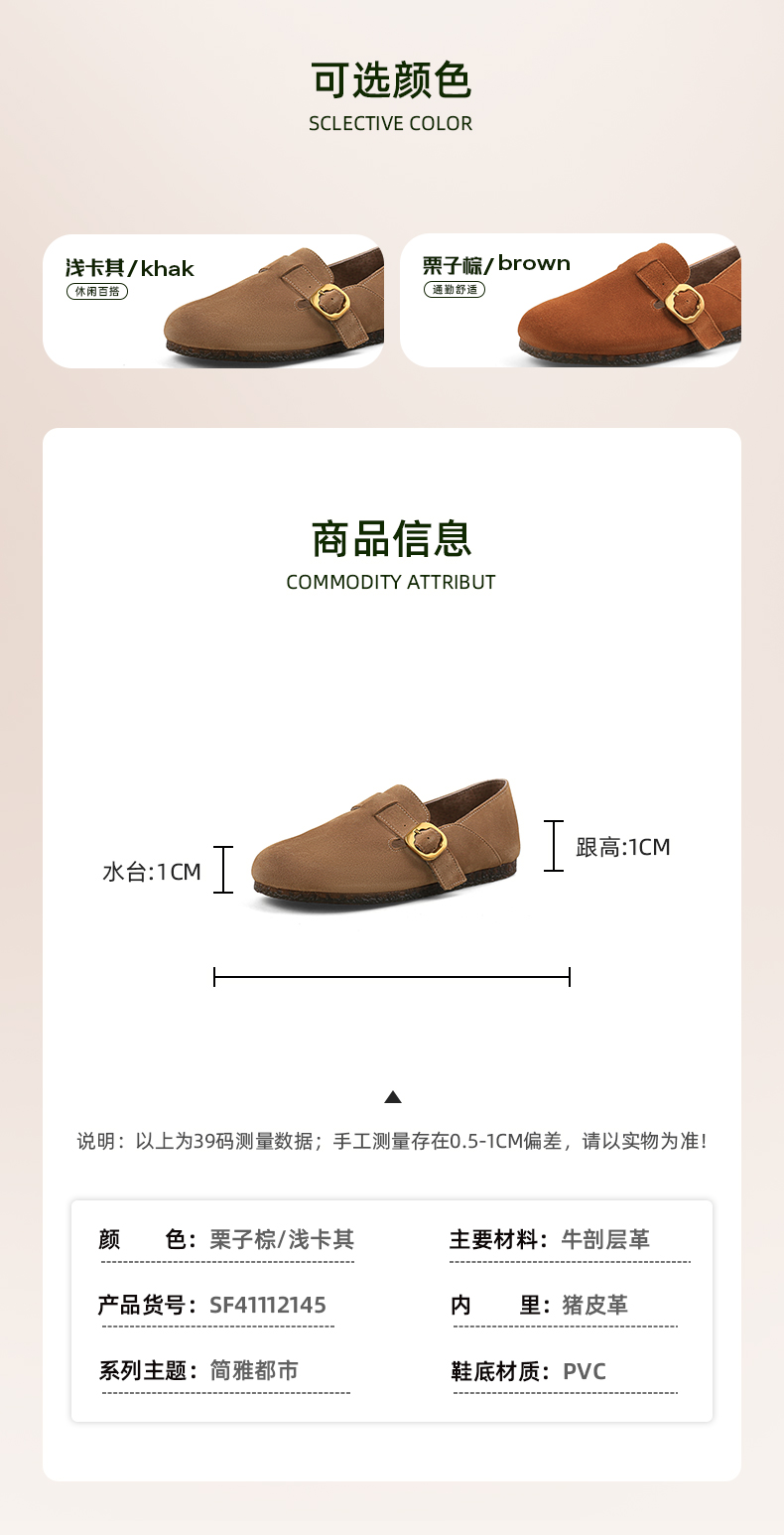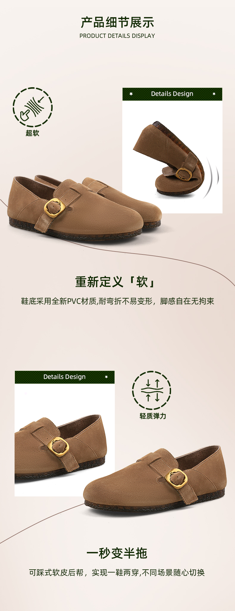 Safiya/索菲娅 2024春新款复古勃肯鞋一脚蹬两穿软底单鞋 SF41112145