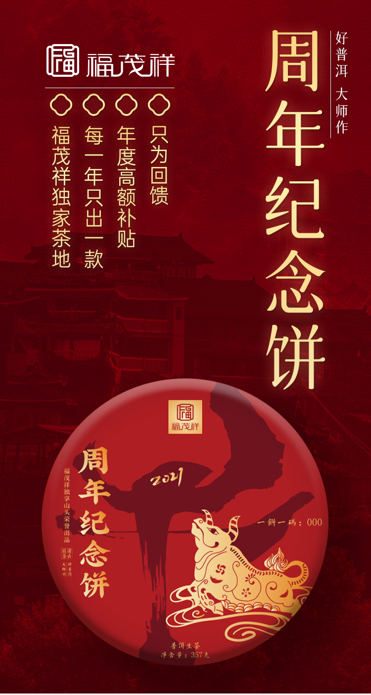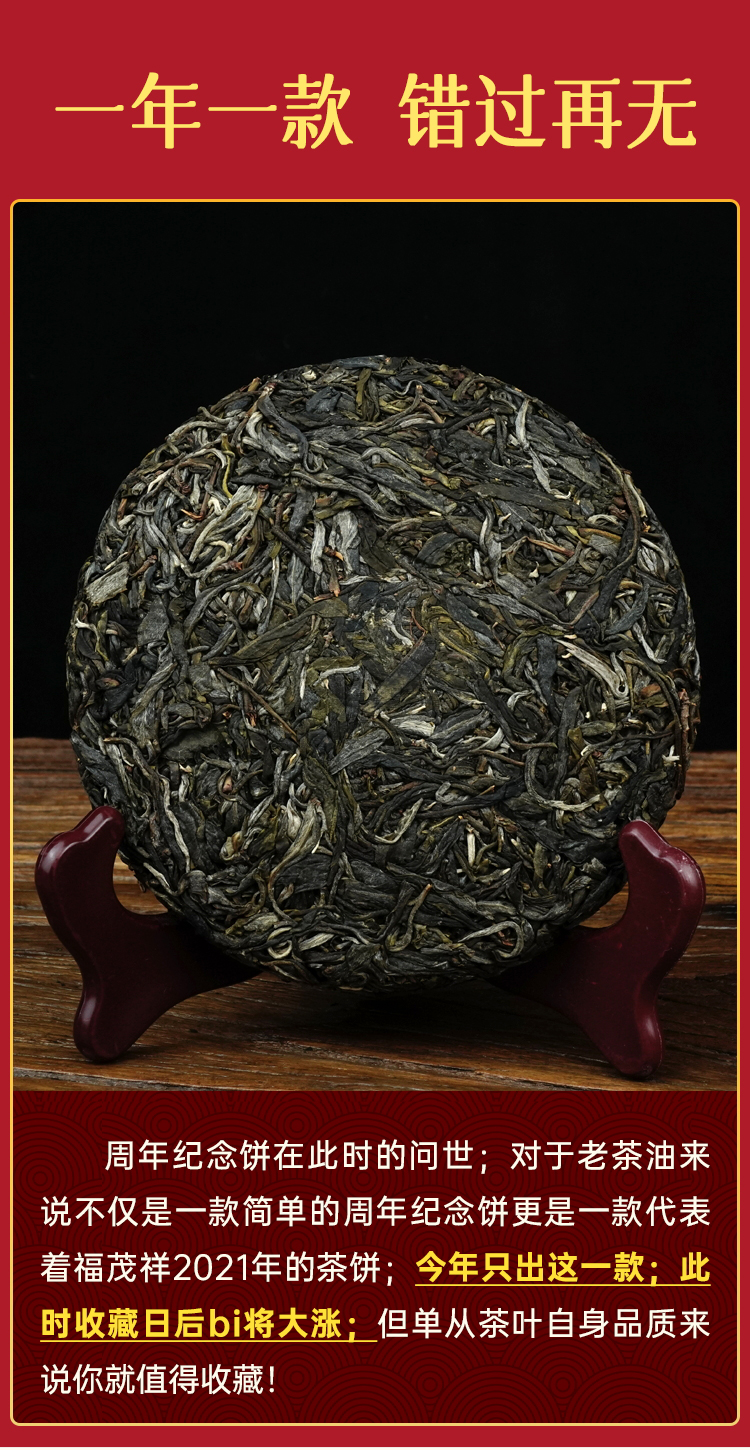【周年纪念饼】2021年福茂祥云南临沧独享茶地普洱生茶茶饼357g*5饼
