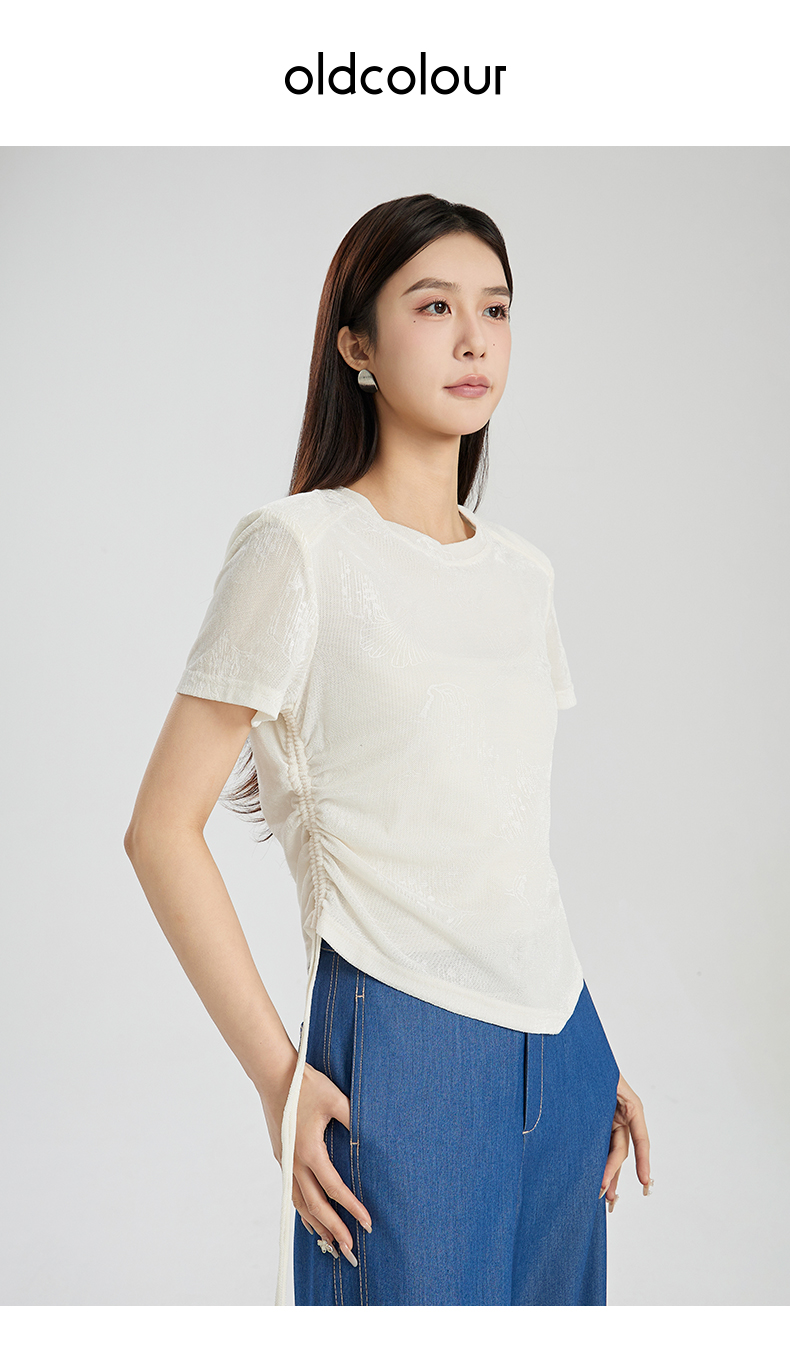 oldcolour夏季新款纯色简约百搭通勤休闲短袖套头上衣女Q280107A1