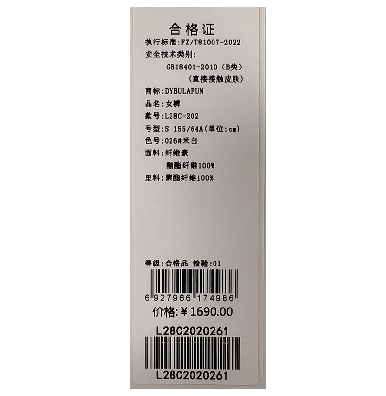 戴布拉芬长裤L28C202