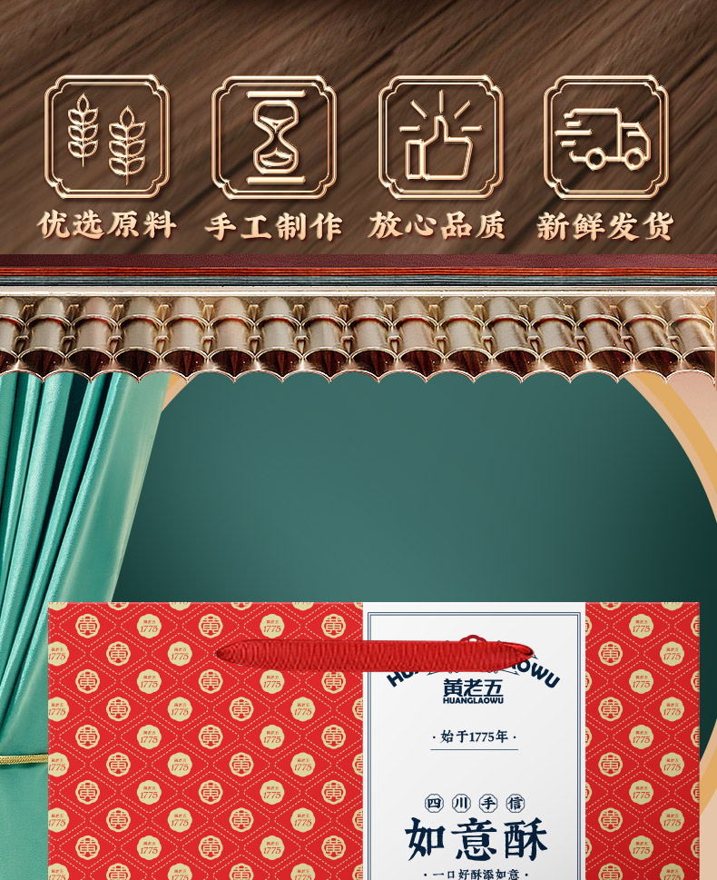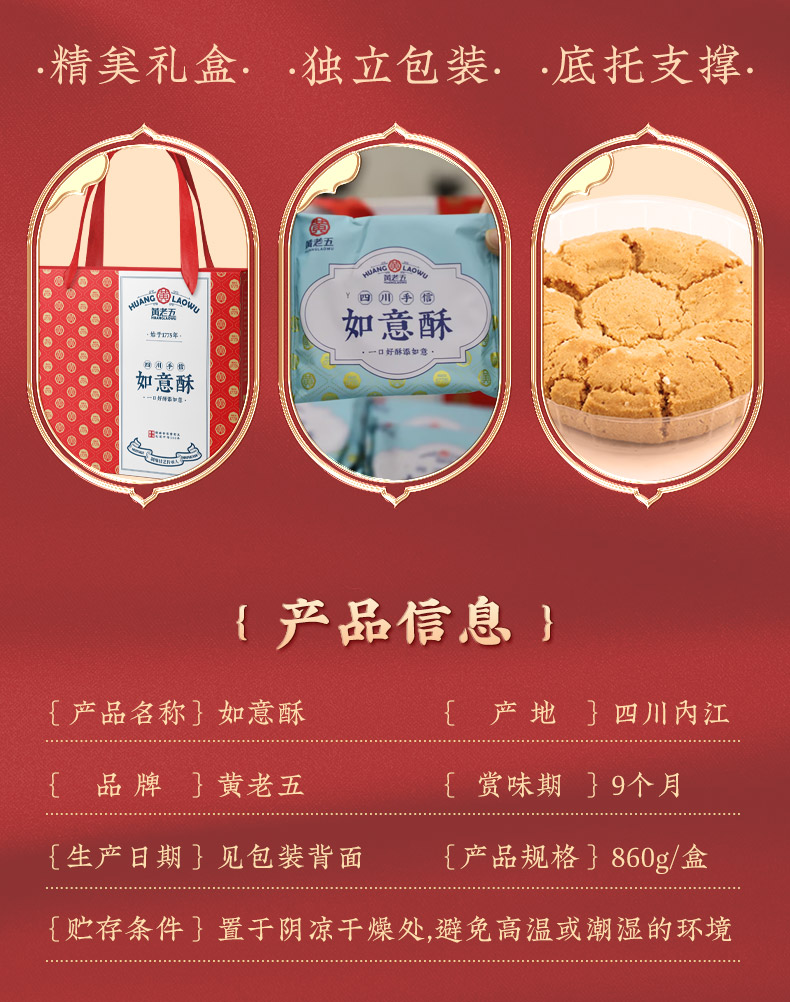 【黄老五如意酥】中秋送礼礼盒,半糖桃酥,蓬松酥脆,甜而不腻,满口留香,老少皆宜,860g/箱