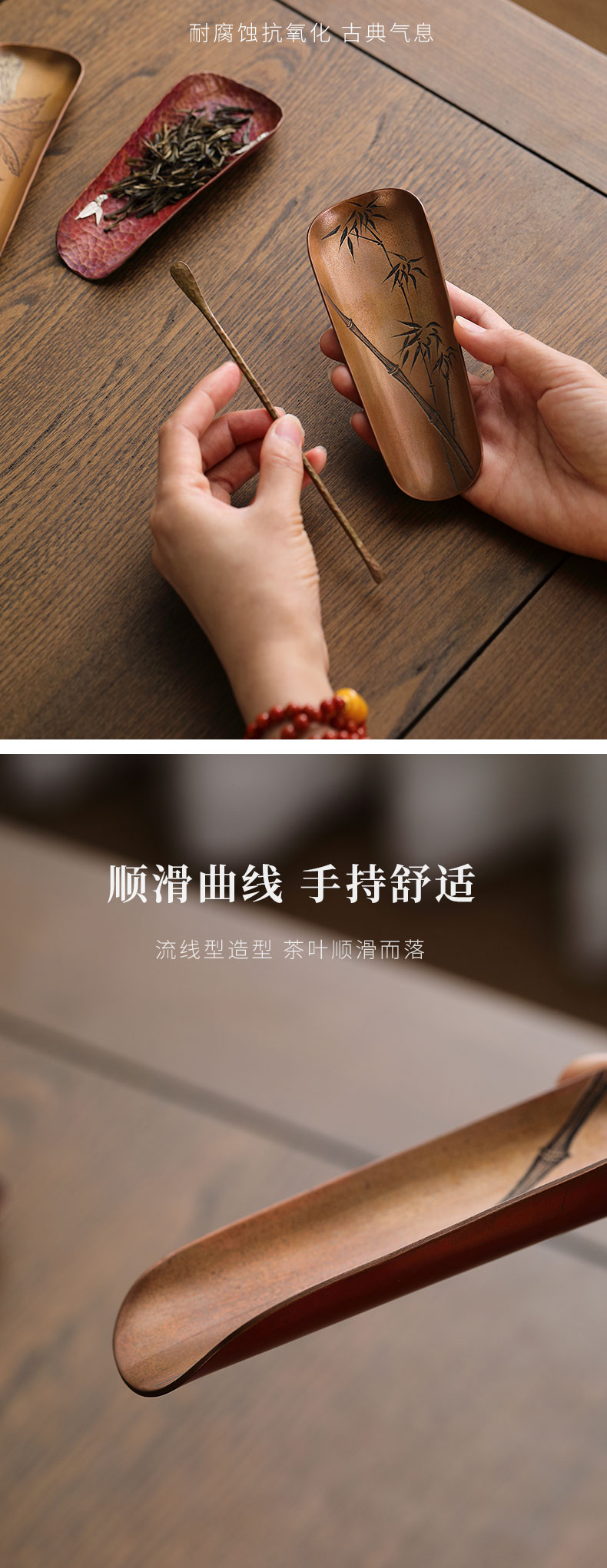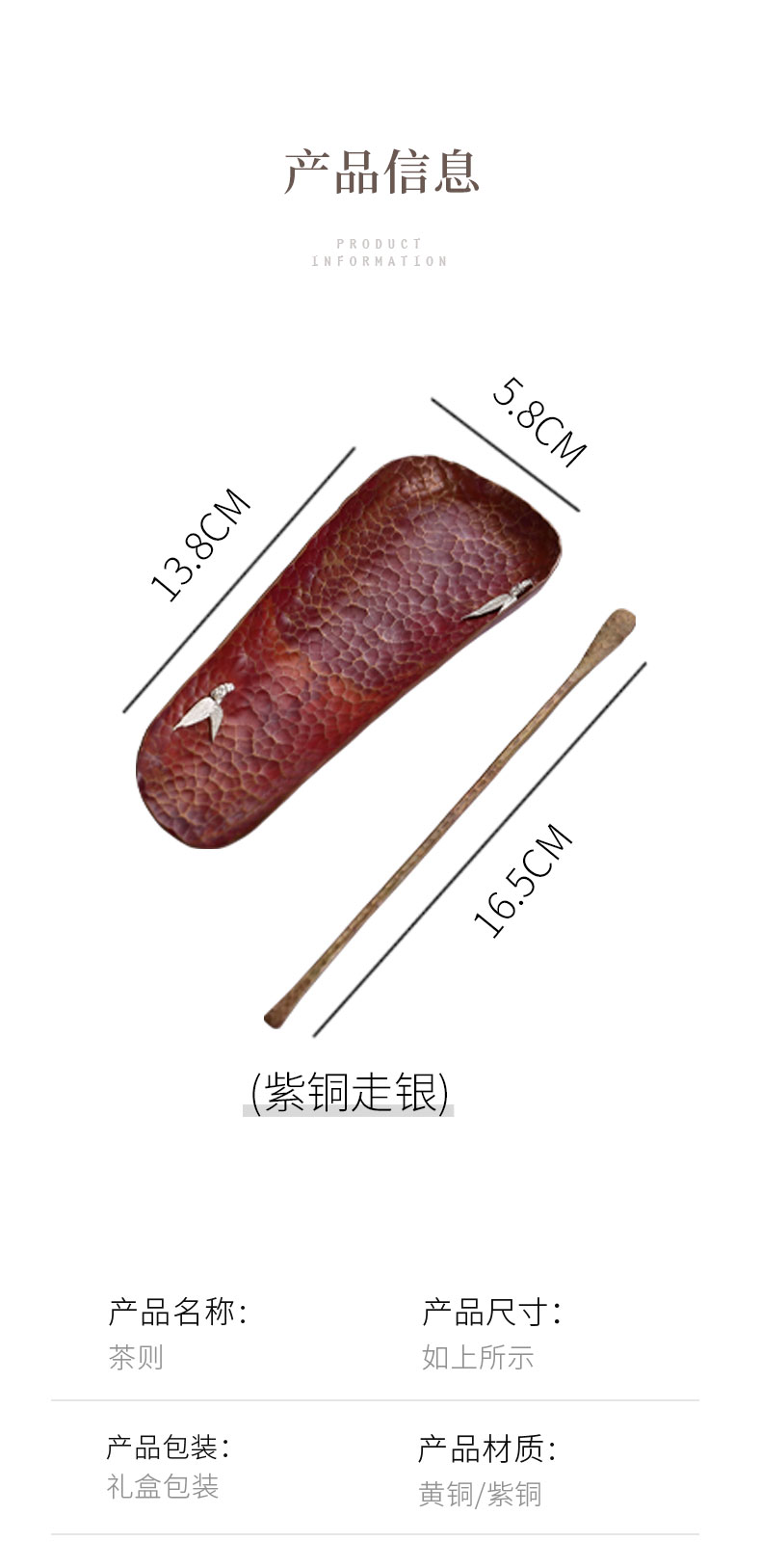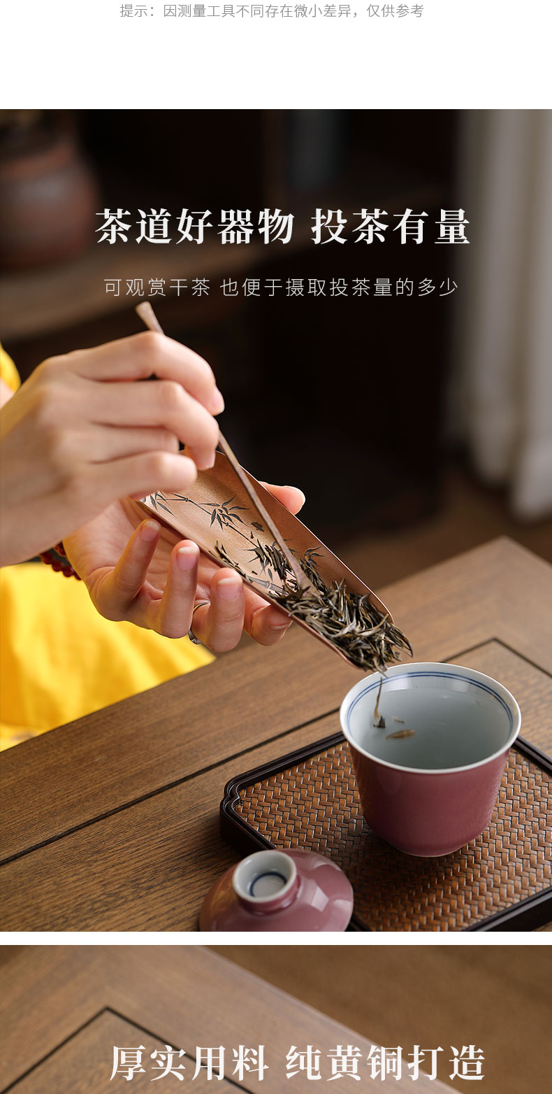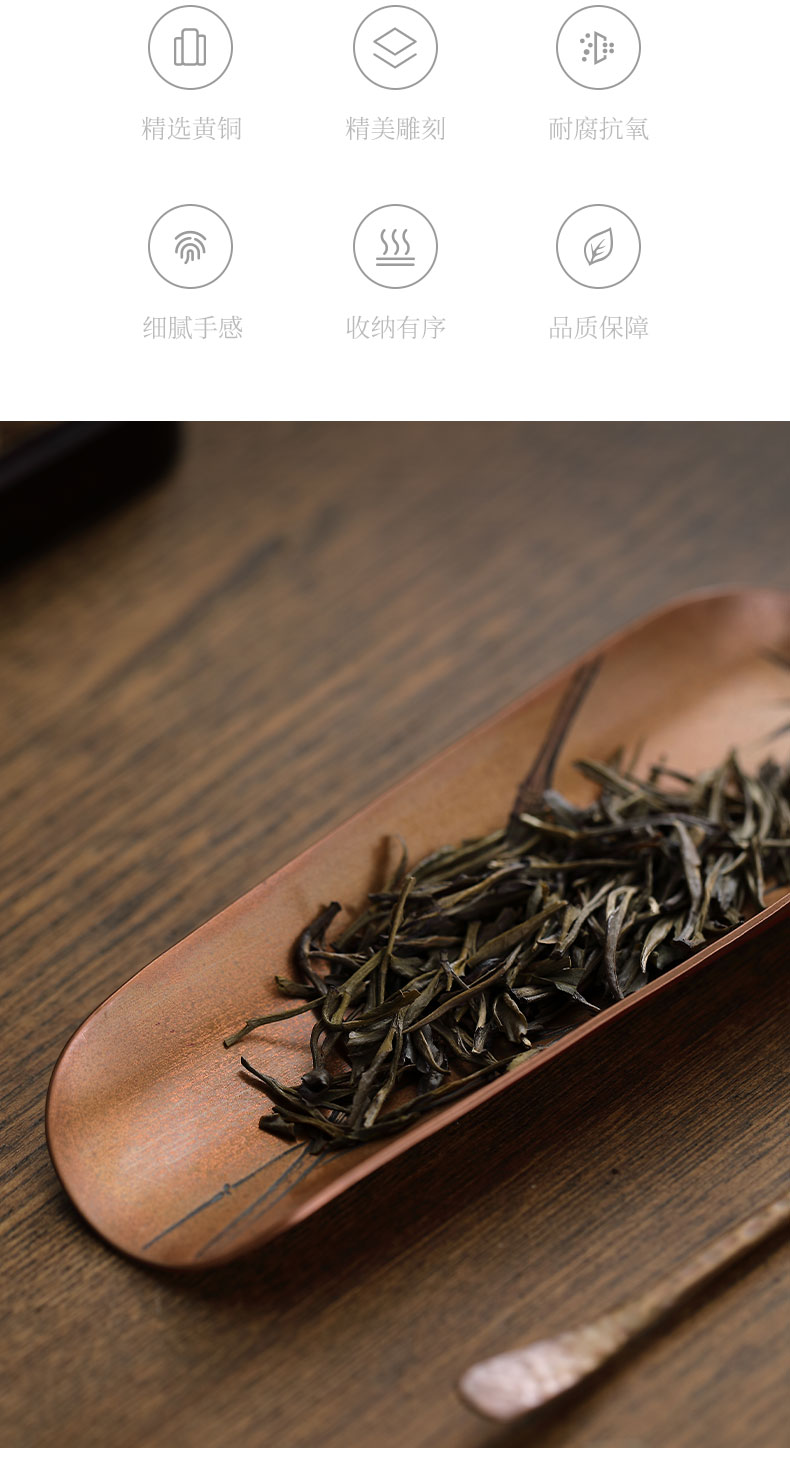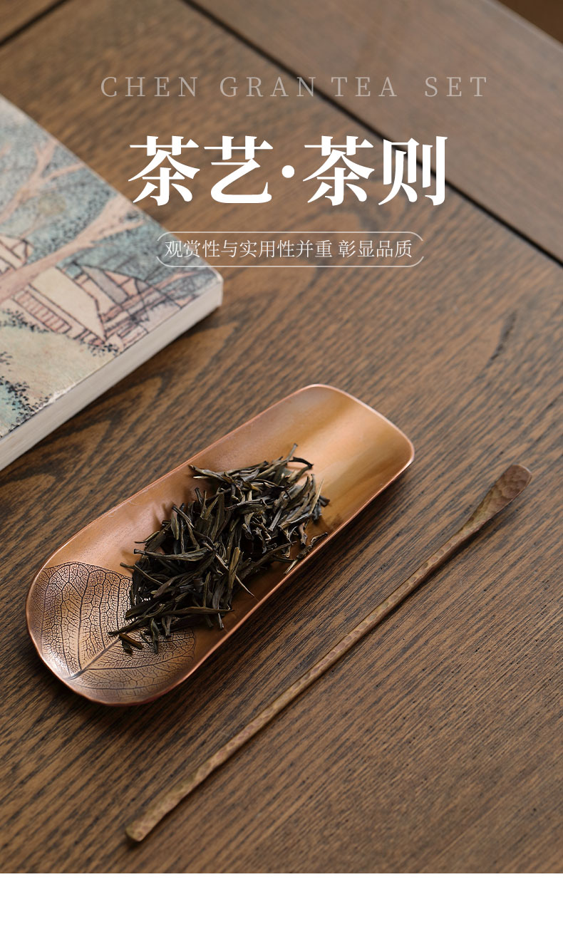 纯铜手工茶则 二件套茶铲茶勺茶拨赏茶器套组醒茶配件茶具