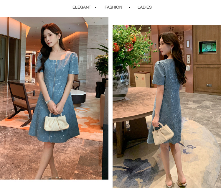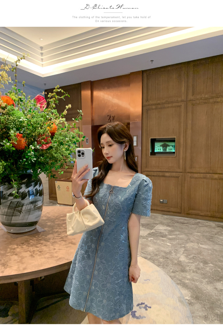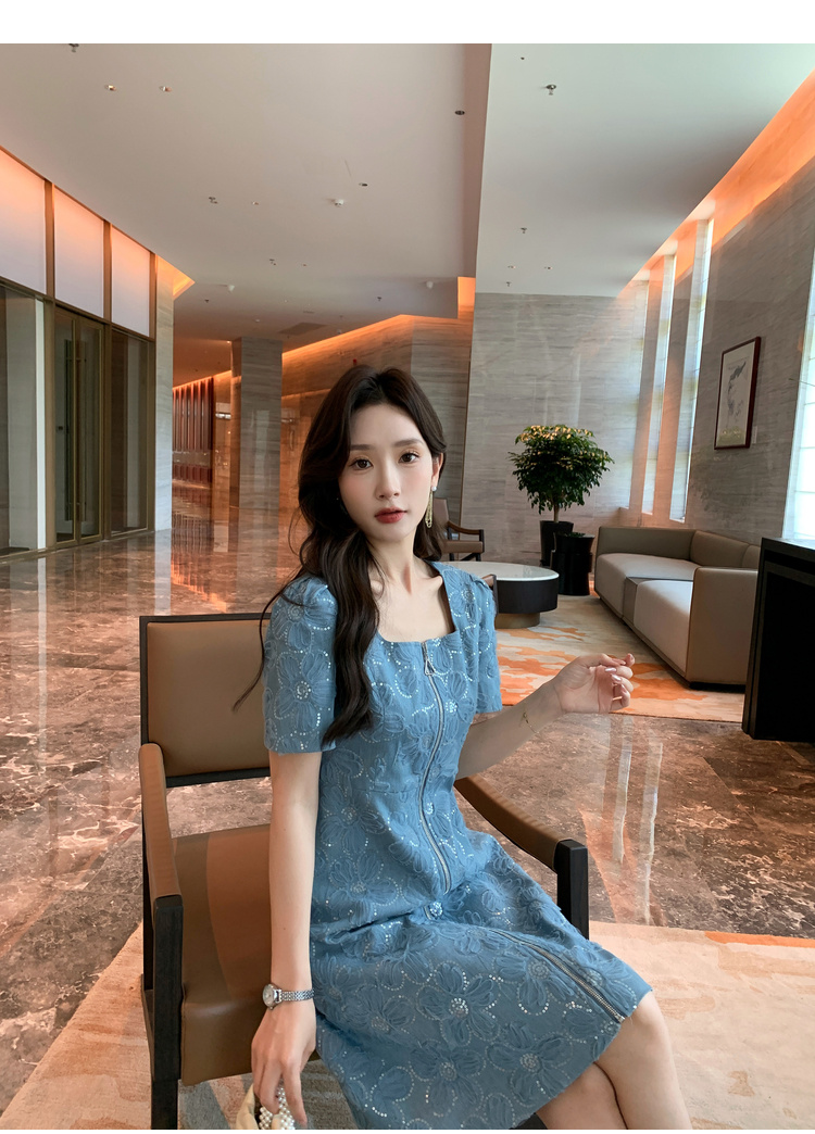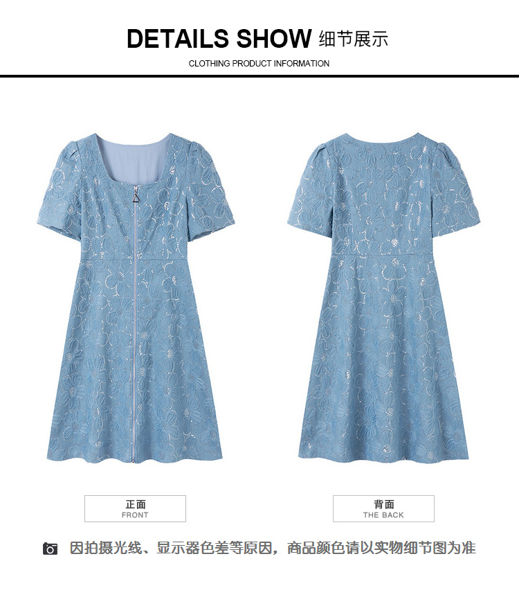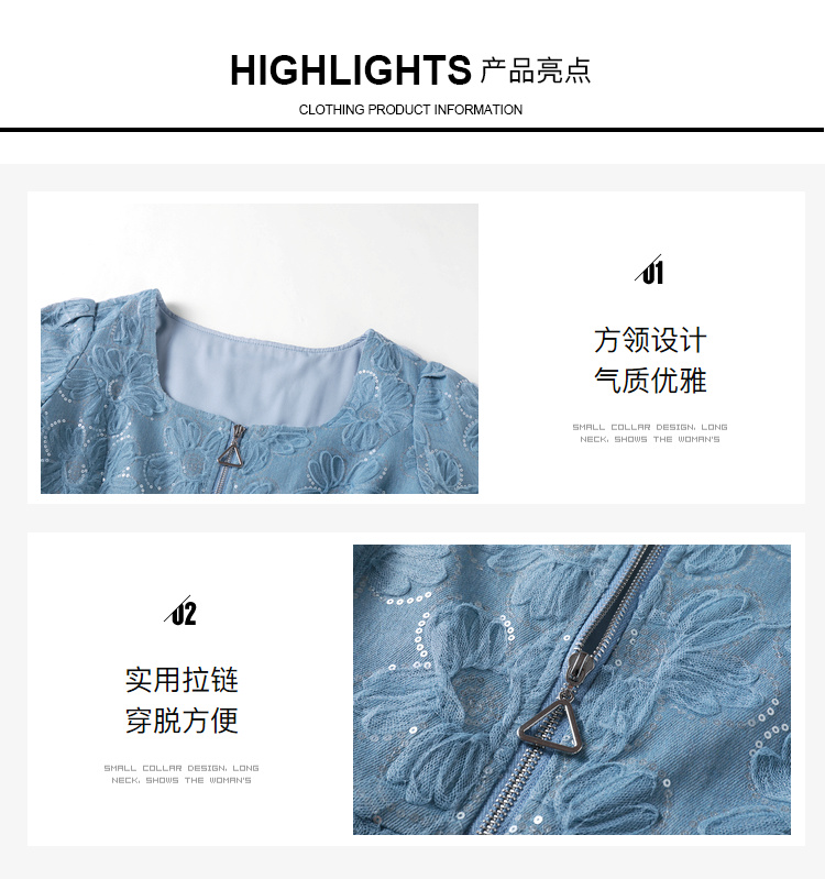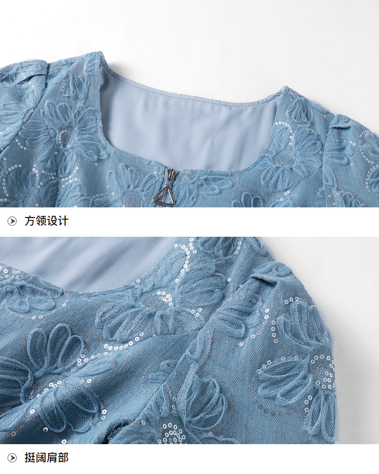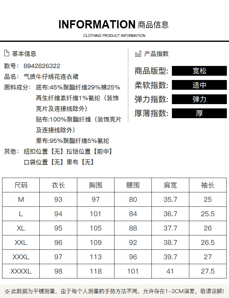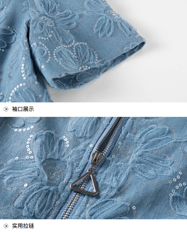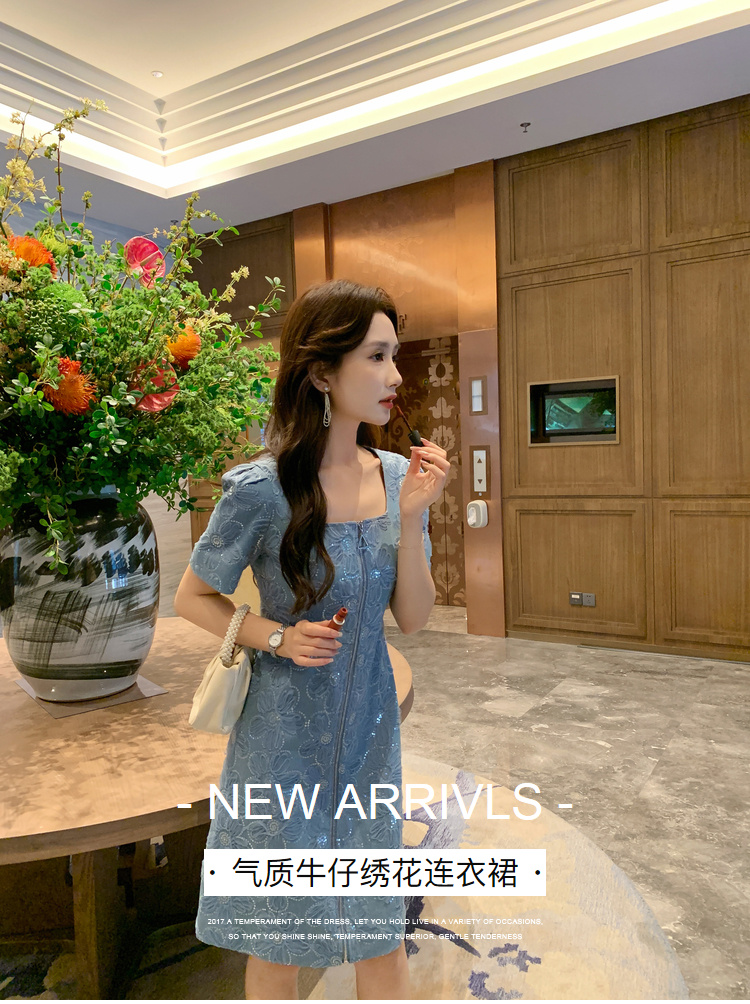 [奢姿轻奢系列]夏季大码女装气质名媛风裙子胖妹妹牛仔绣花连衣裙8942826322