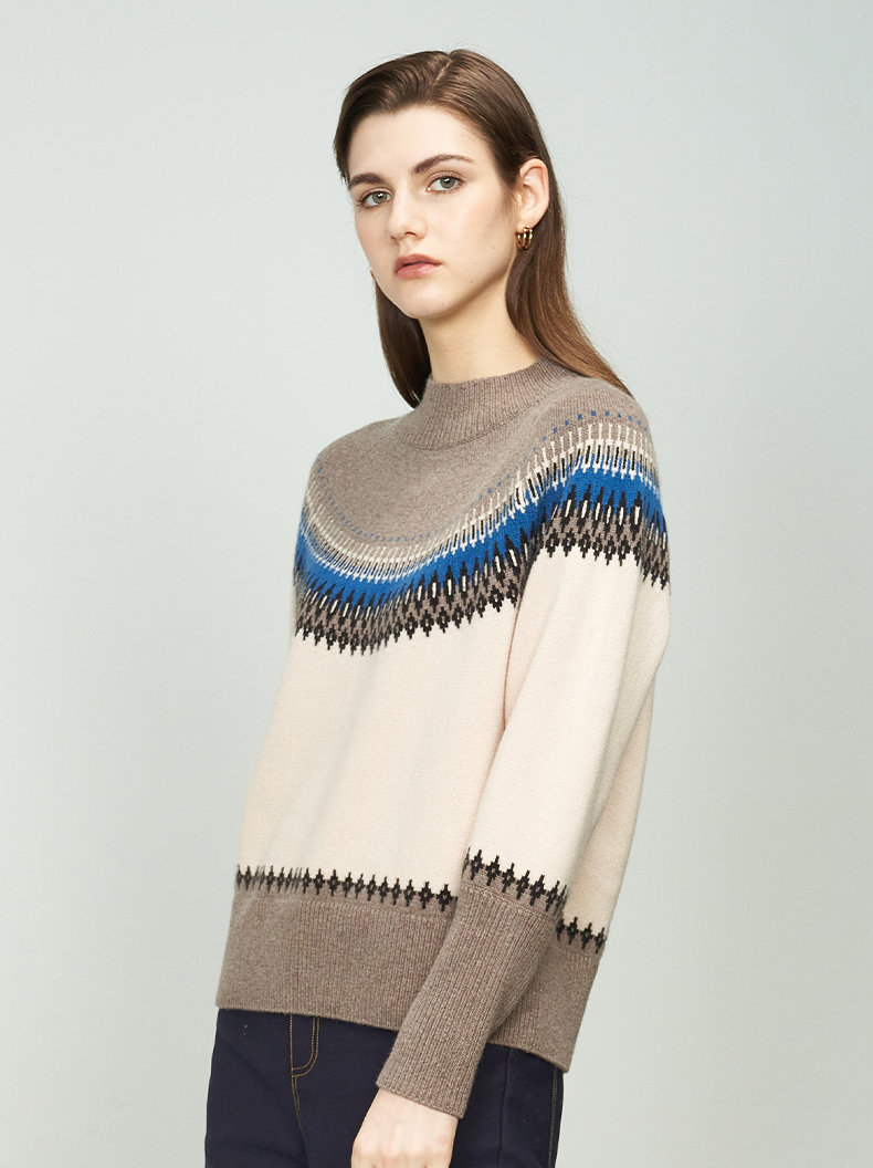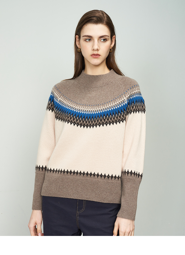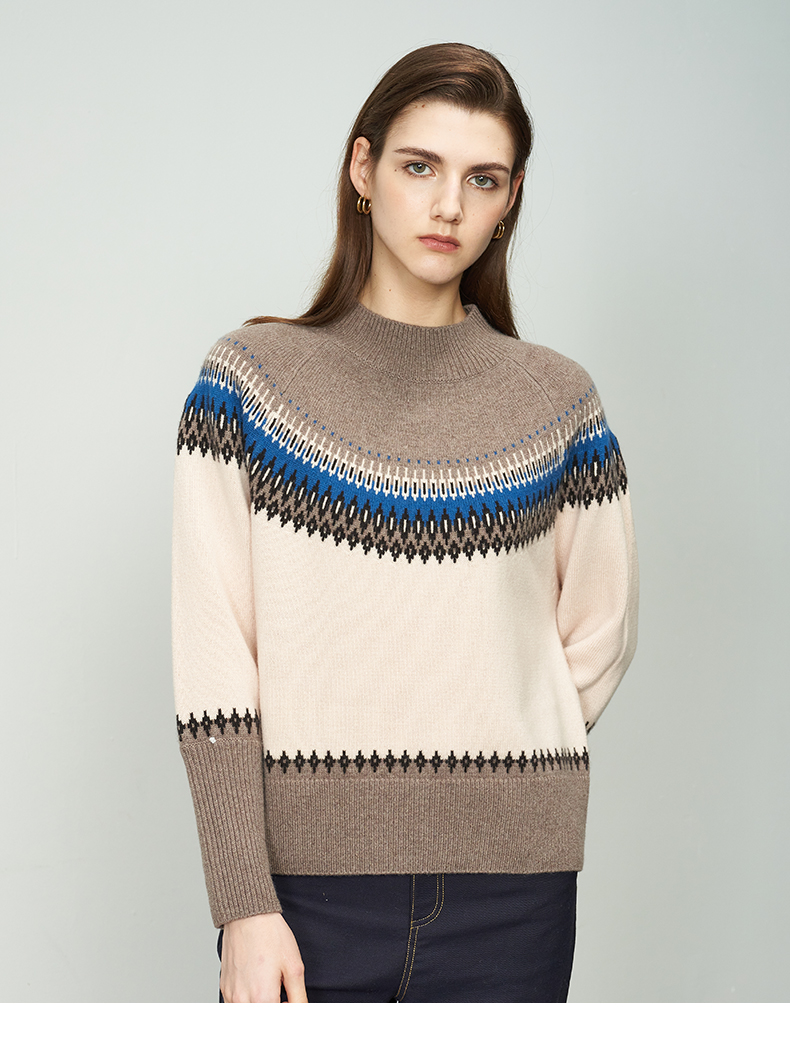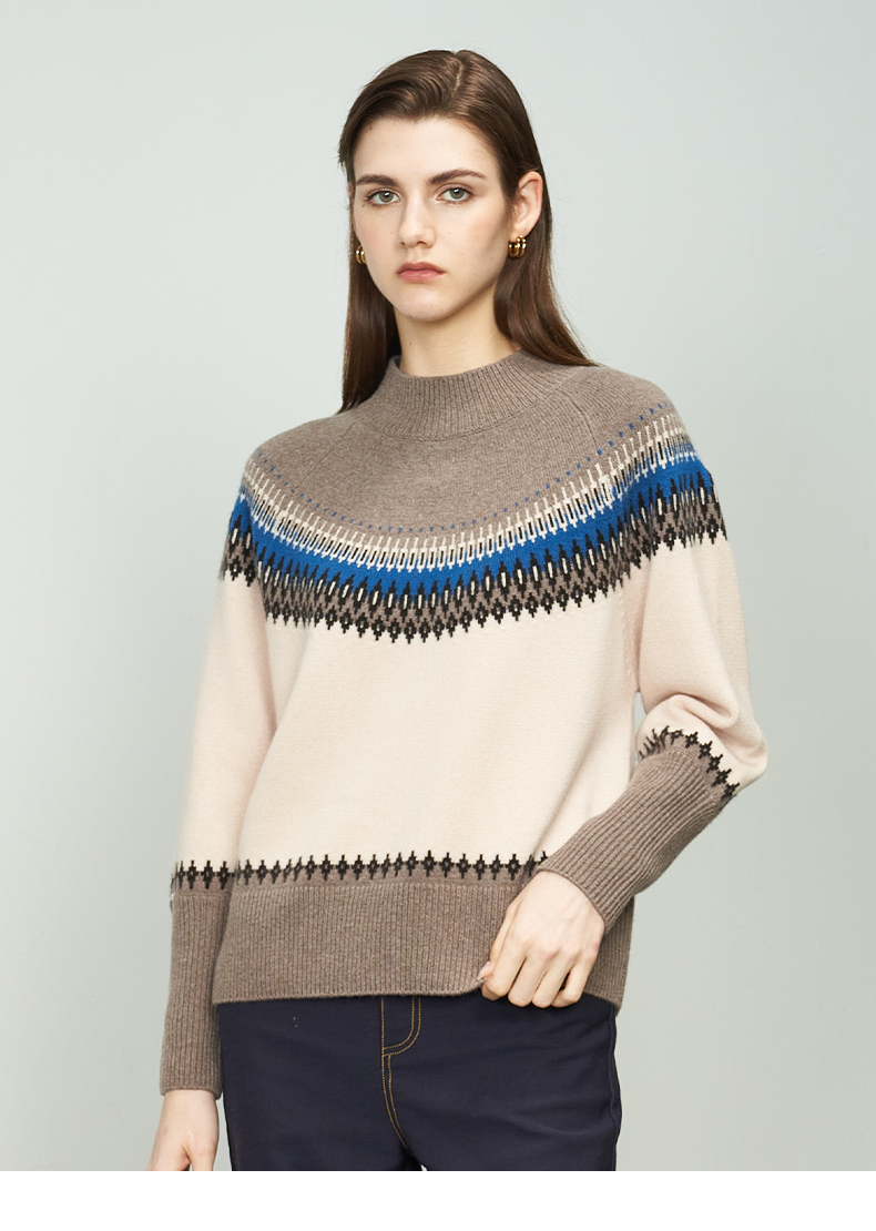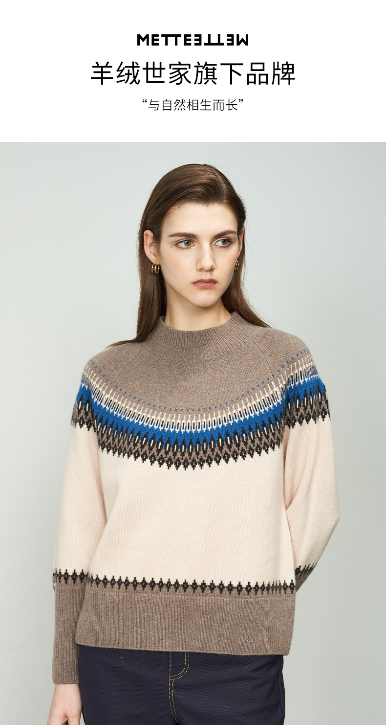 【半高领条纹羊绒衫】羊绒世家22年秋冬新品女士100%山羊绒衫时尚条纹内搭保暖毛衣