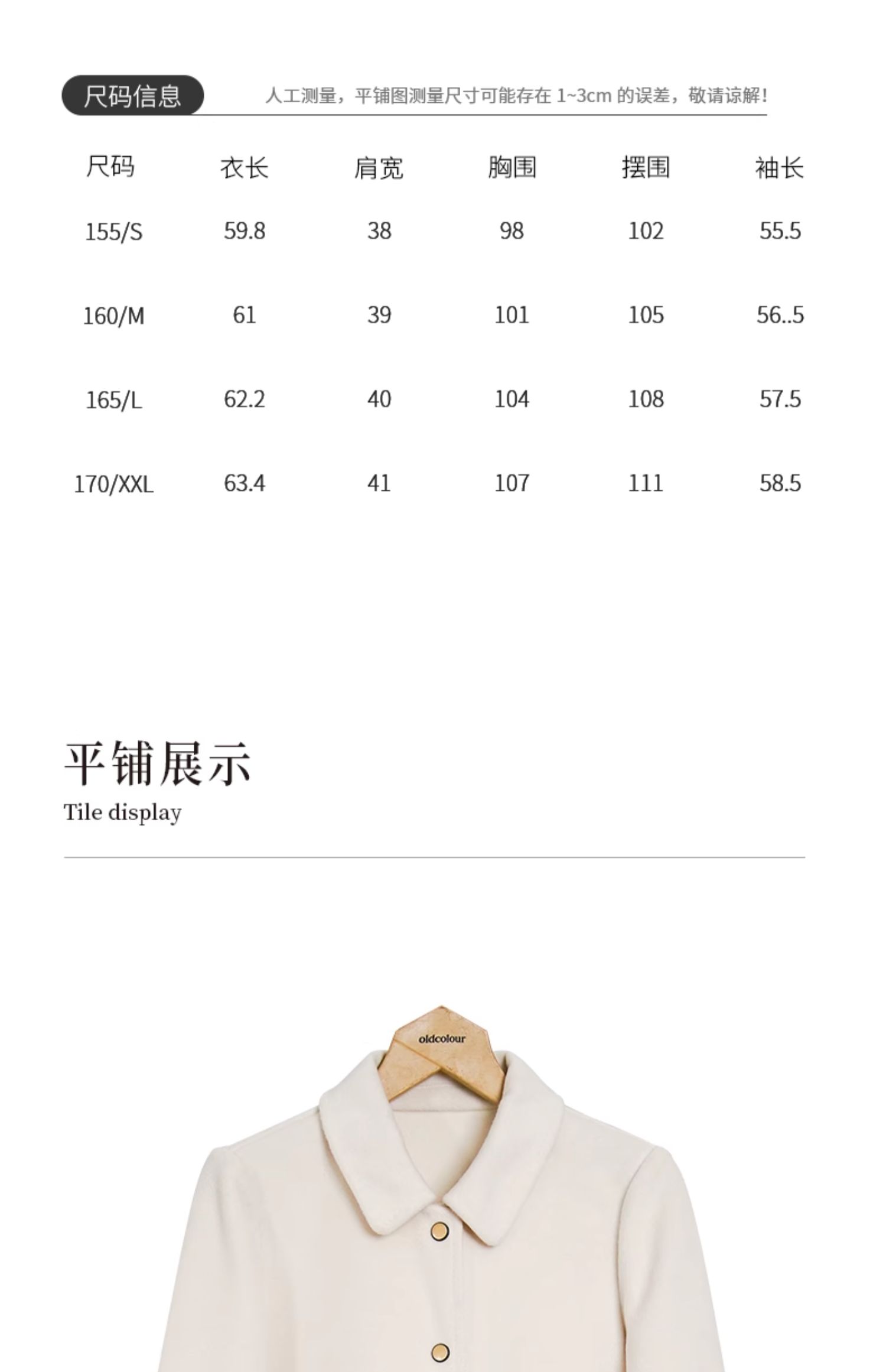 oldcolour冬季新款休闲简约百搭气质宽松显瘦短款外套女P480499A1