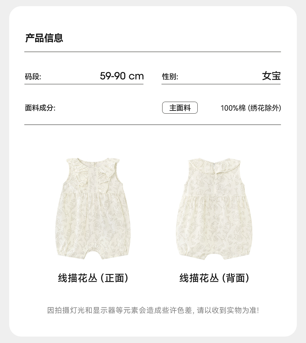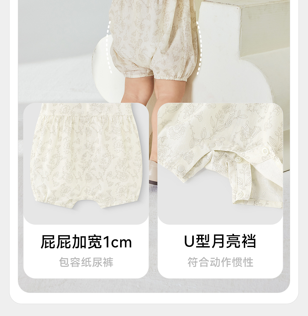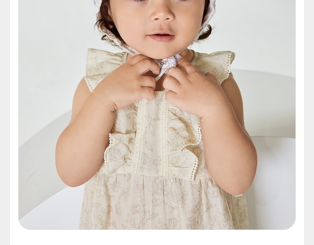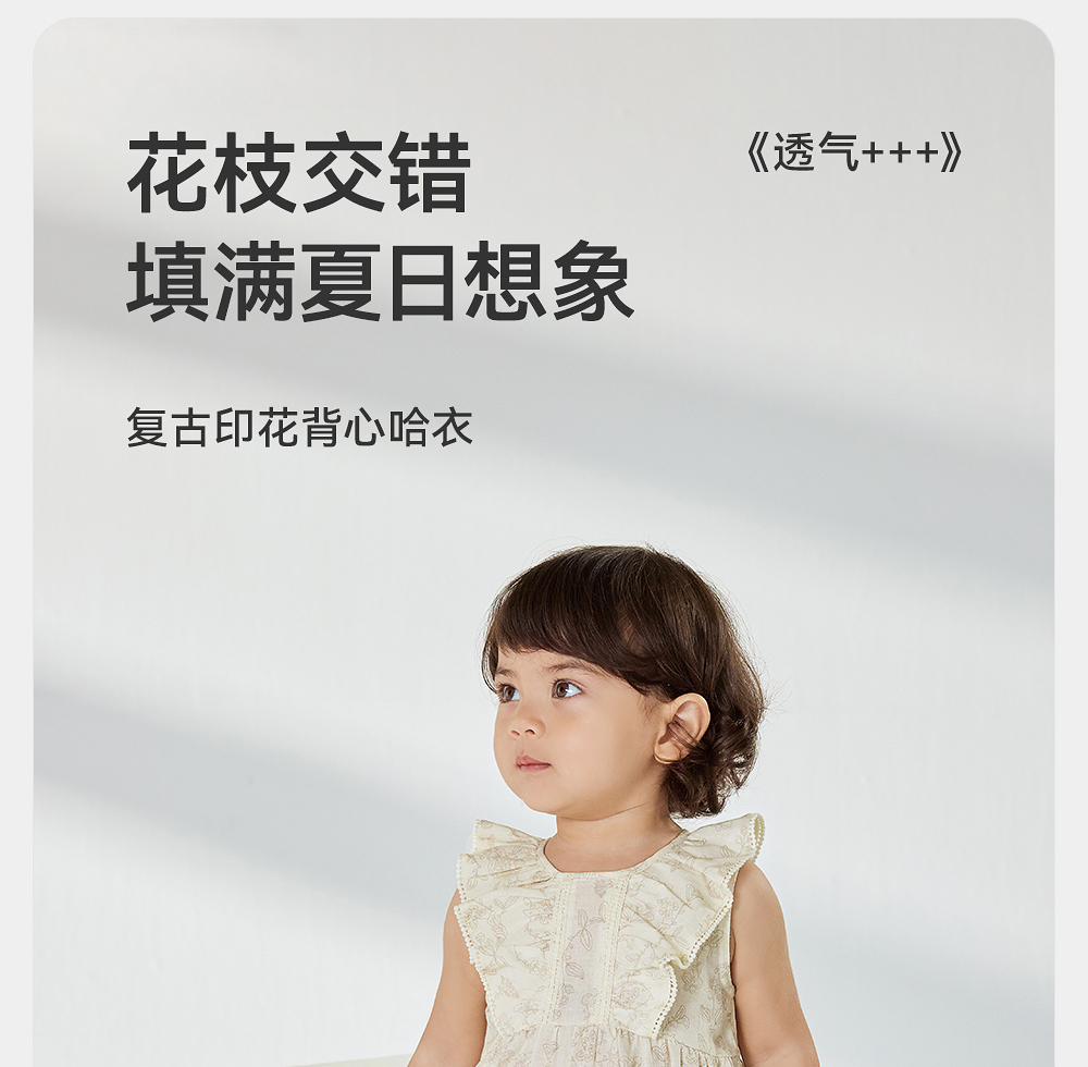 英氏婴儿衣服夏季透气女童连体衣纯棉小宝宝背心爬服YRHCJ2R061A